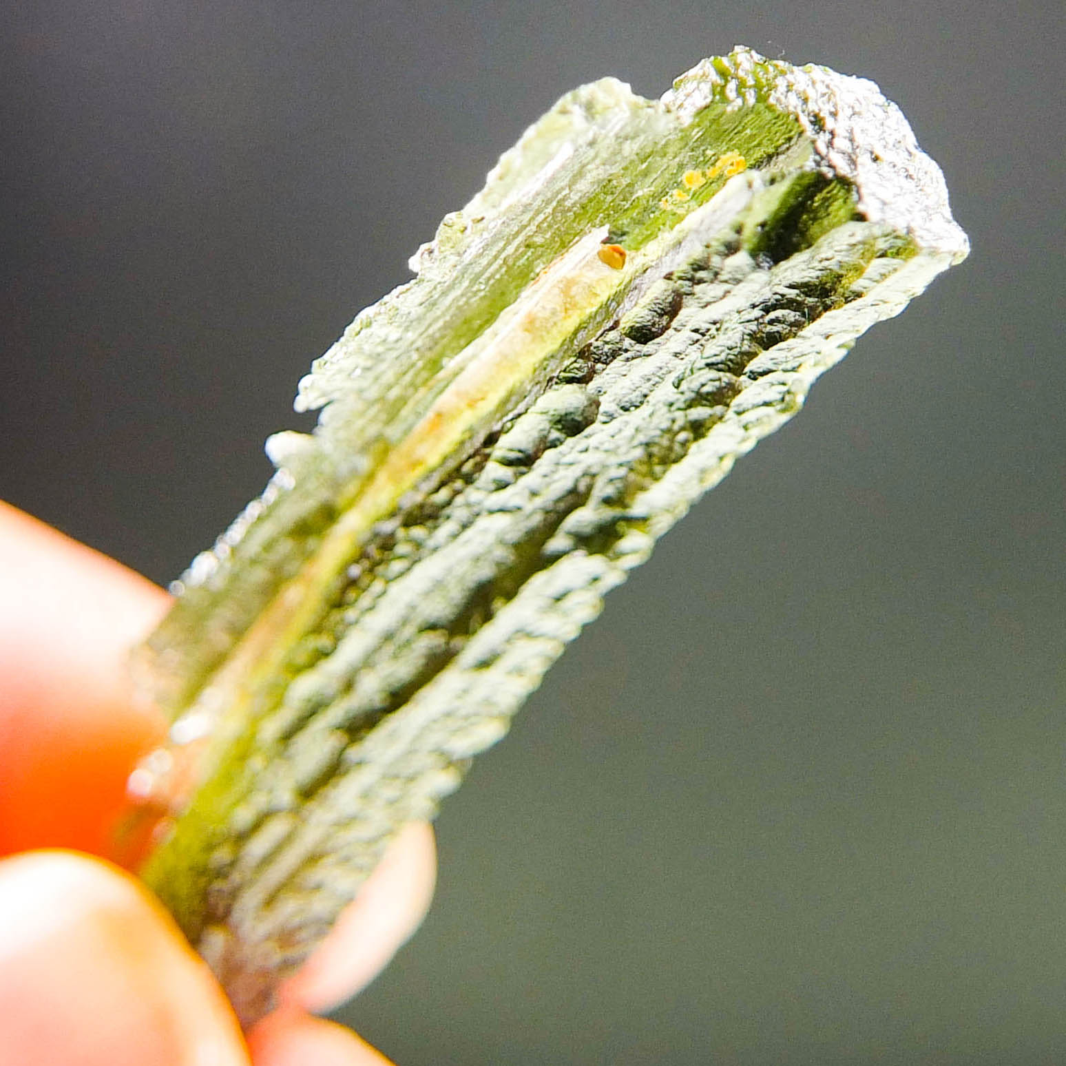 Certified Moldavite with A quality. From deposit South Bohemia. Shape: Natural piece.