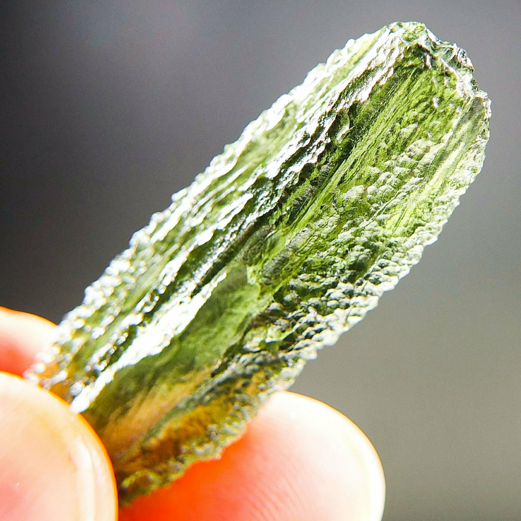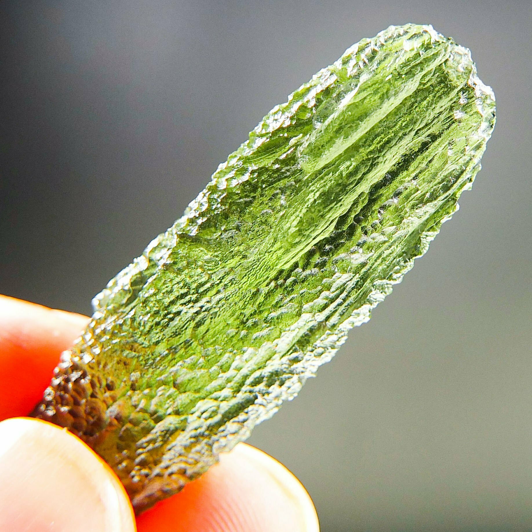 Certified Moldavite with A quality. From deposit Chlum. Shape: Natural piece.