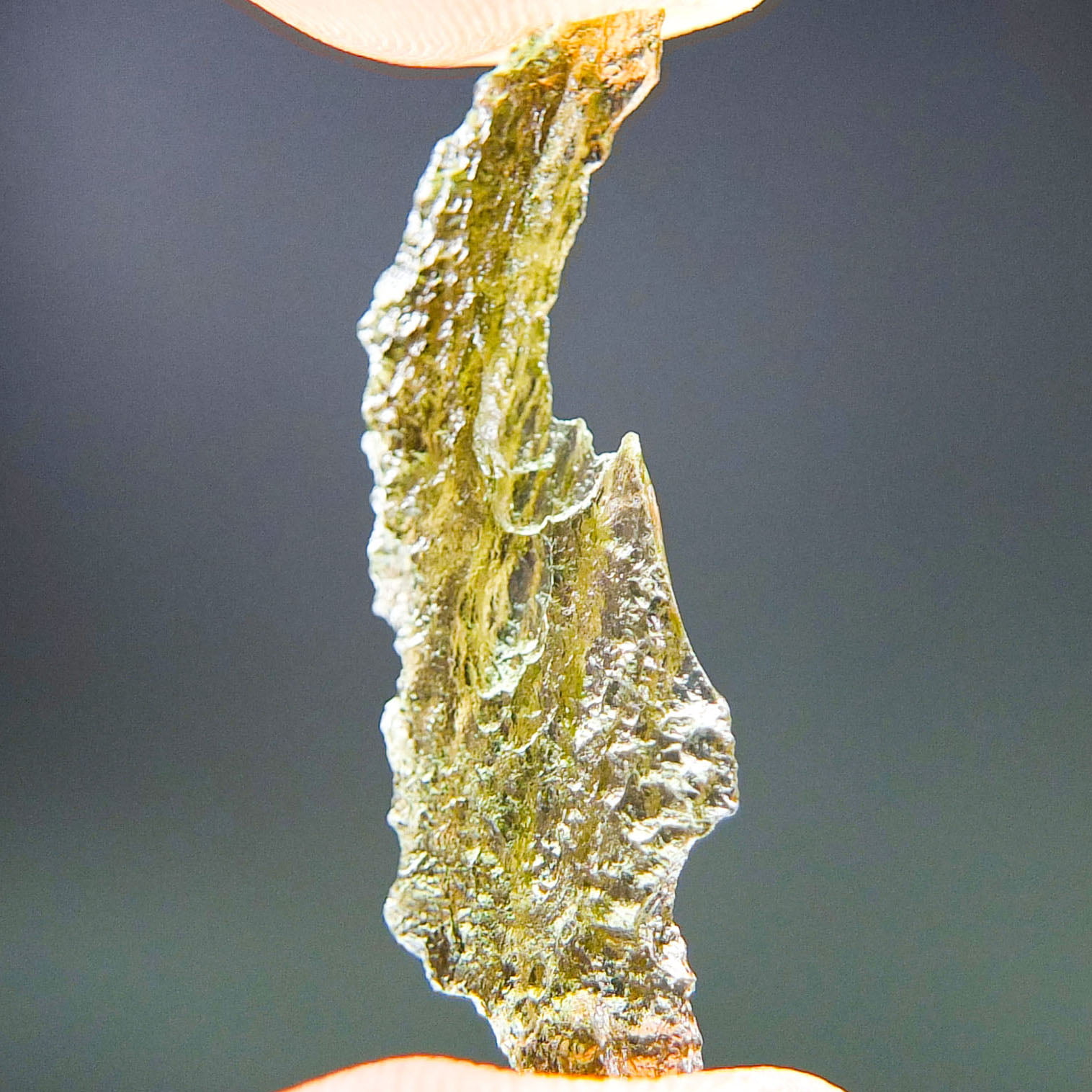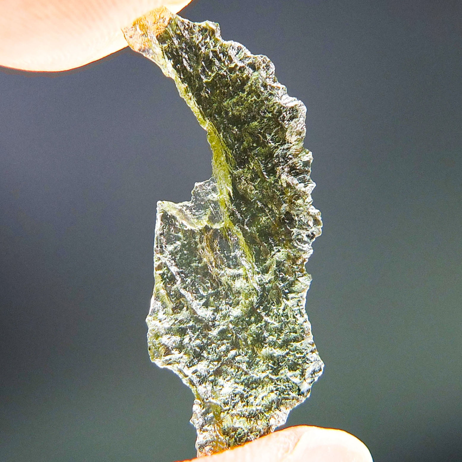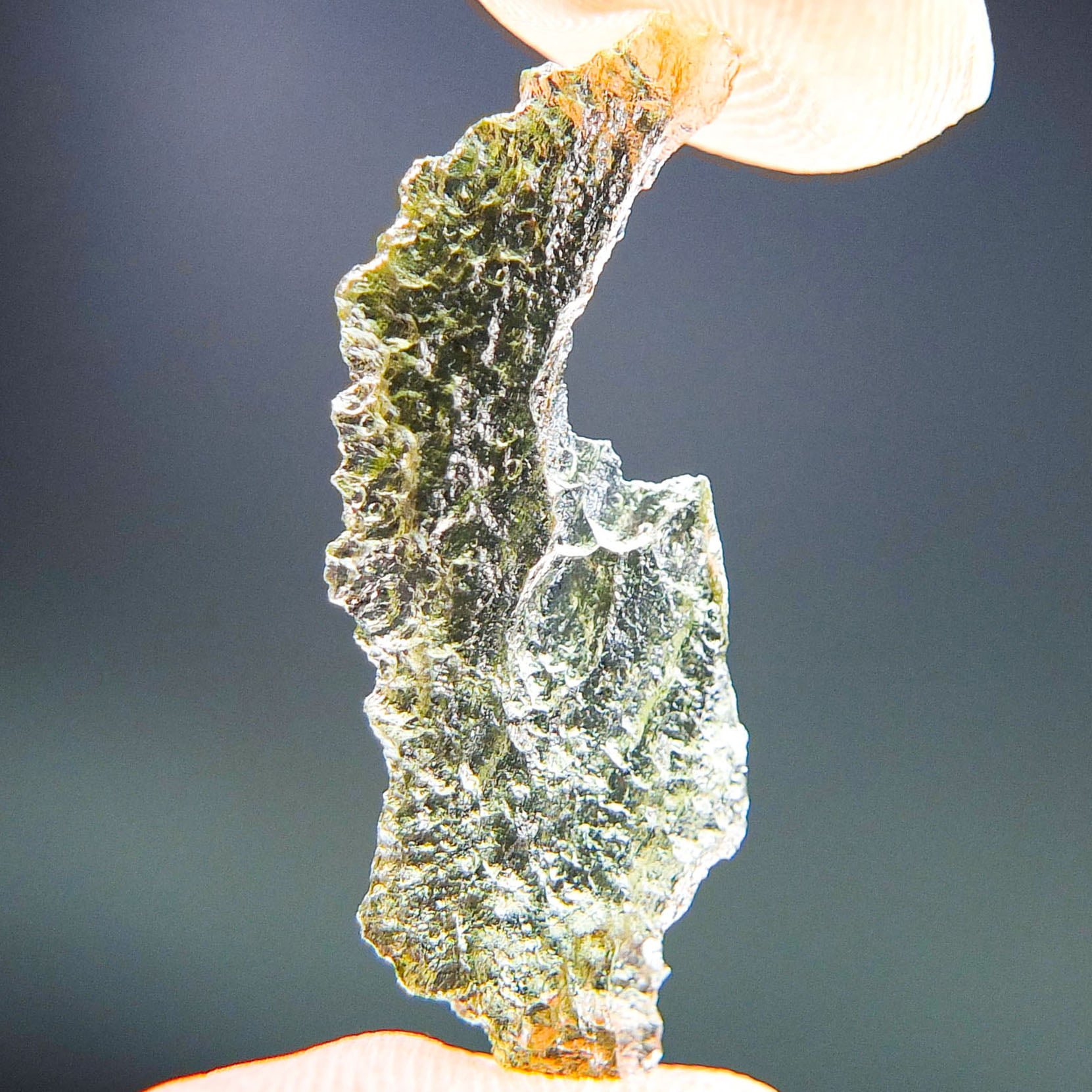 Certified Moldavite with A quality. From deposit Chlum. Shape: Natural piece.