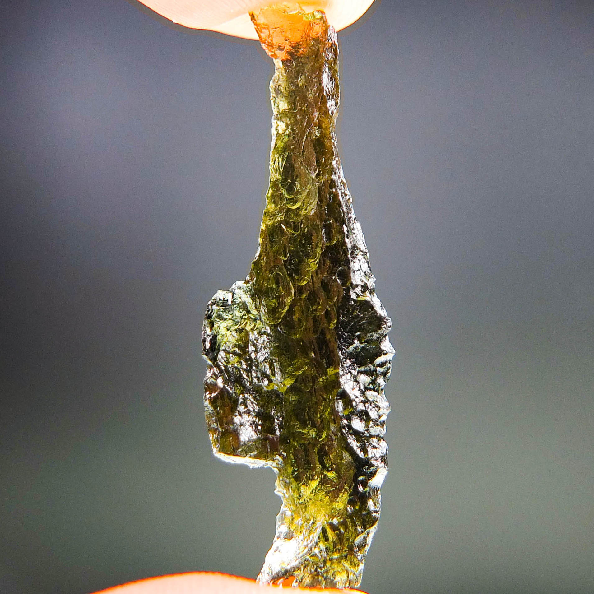 Certified Moldavite with A quality. From deposit Chlum. Shape: Natural piece.