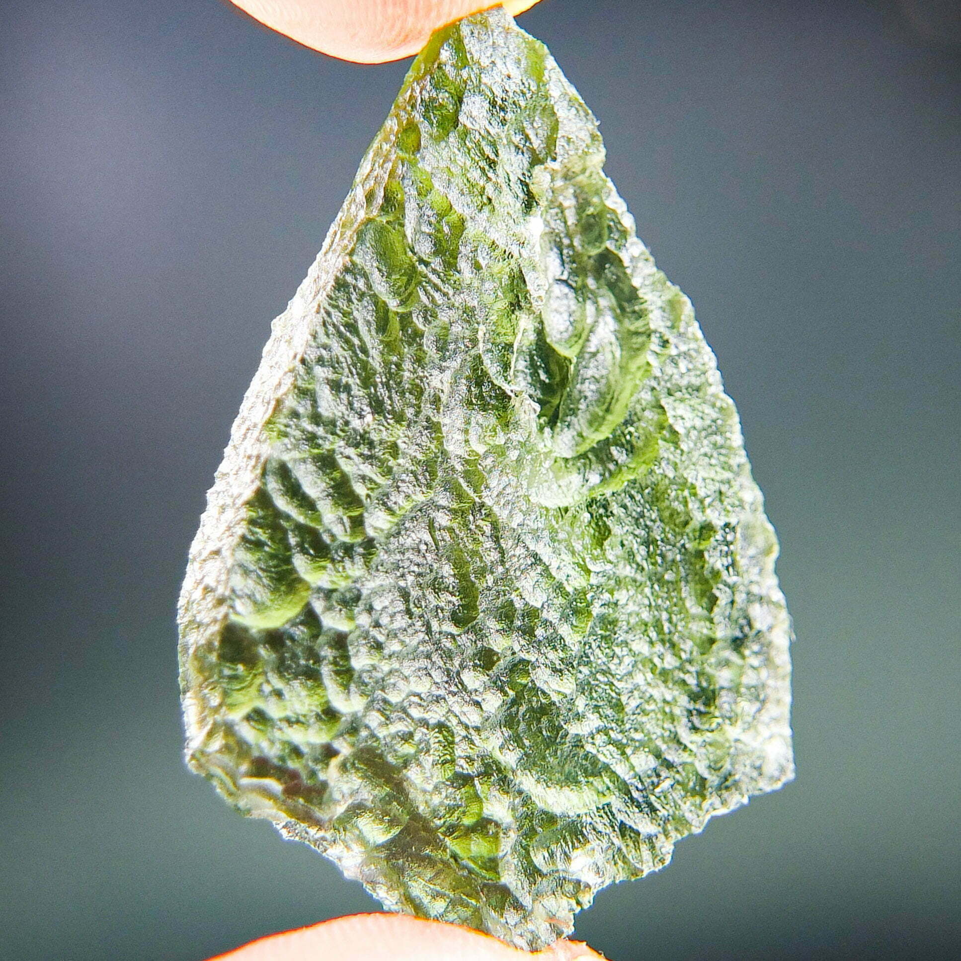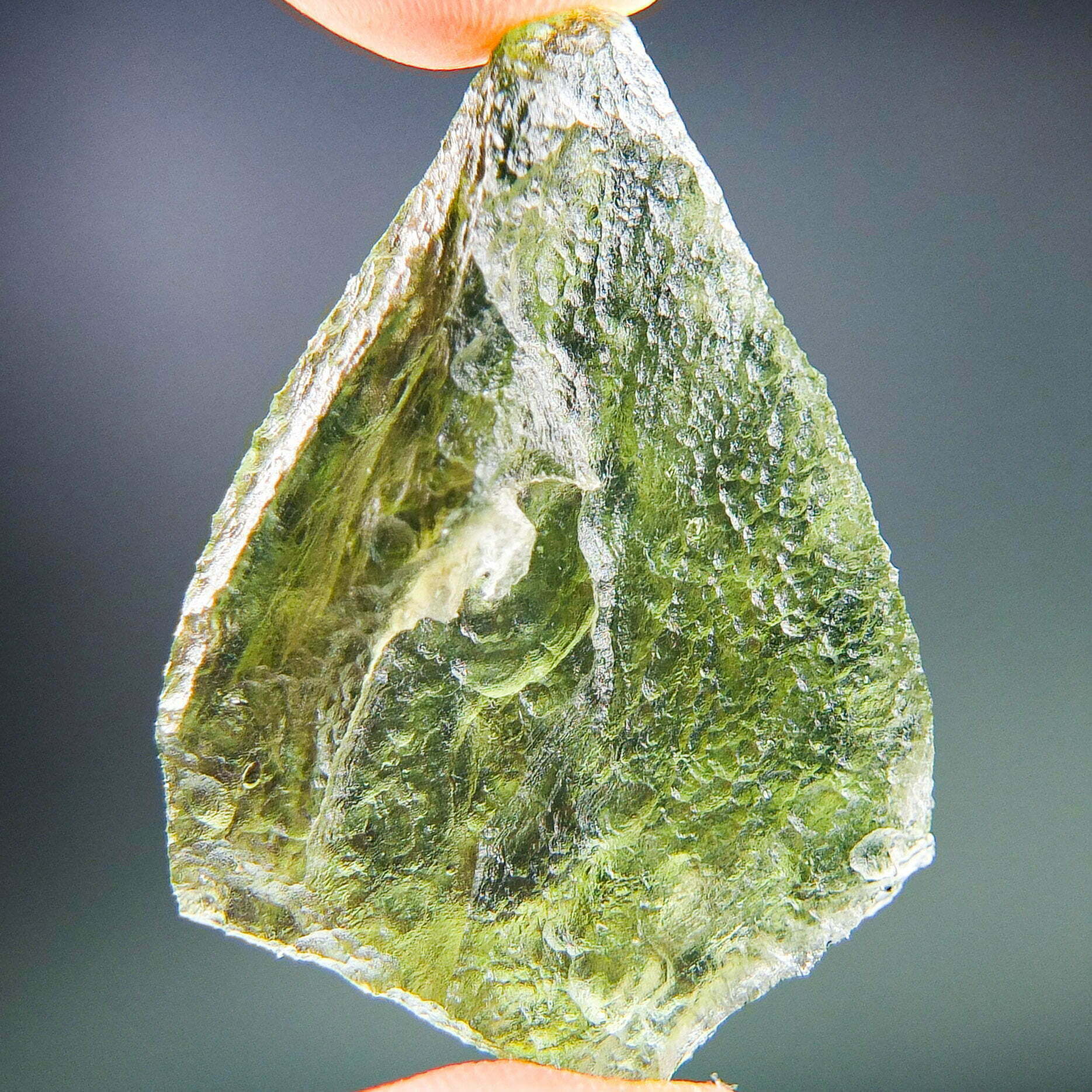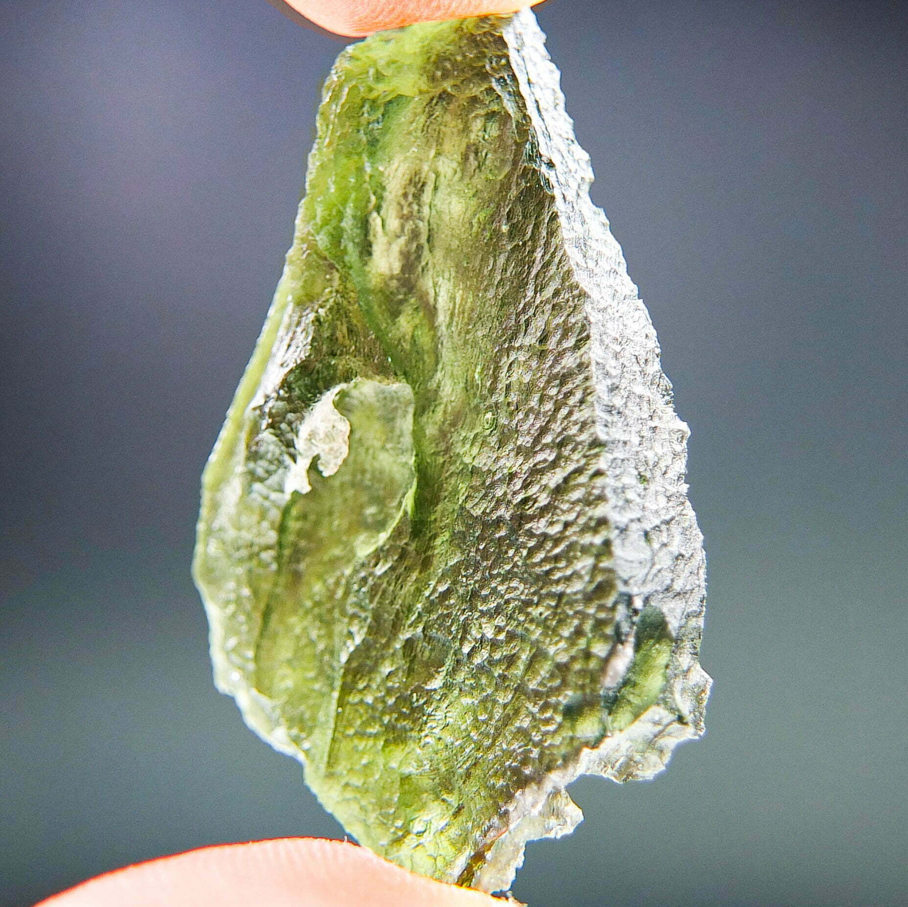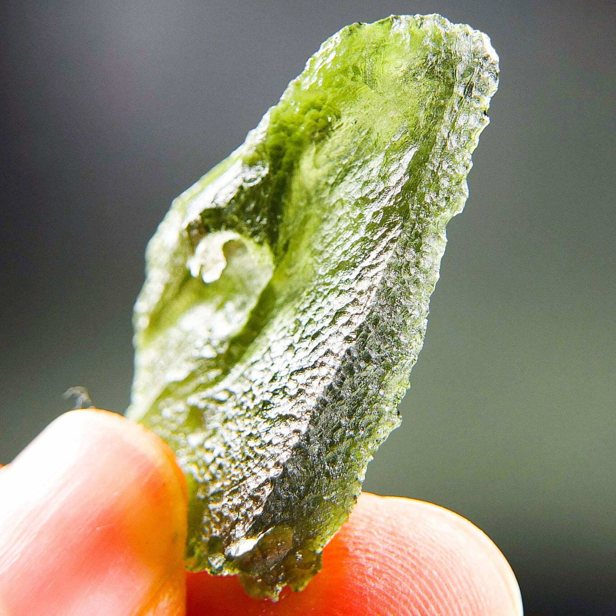 Certified Moldavite with A quality. From deposit Nova Hospoda. Shape: Natural piece.