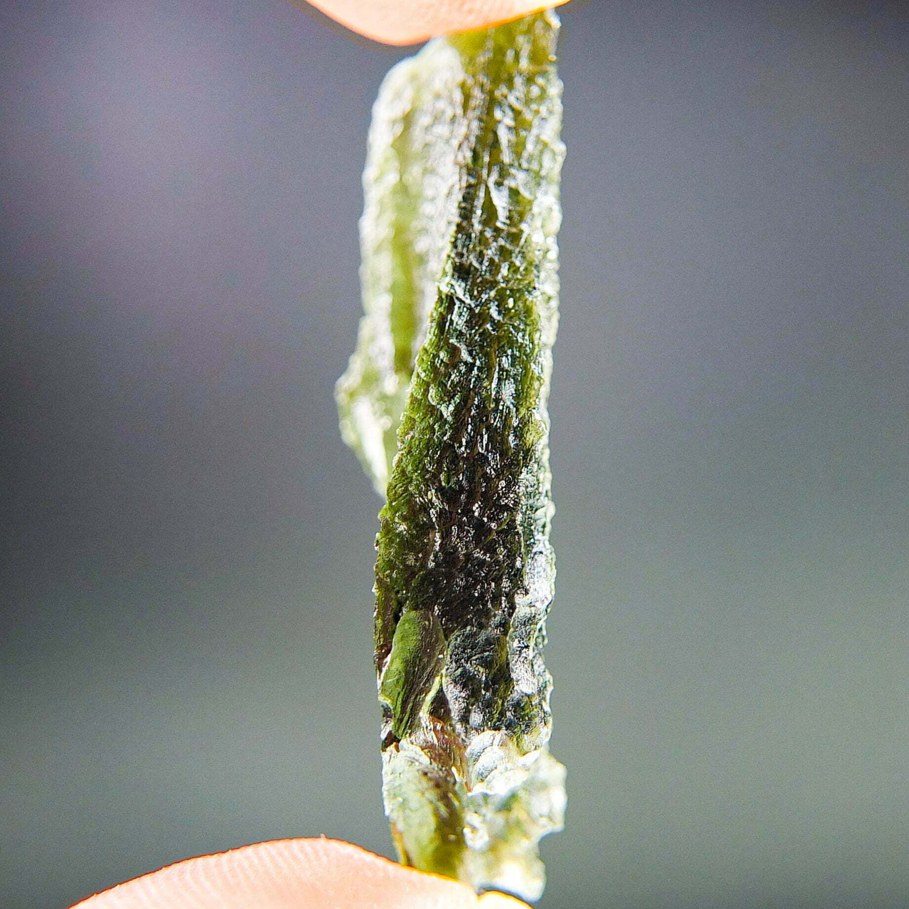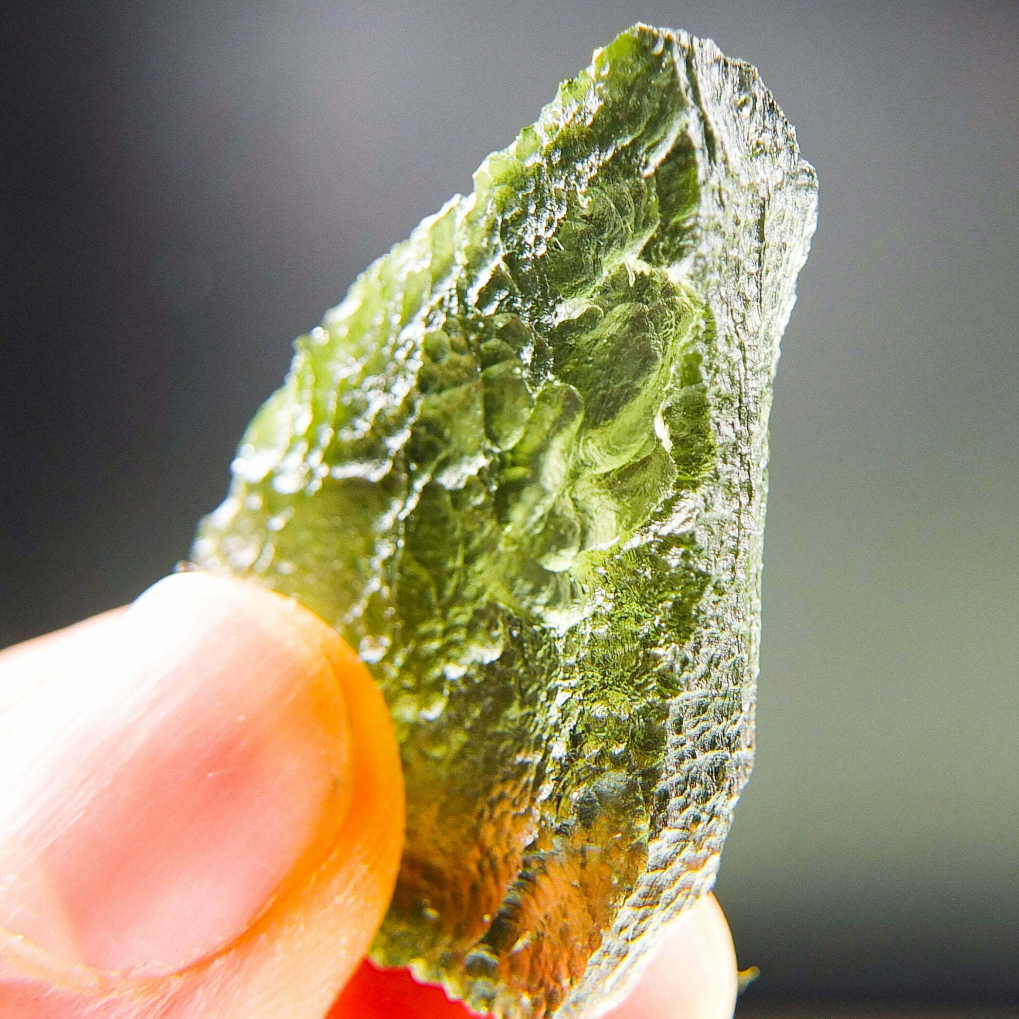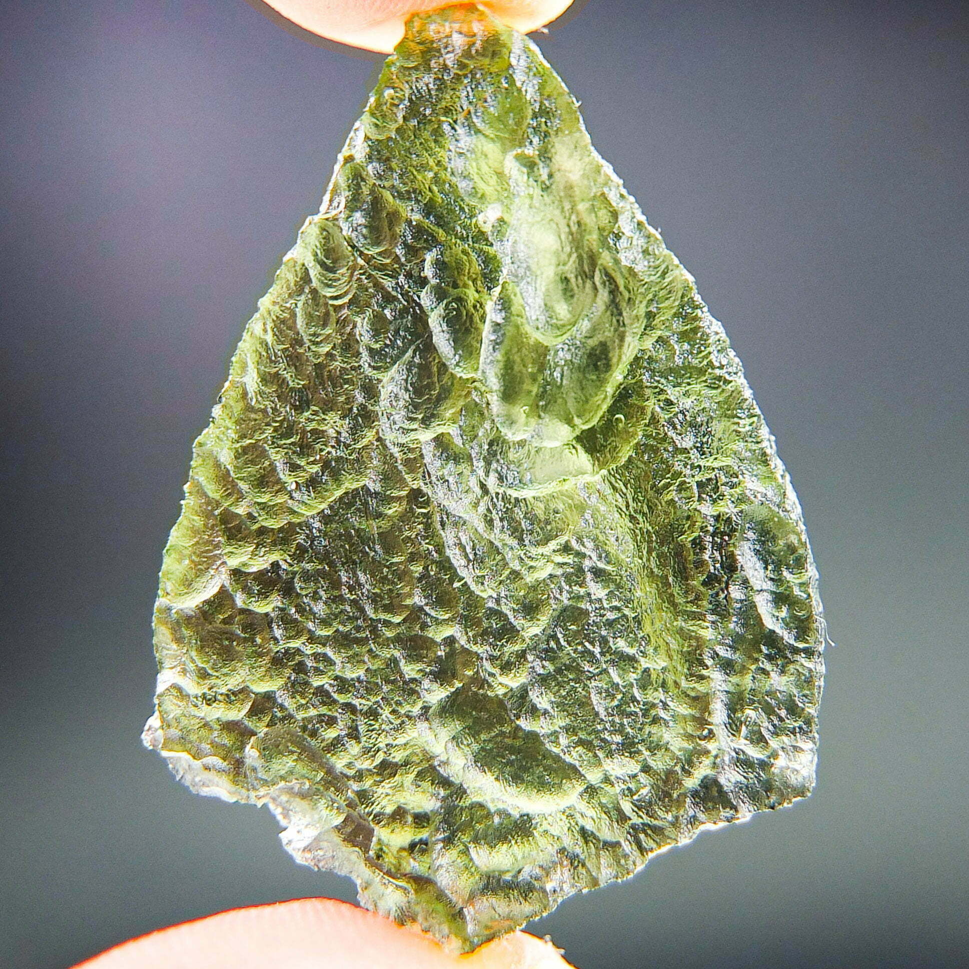 Certified Moldavite with A quality. From deposit Nova Hospoda. Shape: Natural piece.