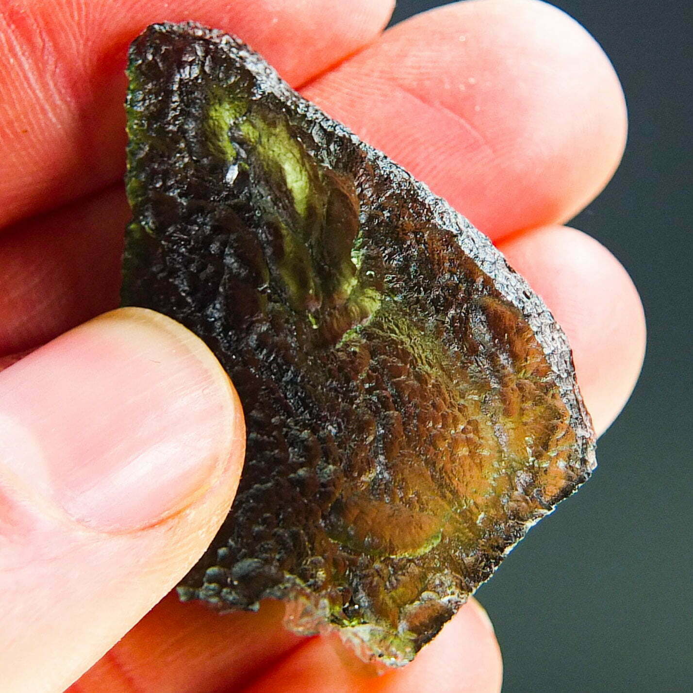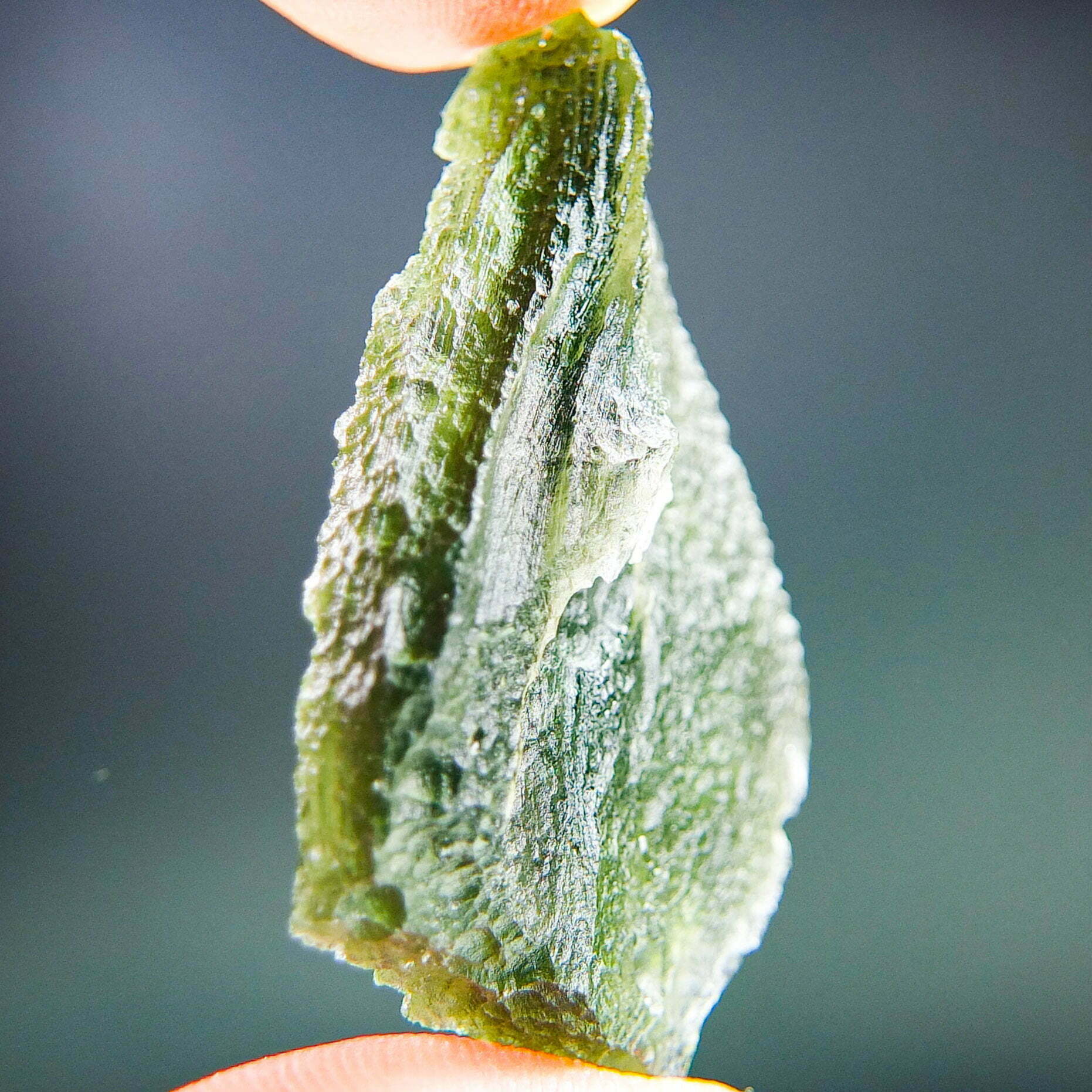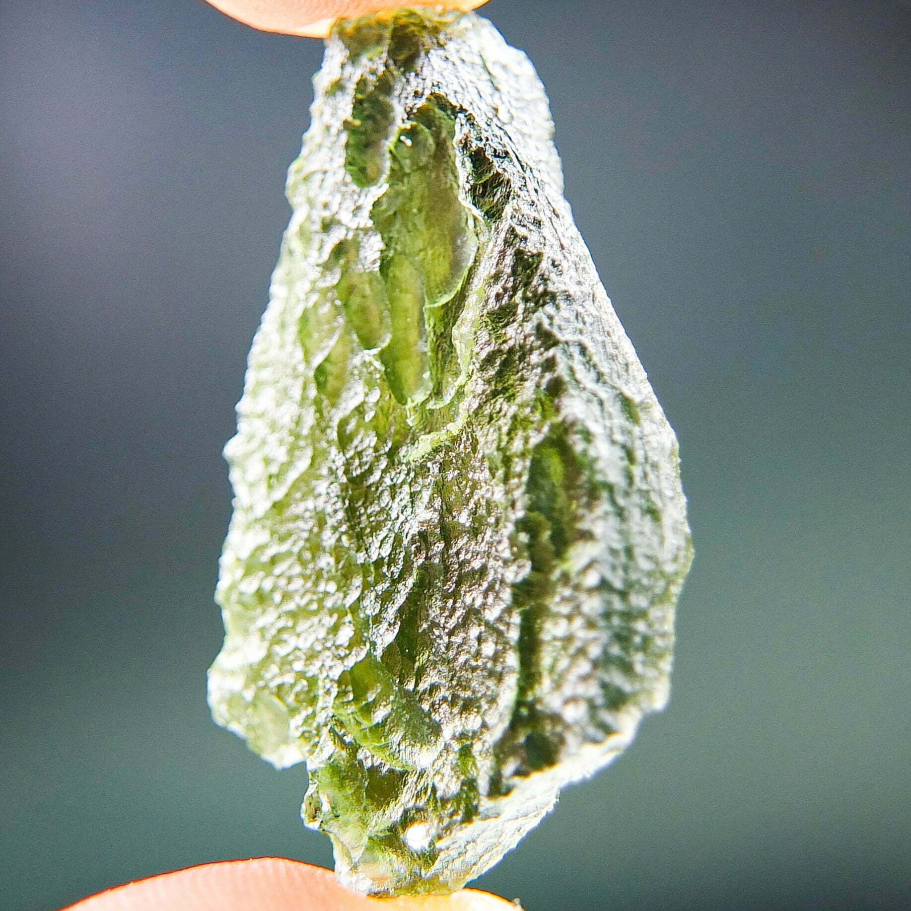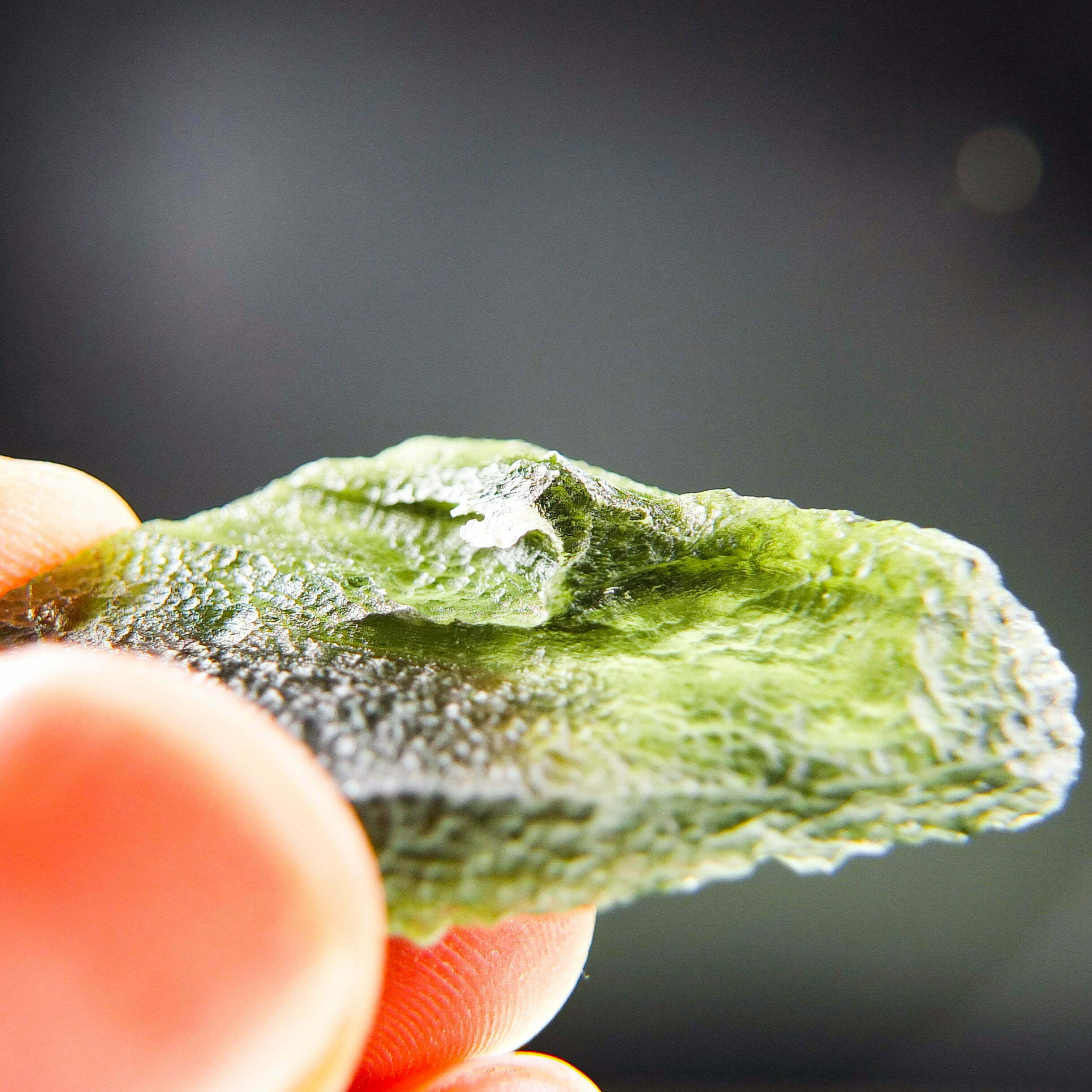 Certified Moldavite with A quality. From deposit Nova Hospoda. Shape: Natural piece.
