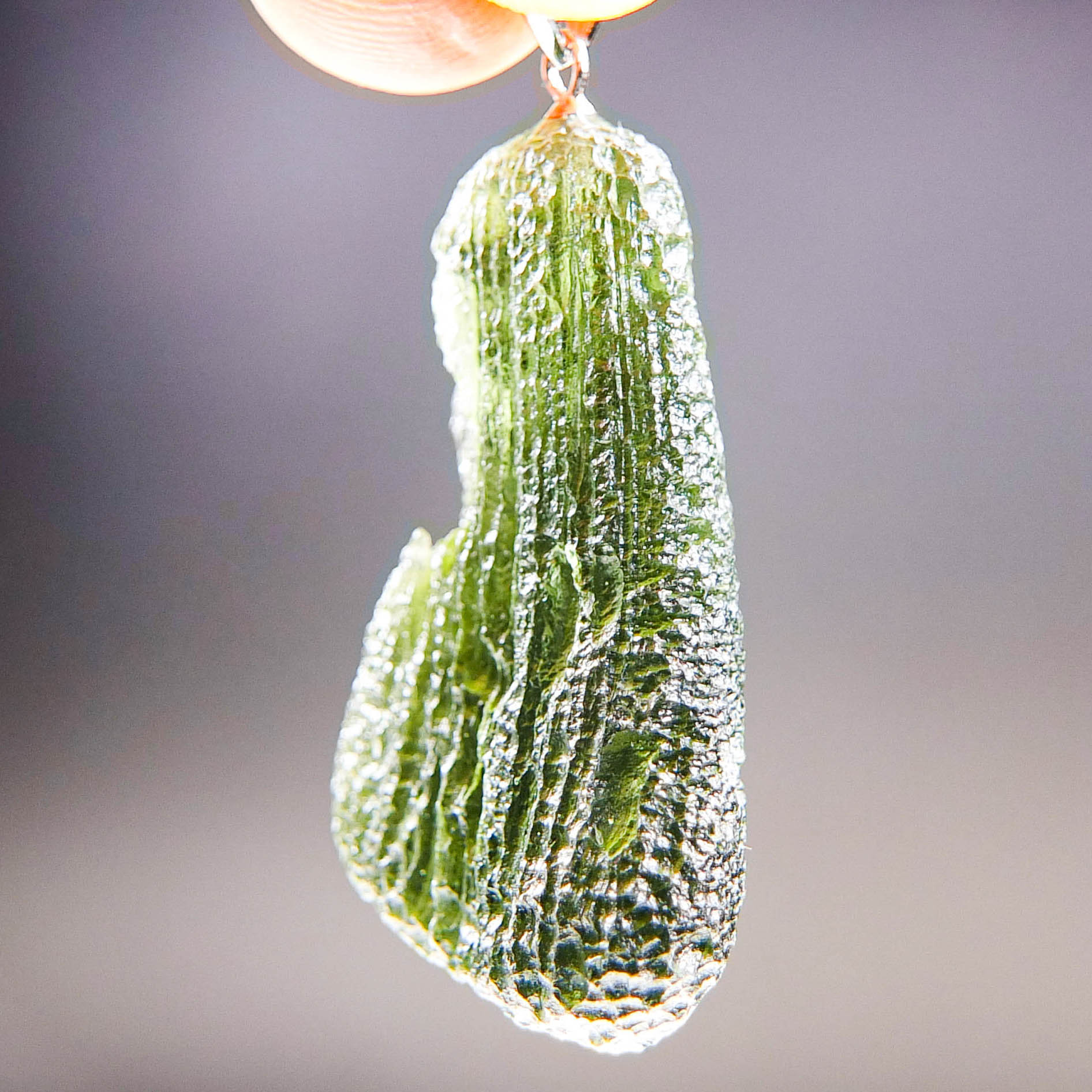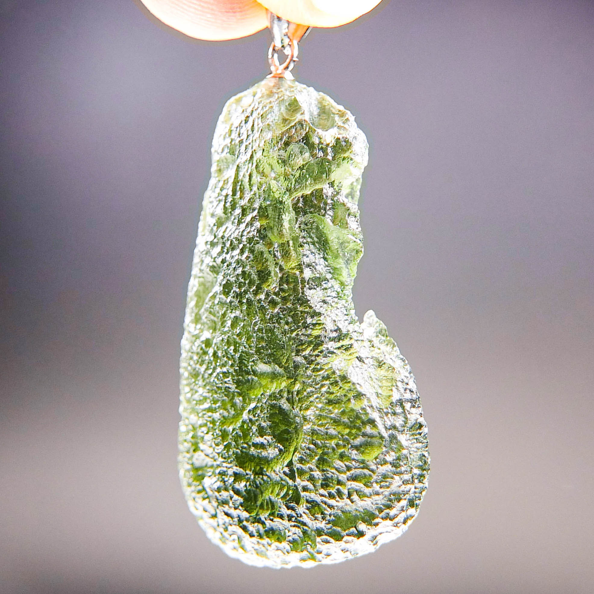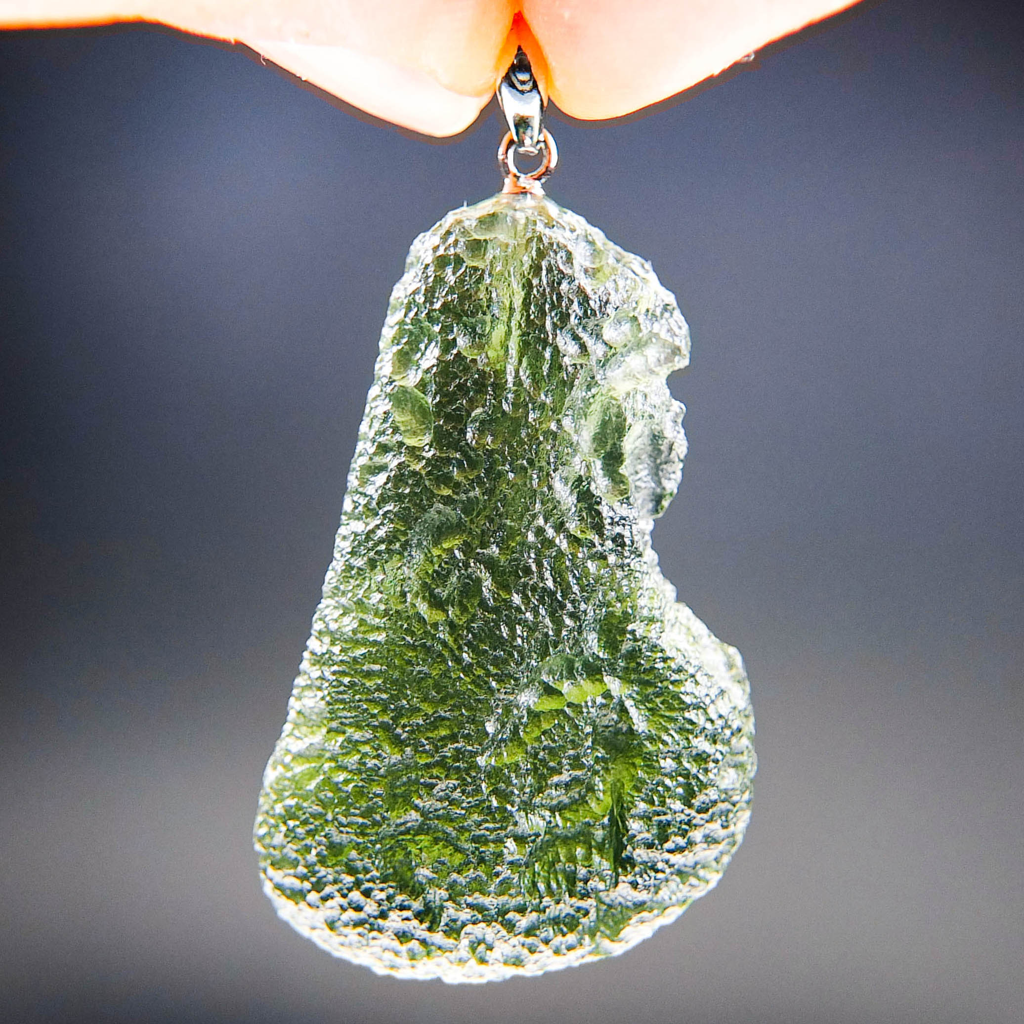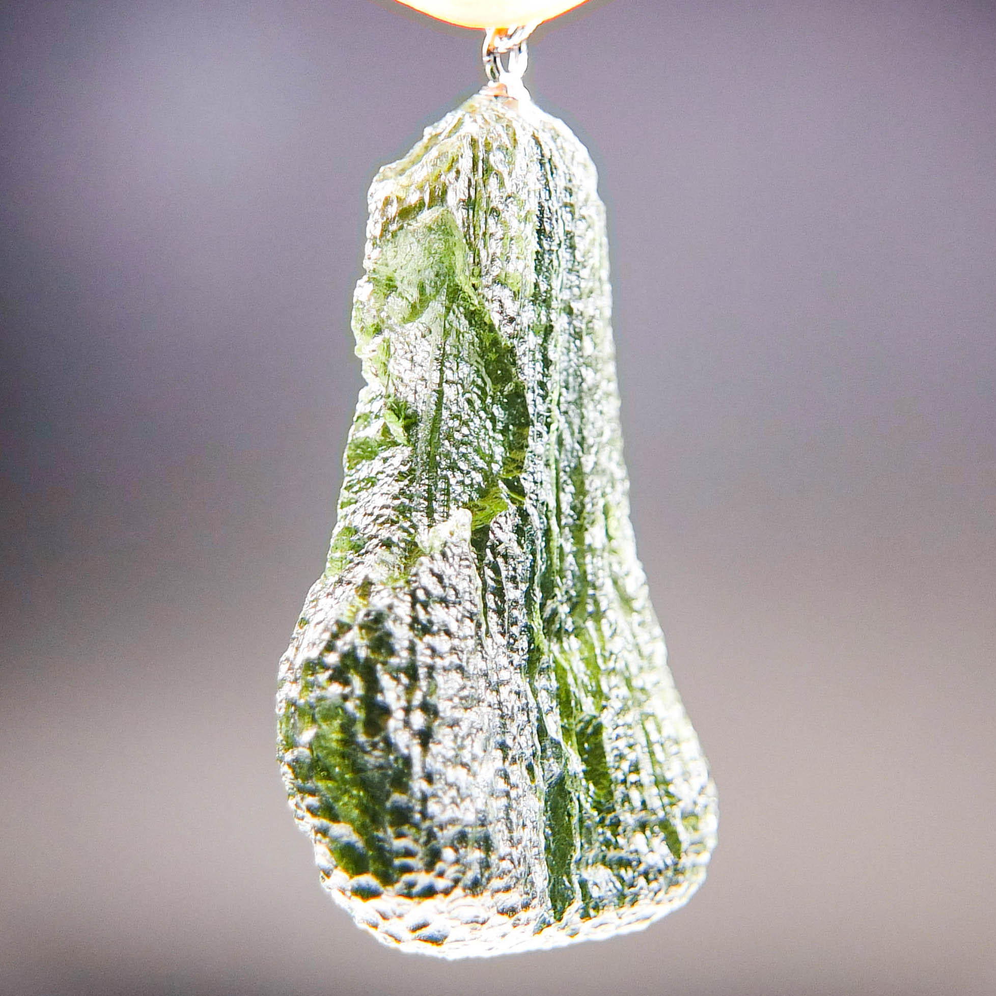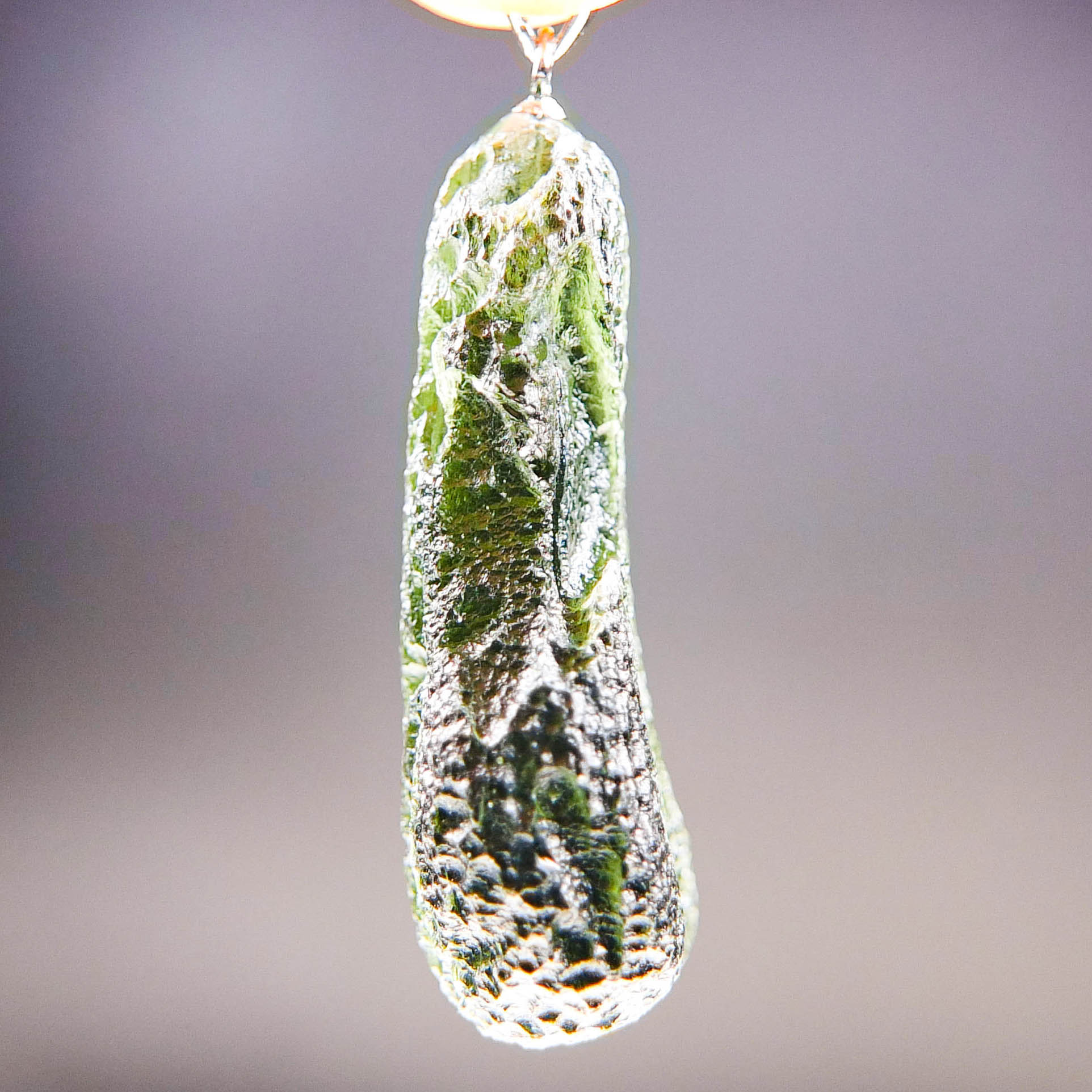 Certified Big Moldavite with A quality. From deposit Chlum. Shape: Drop – natural middle fragment.