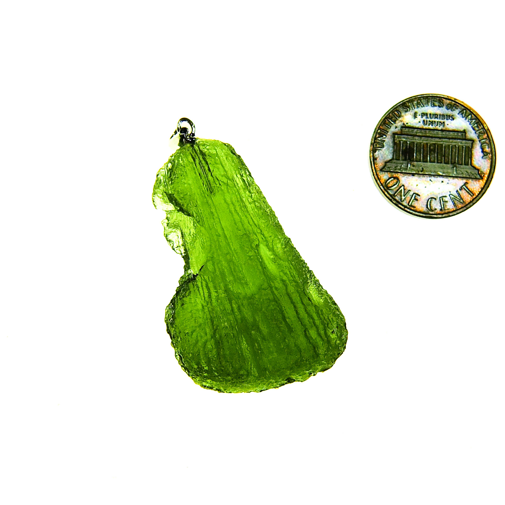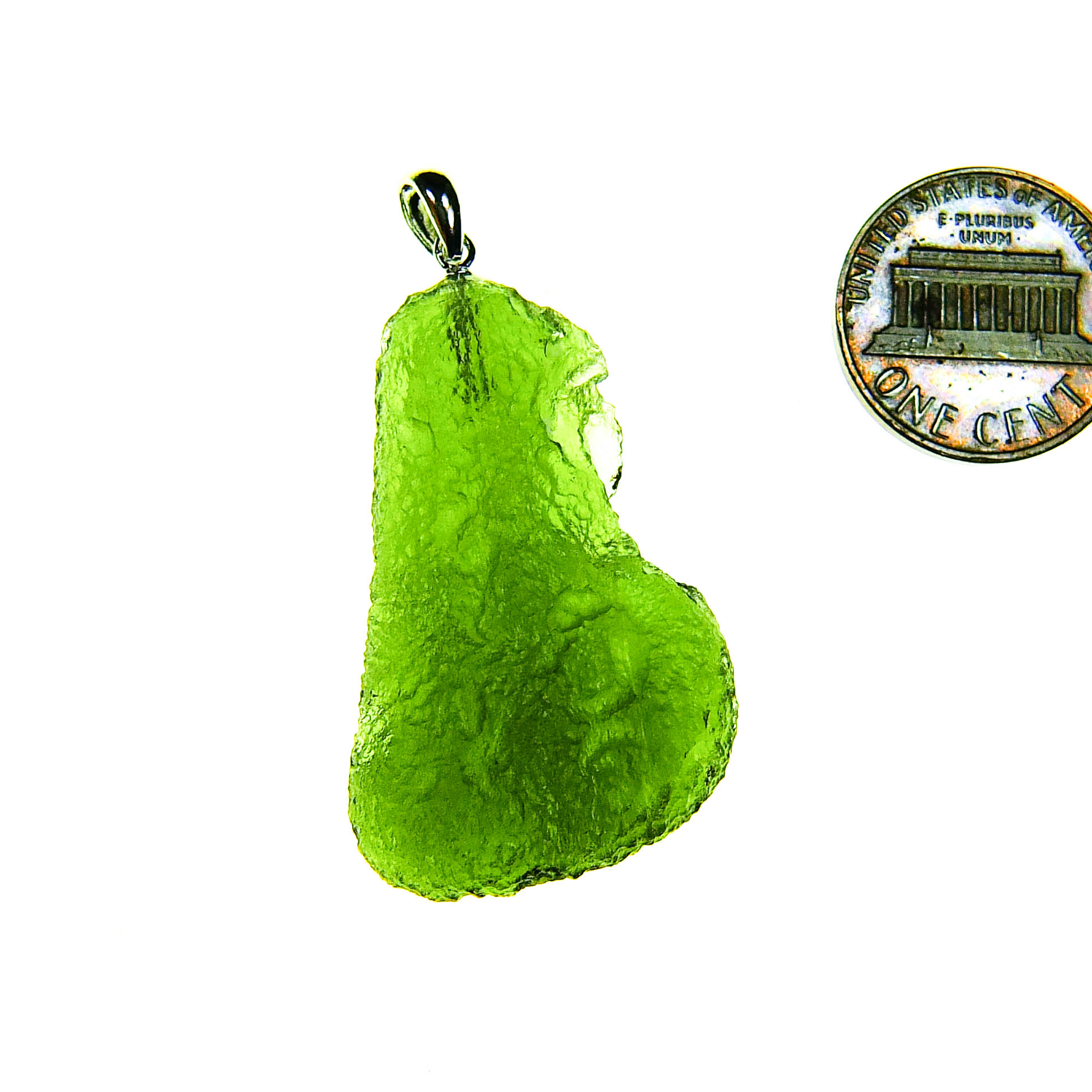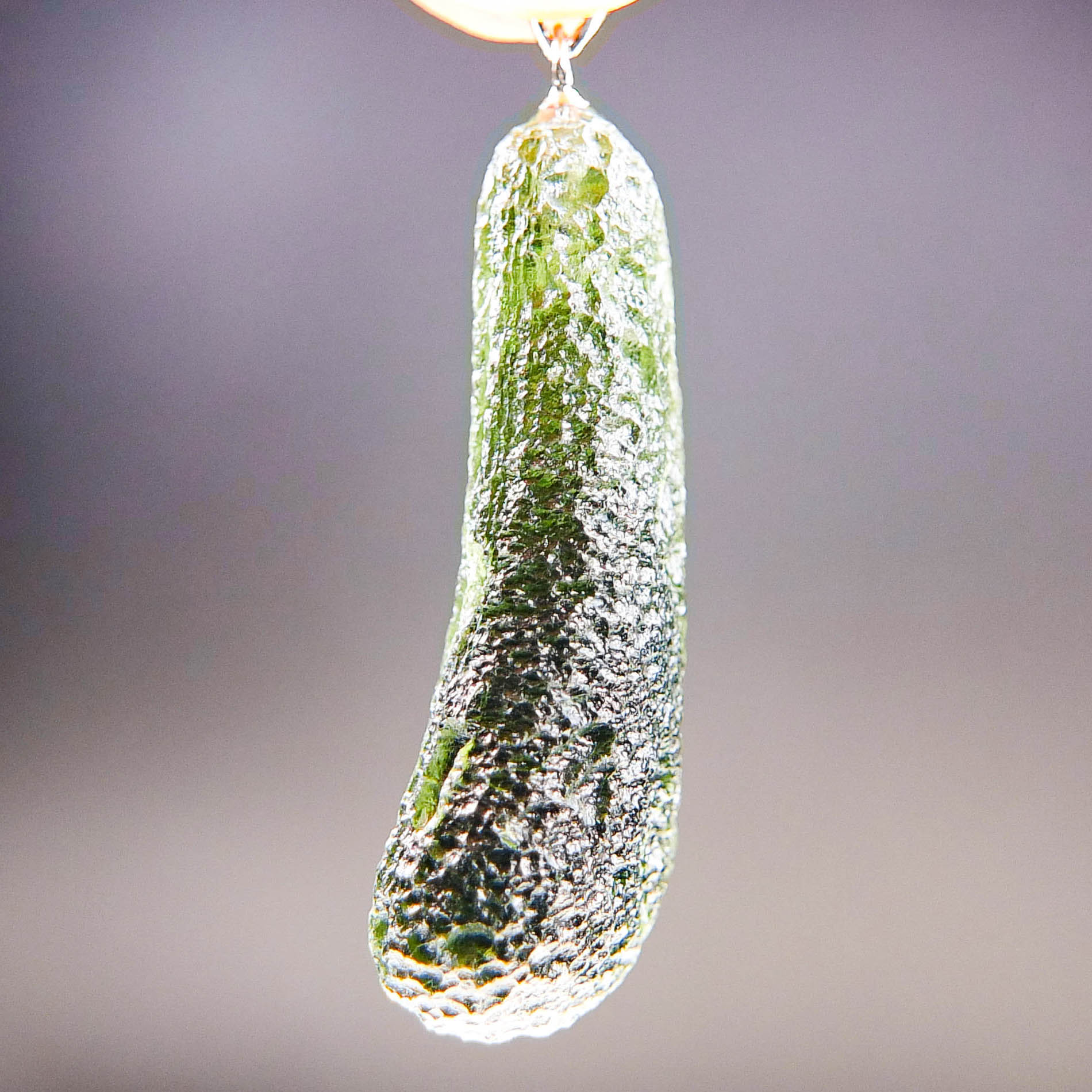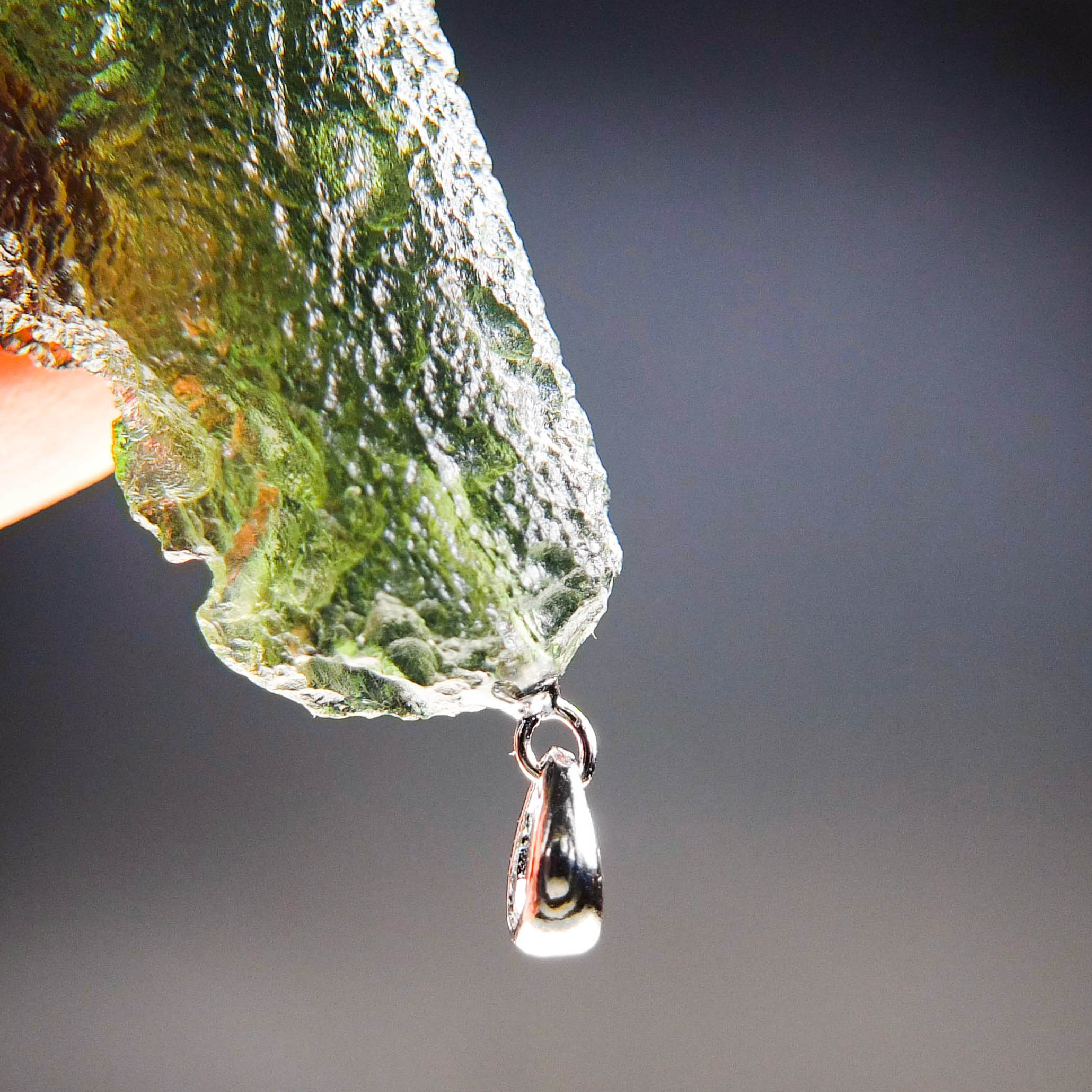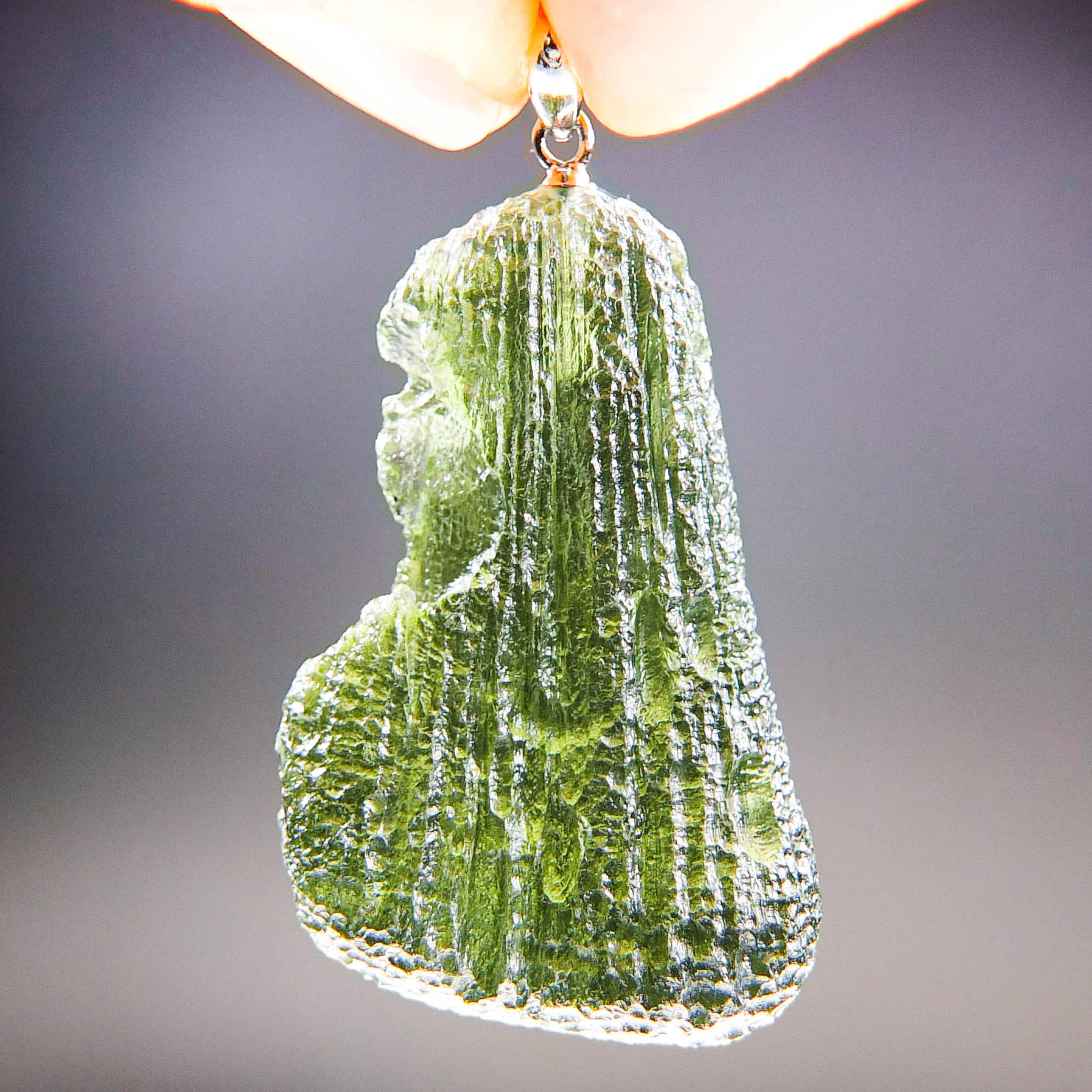 Certified Big Moldavite with A quality. From deposit Chlum. Shape: Drop – natural middle fragment.