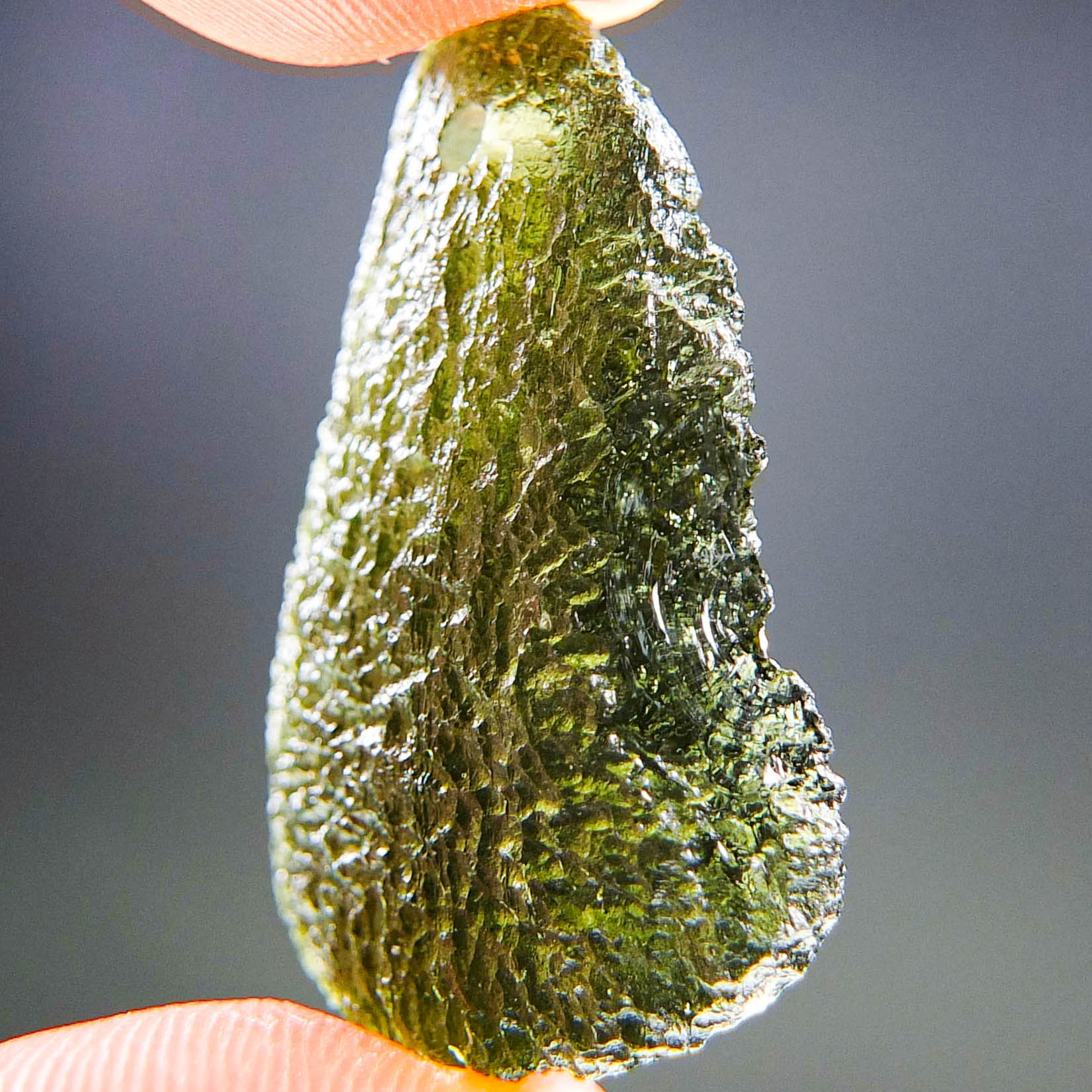 Certified Moldavite with A quality. From deposit Chlum. Shape: Natural piece.