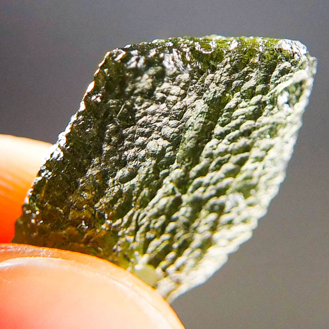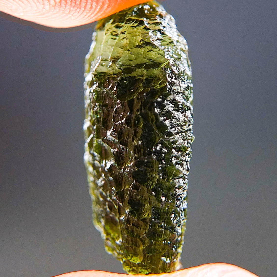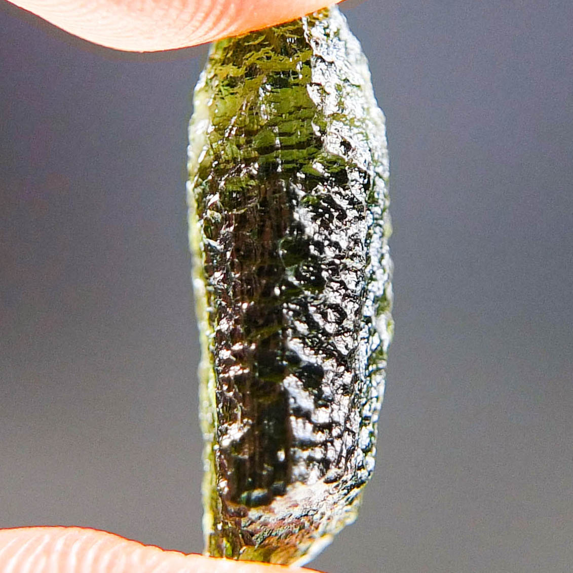 Certified Moldavite with A quality. From deposit Chlum. Shape: Drop – natural lower fragment (belly).