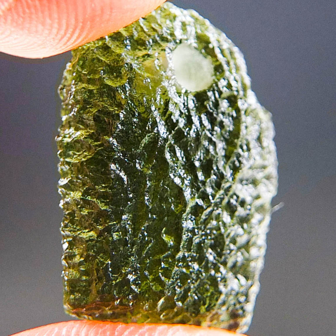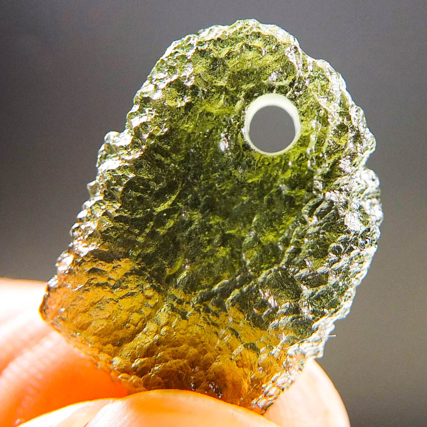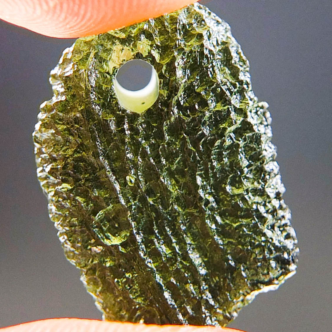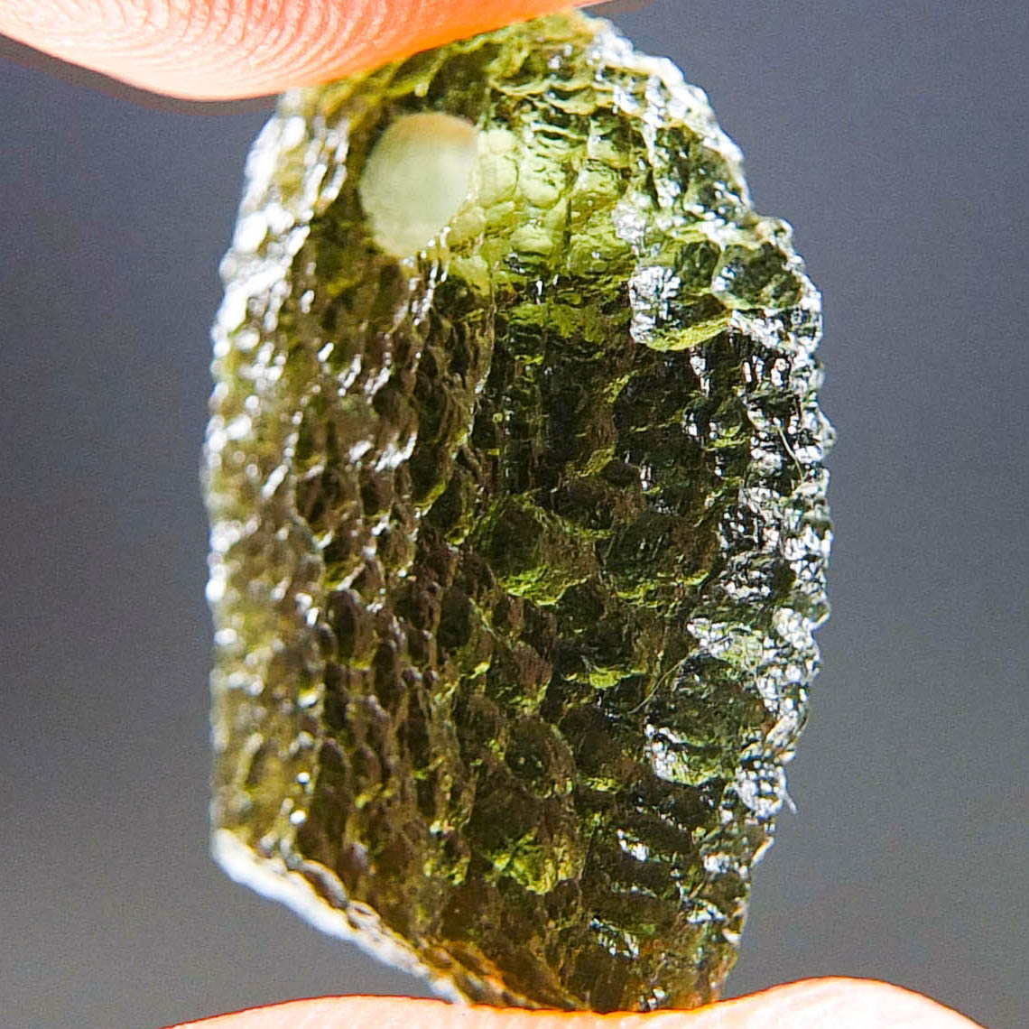 Certified Moldavite with A quality. From deposit Chlum. Shape: Drop – natural lower fragment (belly).
