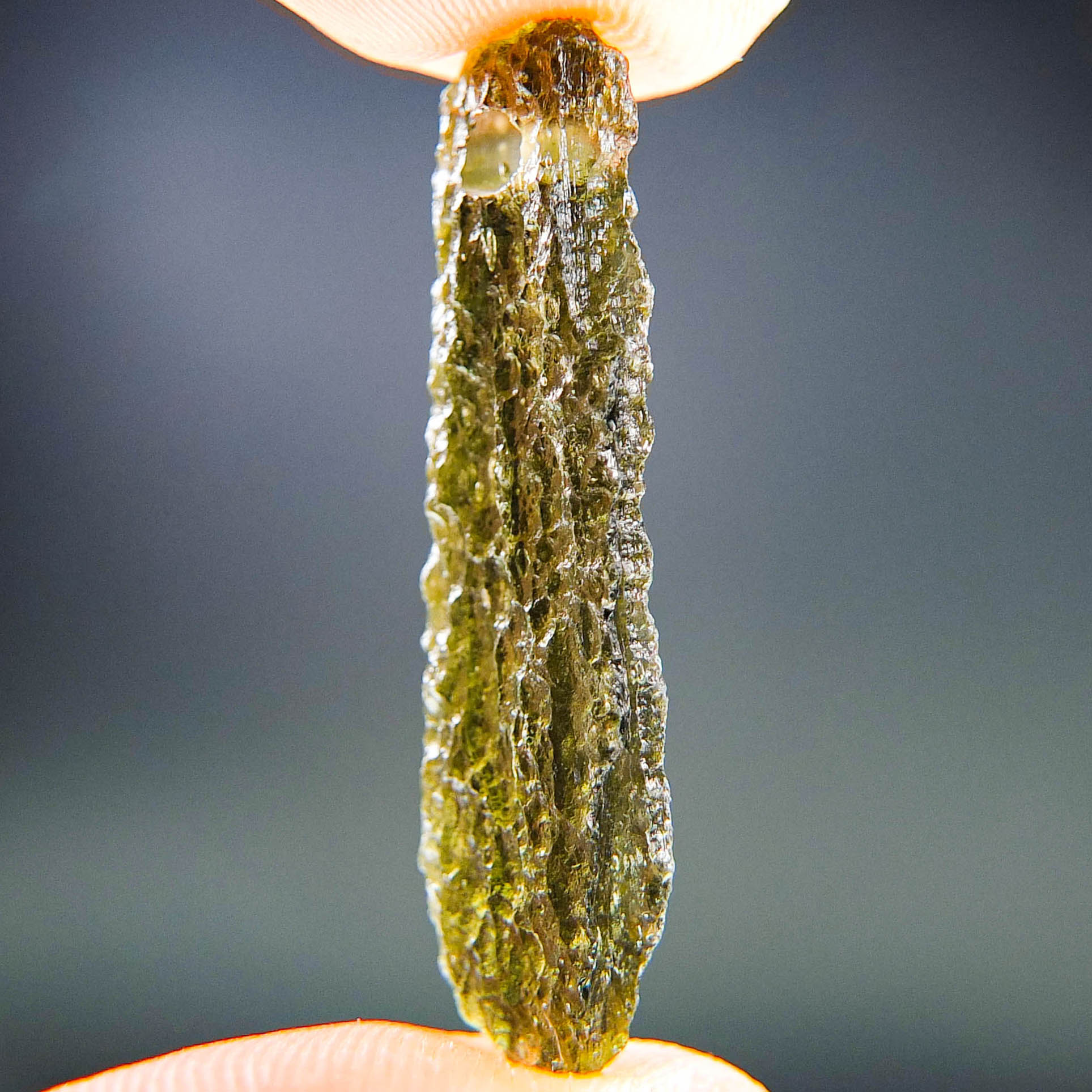 Certified Moldavite with A quality. From deposit Chlum. Shape: Natural piece.