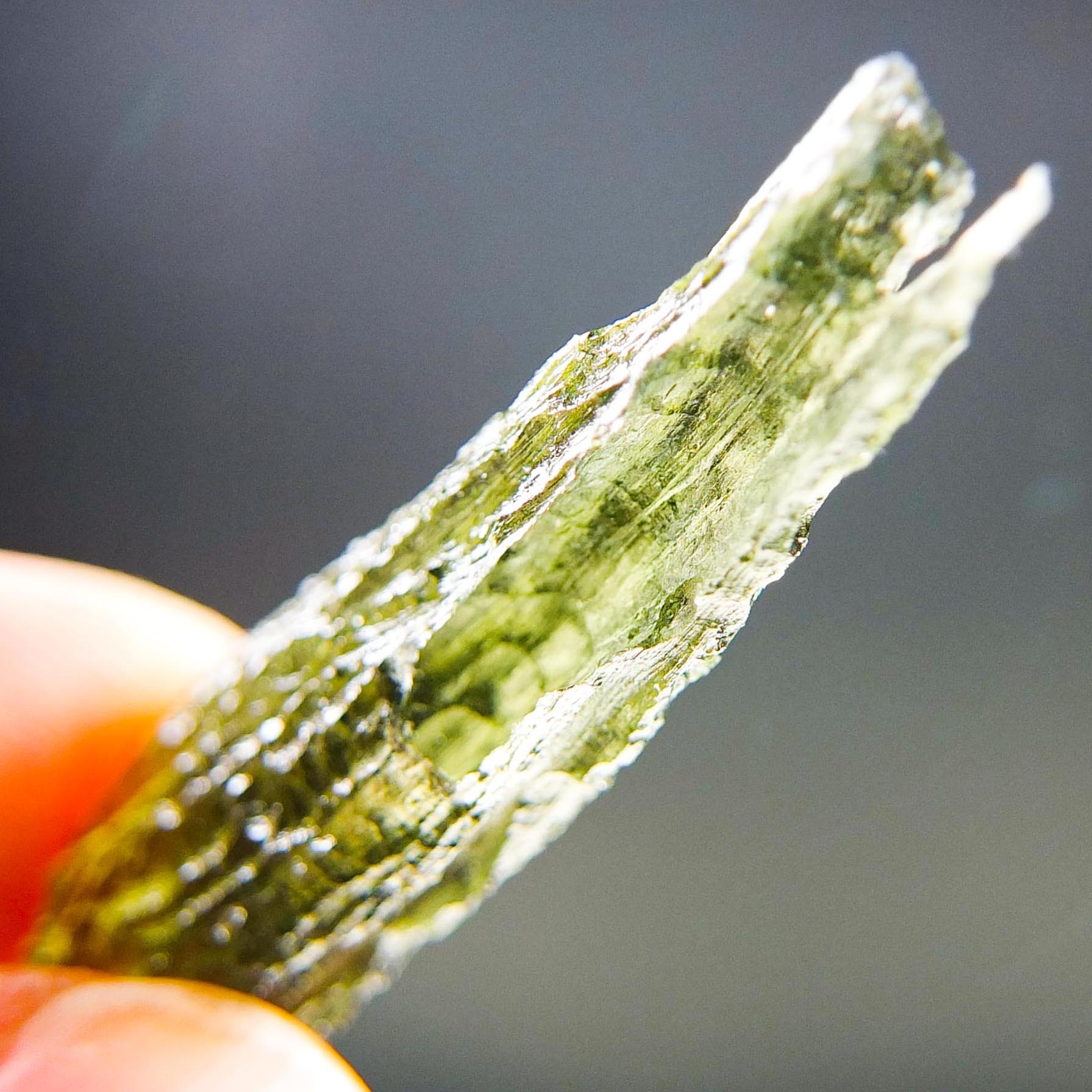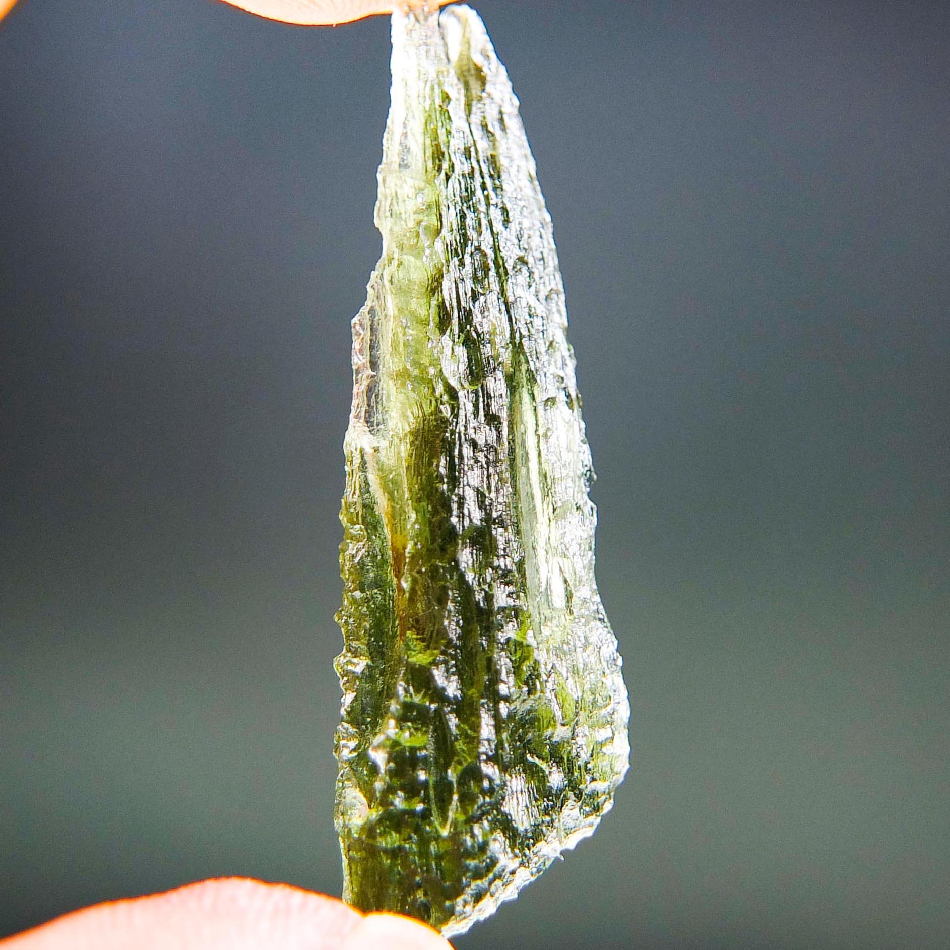 Certified Moldavite with A quality. From deposit Chlum. Shape: Drop – natural upper fragment.