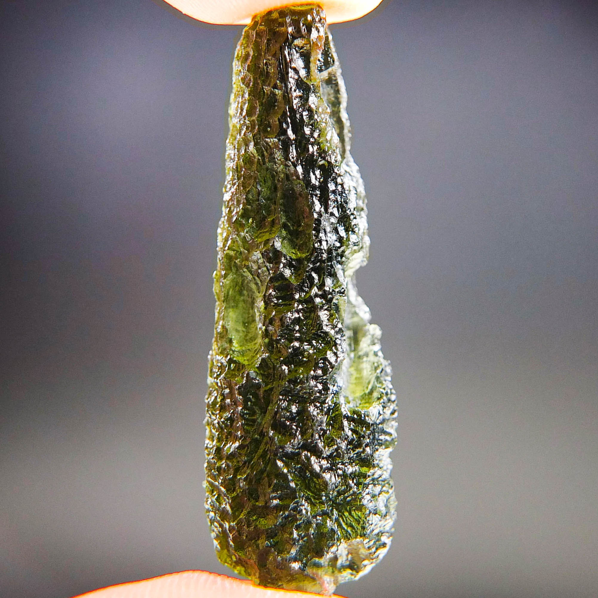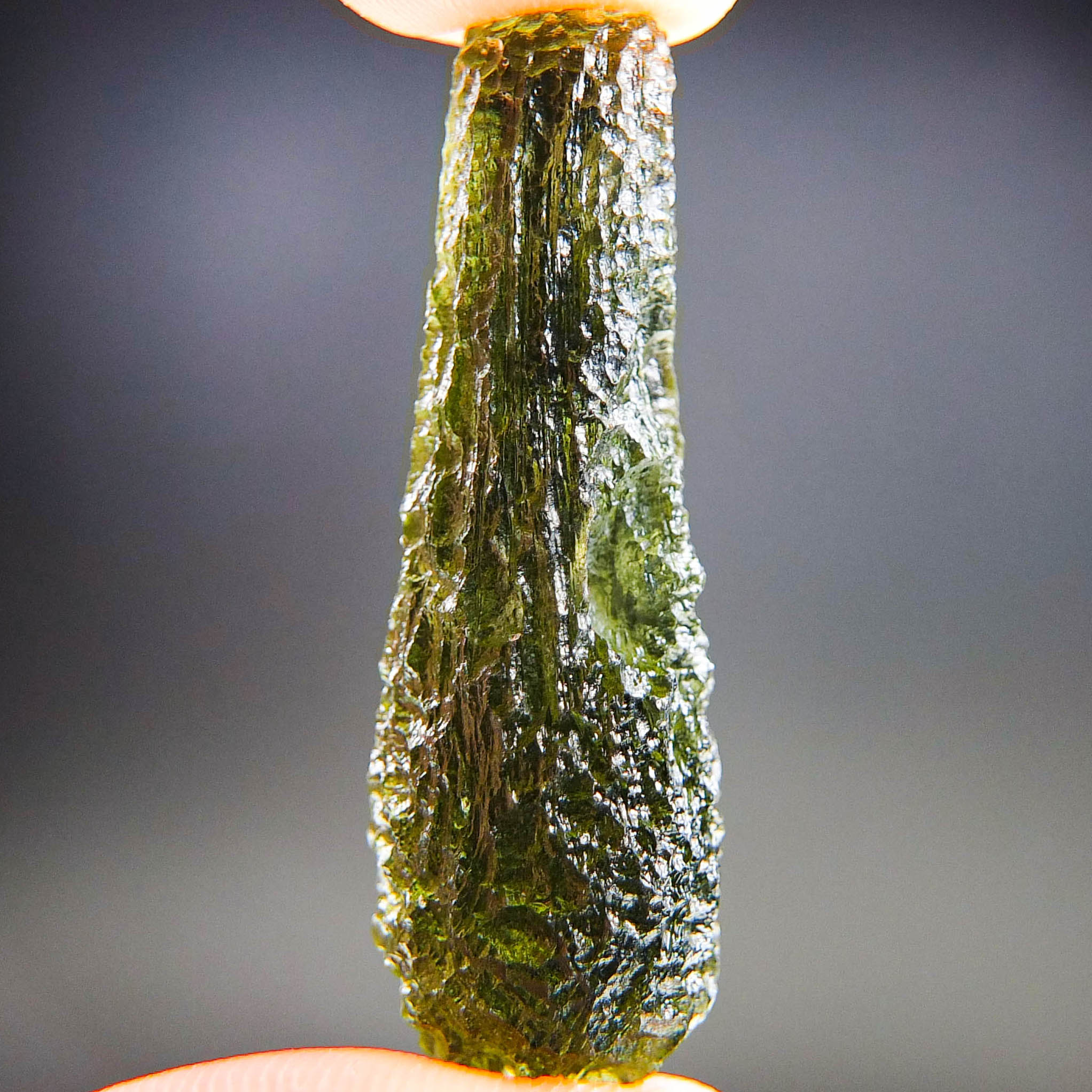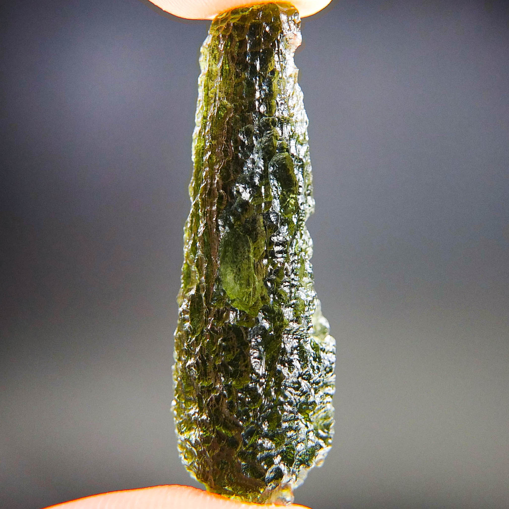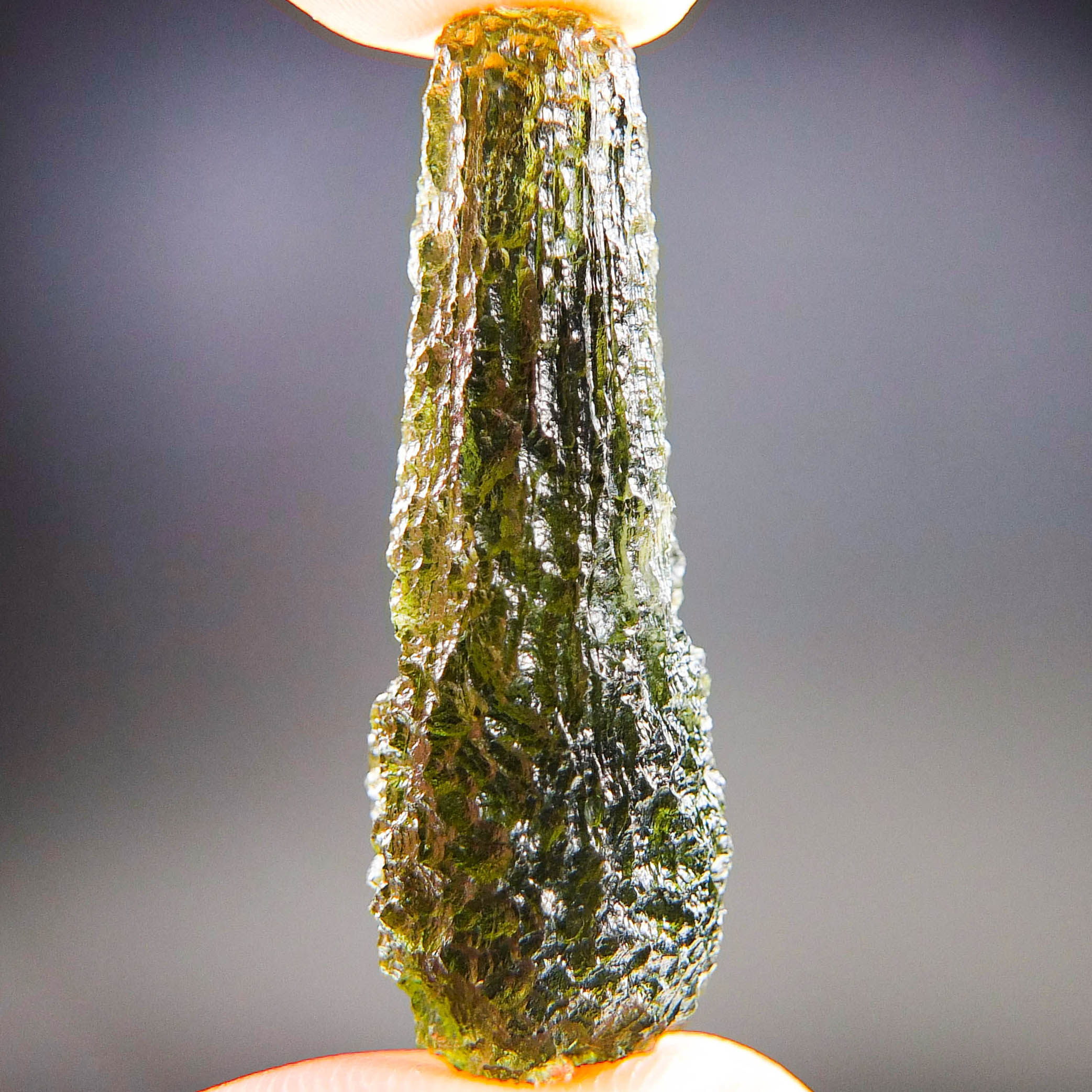 Certified Moldavite with A quality. From deposit Chlum. Shape: Drop.