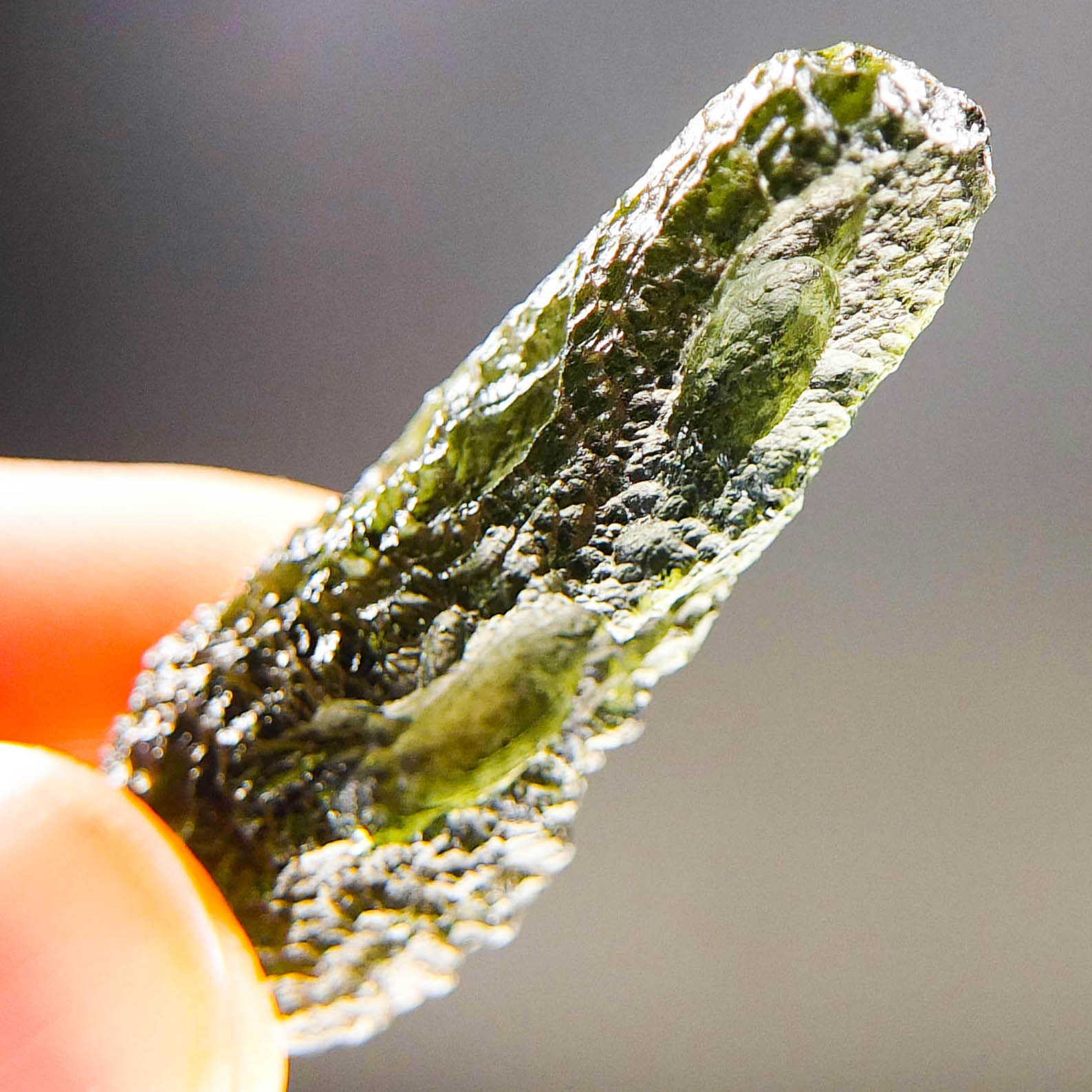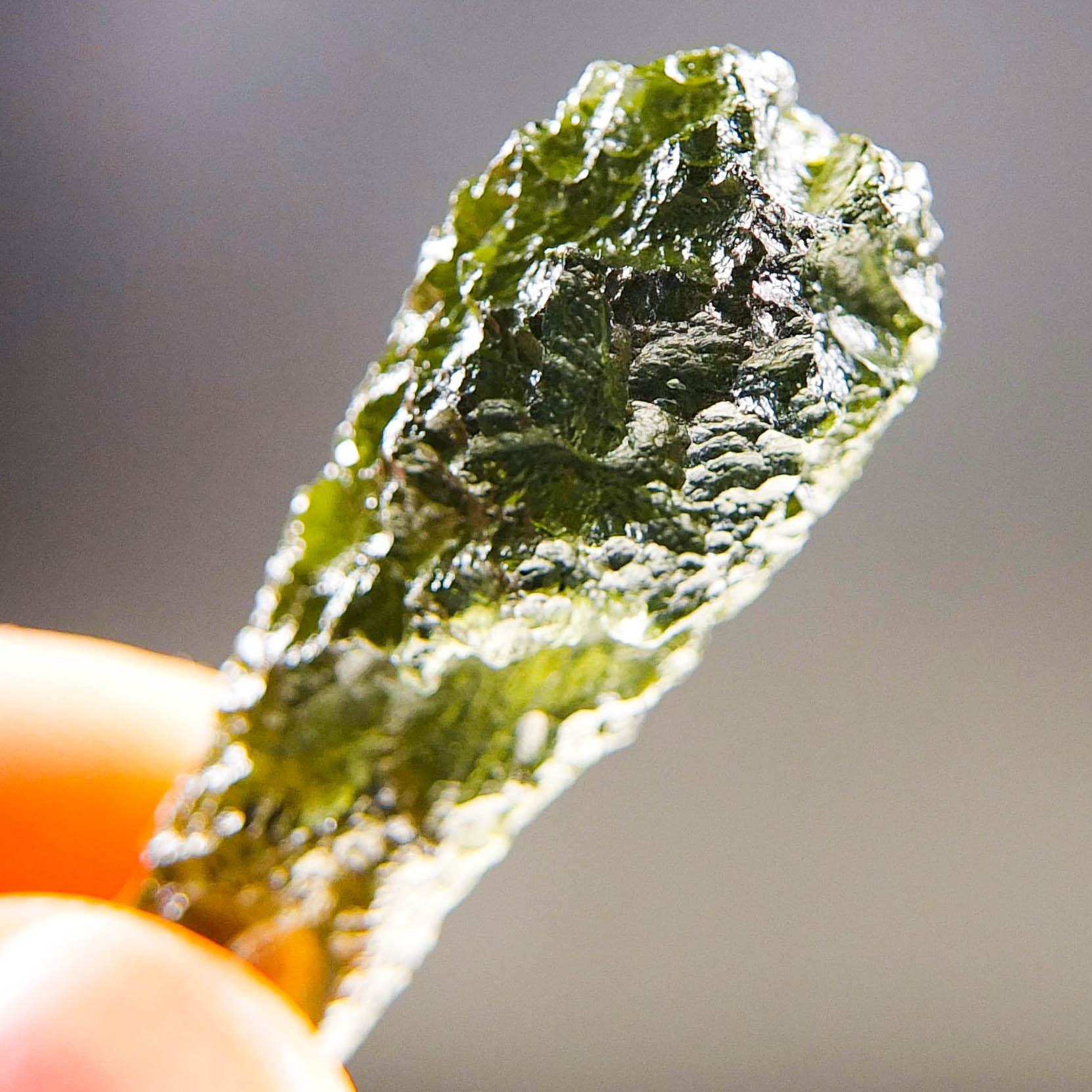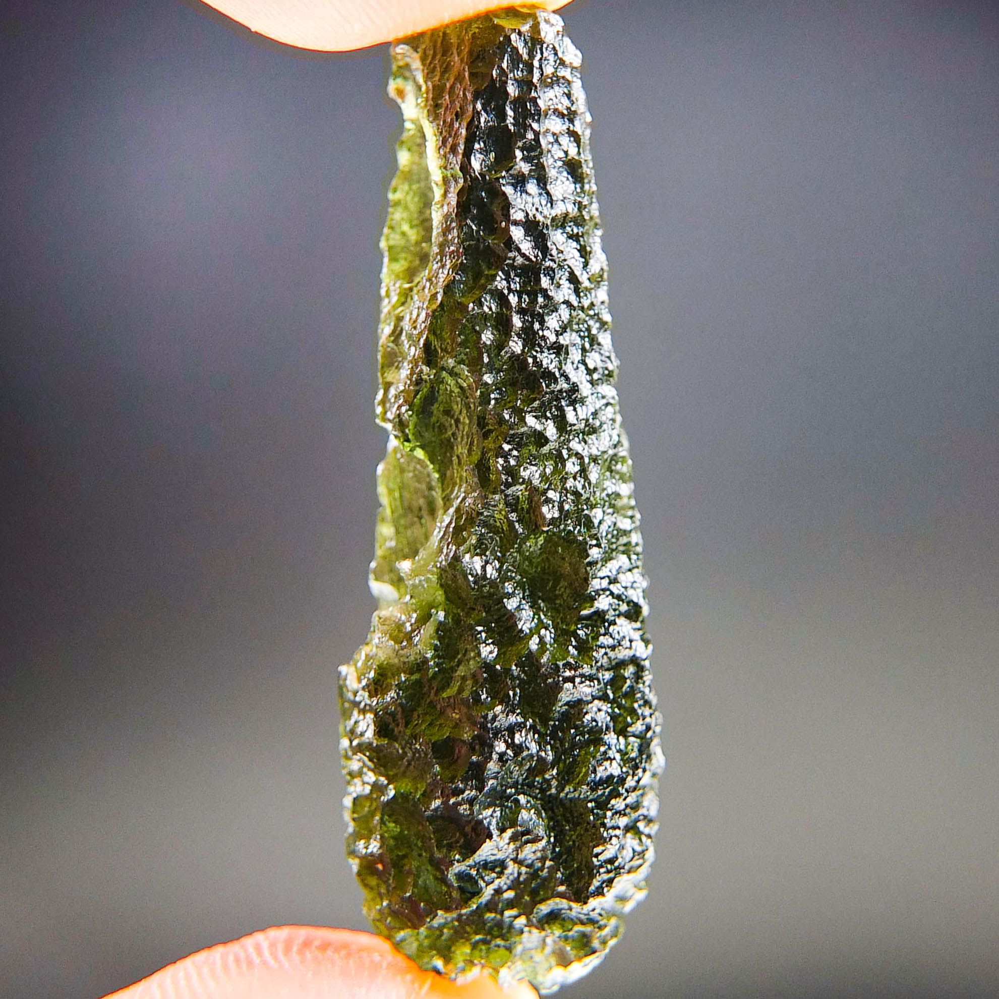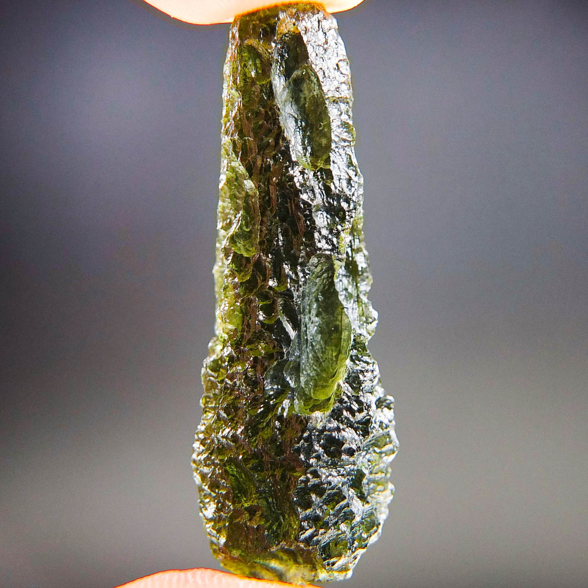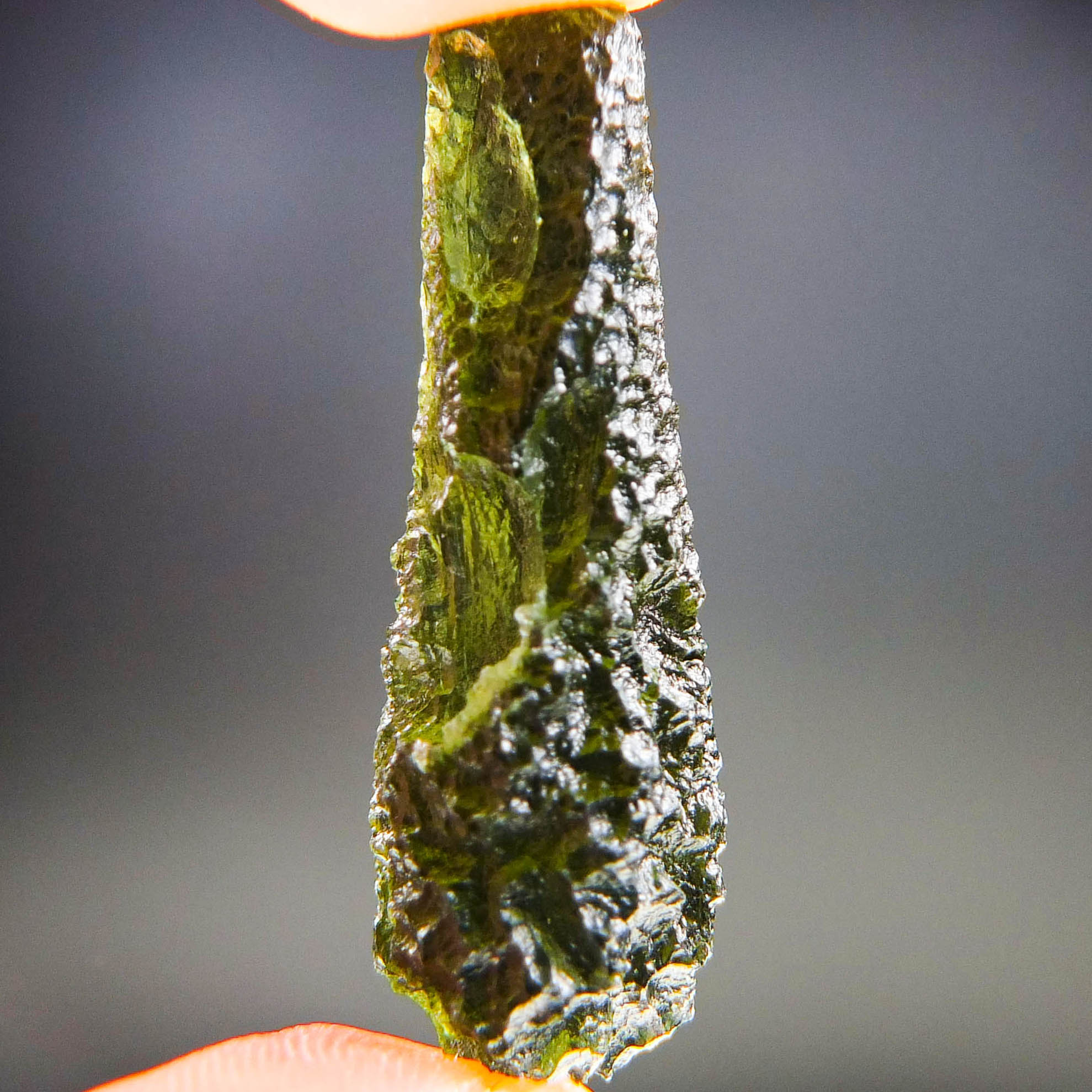 Certified Moldavite with A quality. From deposit Chlum. Shape: Drop.