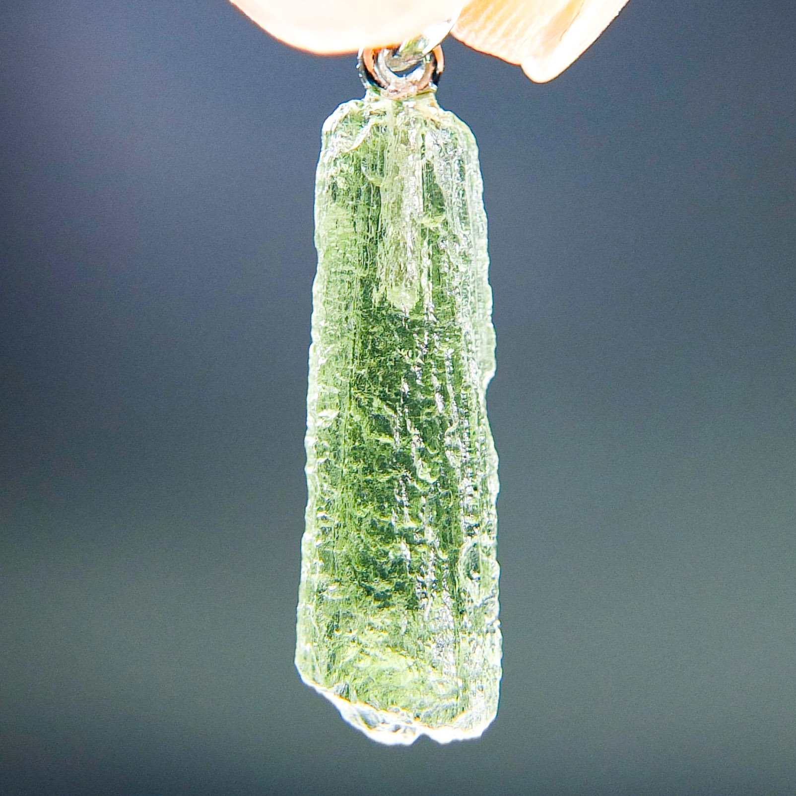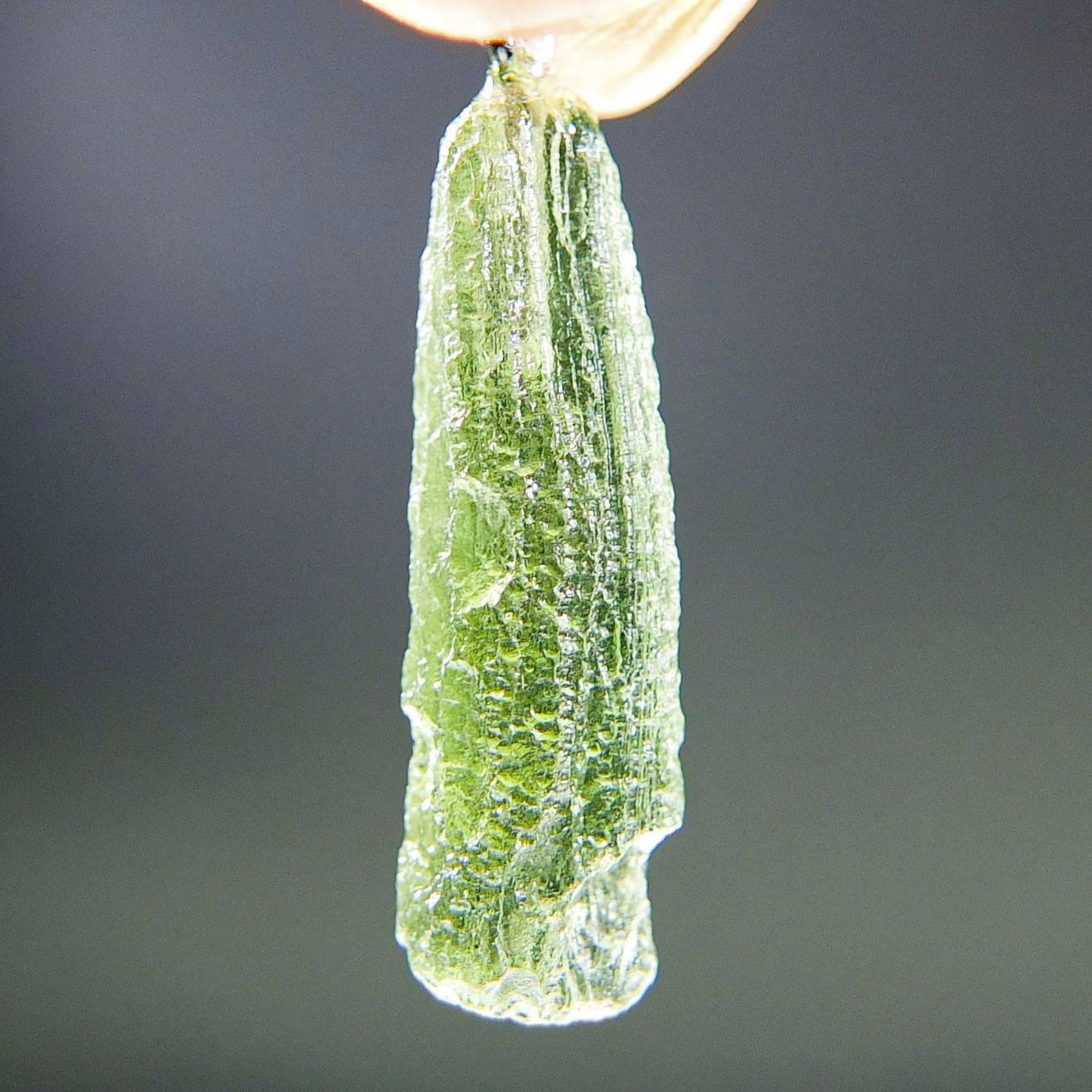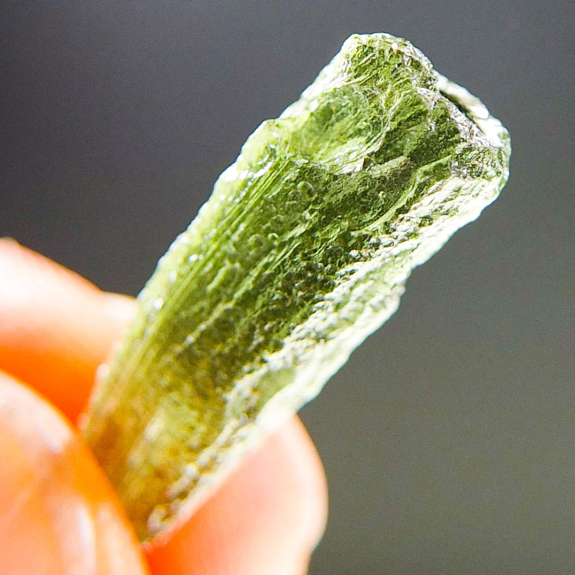 Certified Moldavite with A quality. From deposit Chlum. Shape: Drop – natural middle fragment.