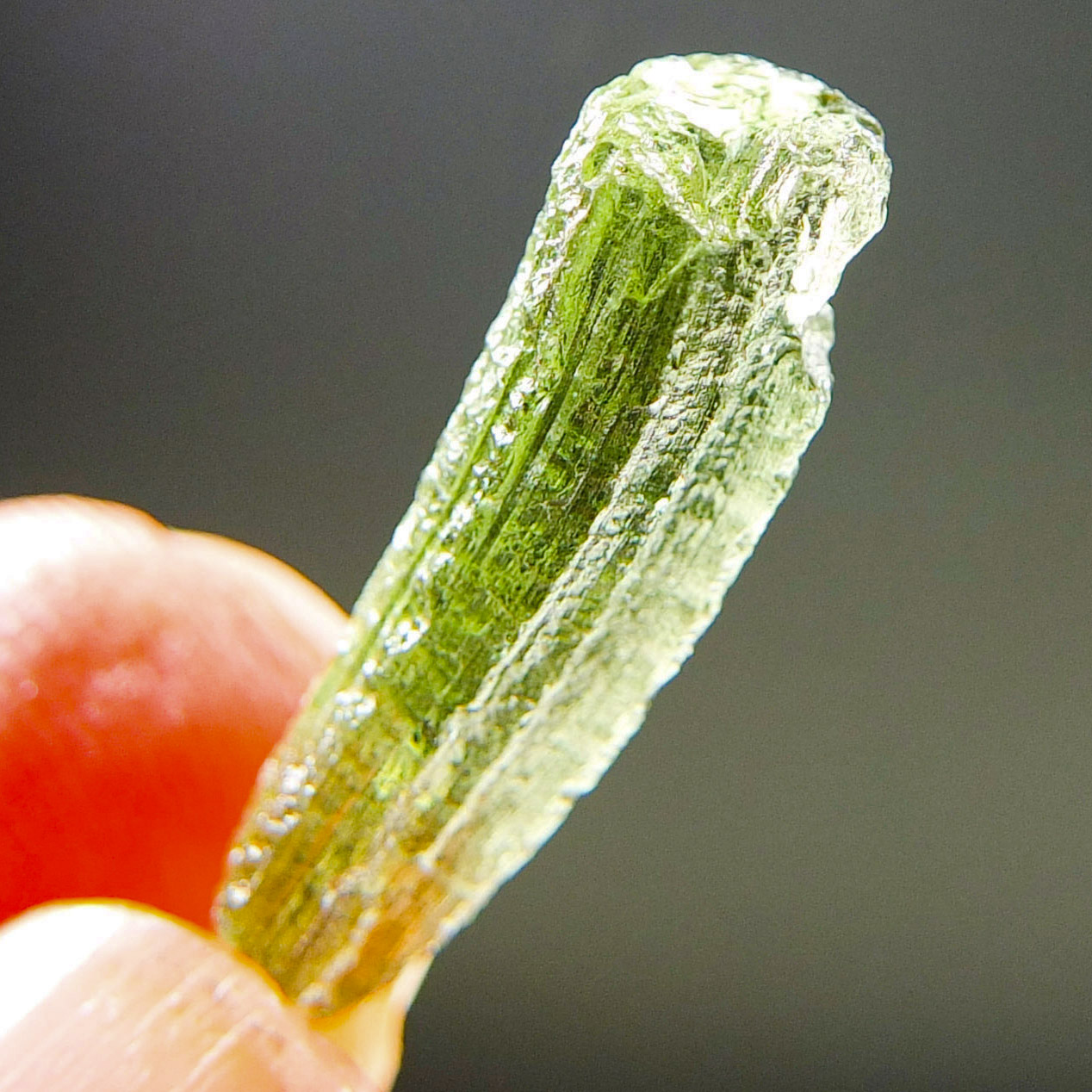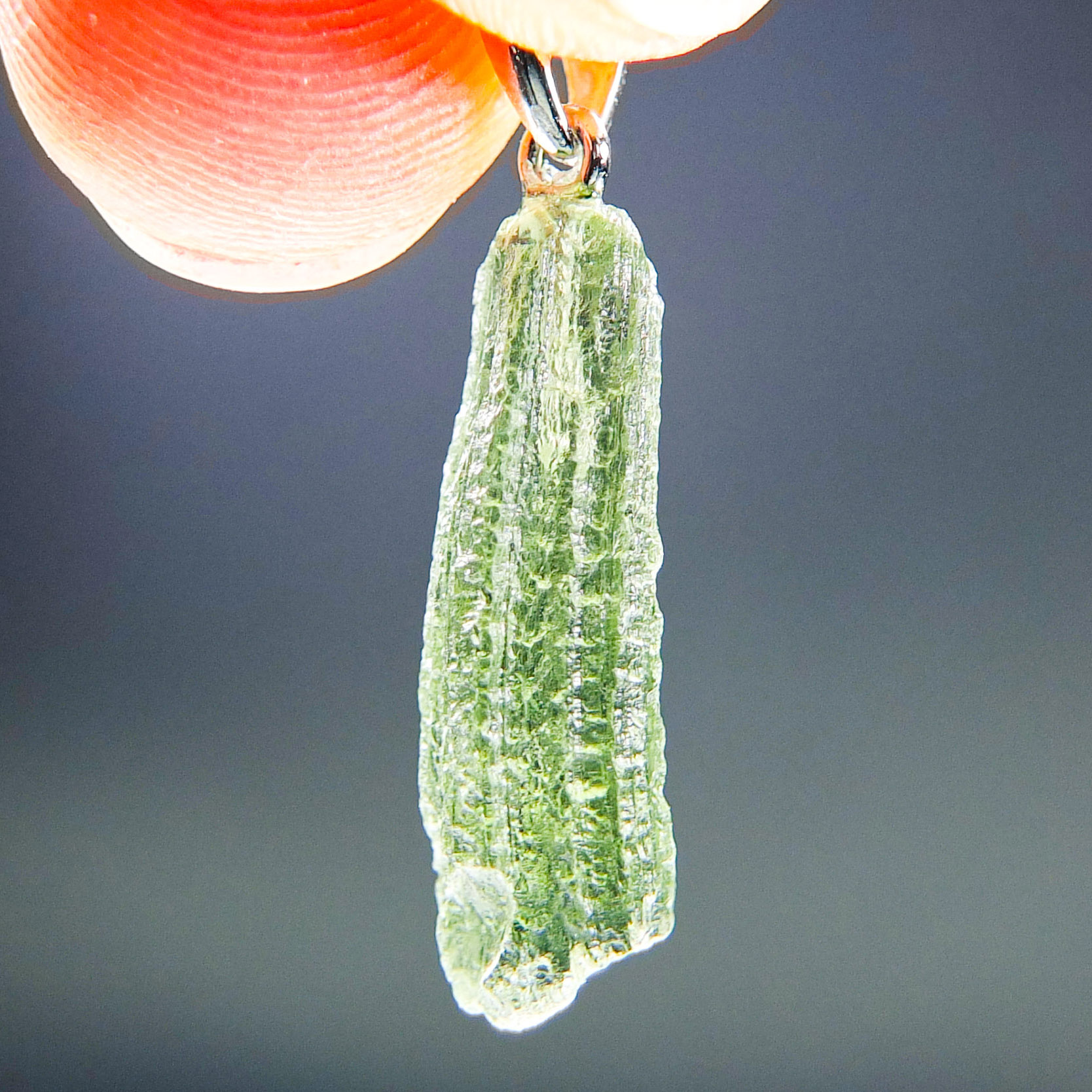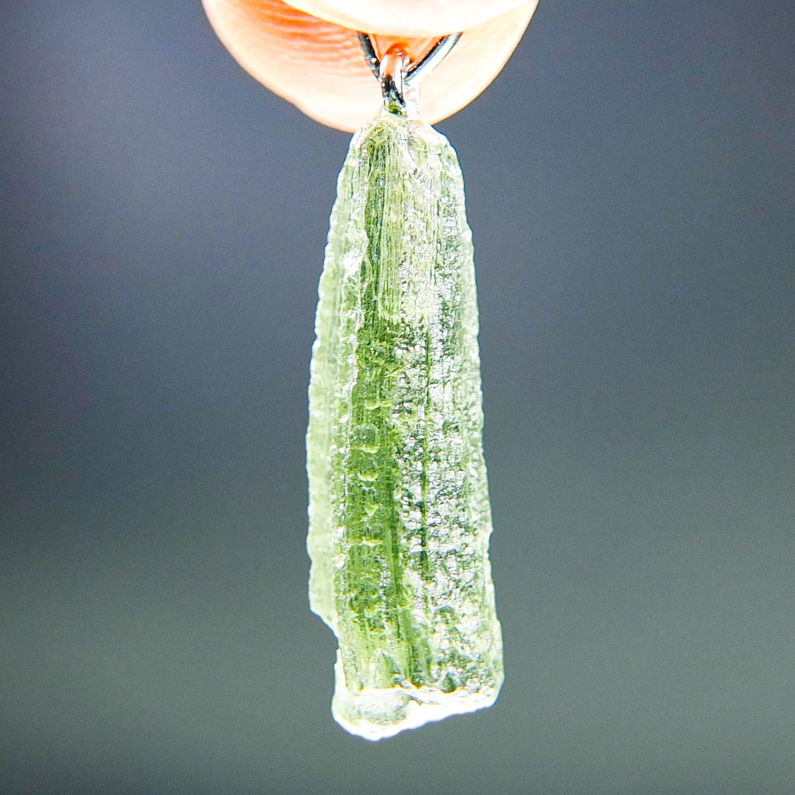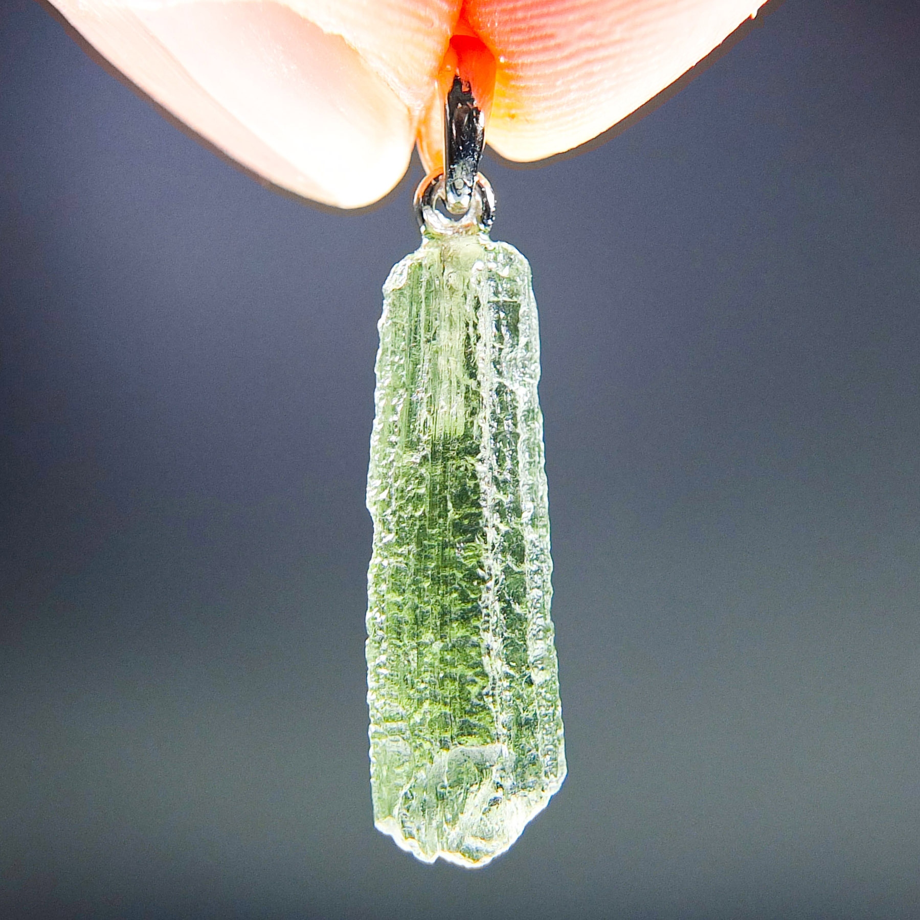 Certified Moldavite with A quality. From deposit Chlum. Shape: Drop – natural middle fragment.