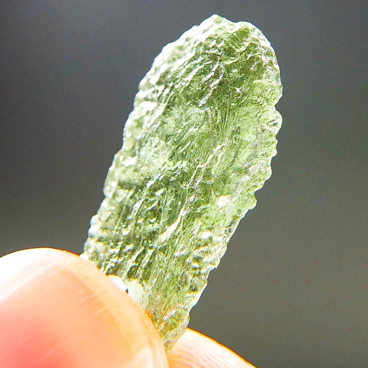 Certified Moldavite with A quality. From deposit Chlum. Shape: Drop – natural lower fragment (belly).