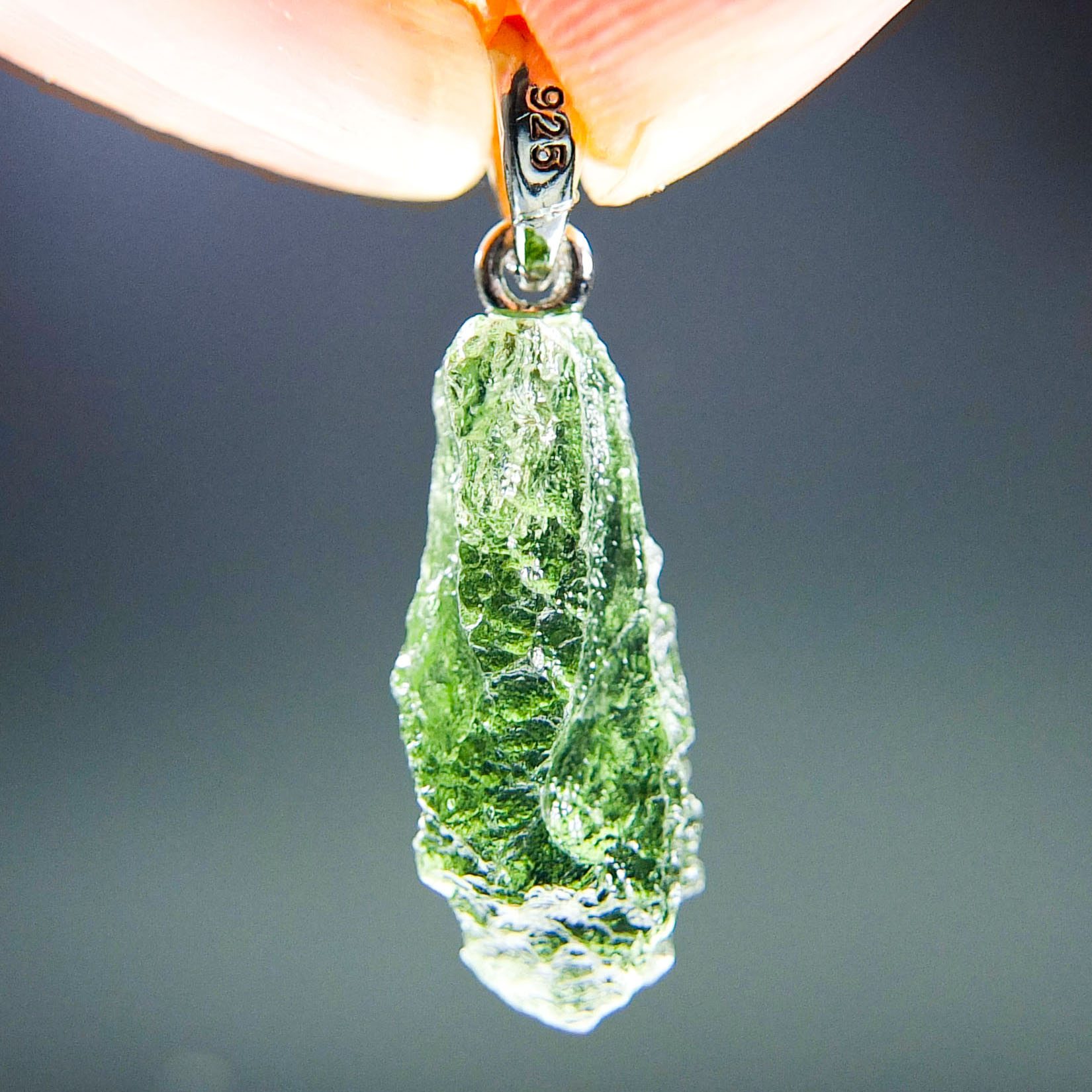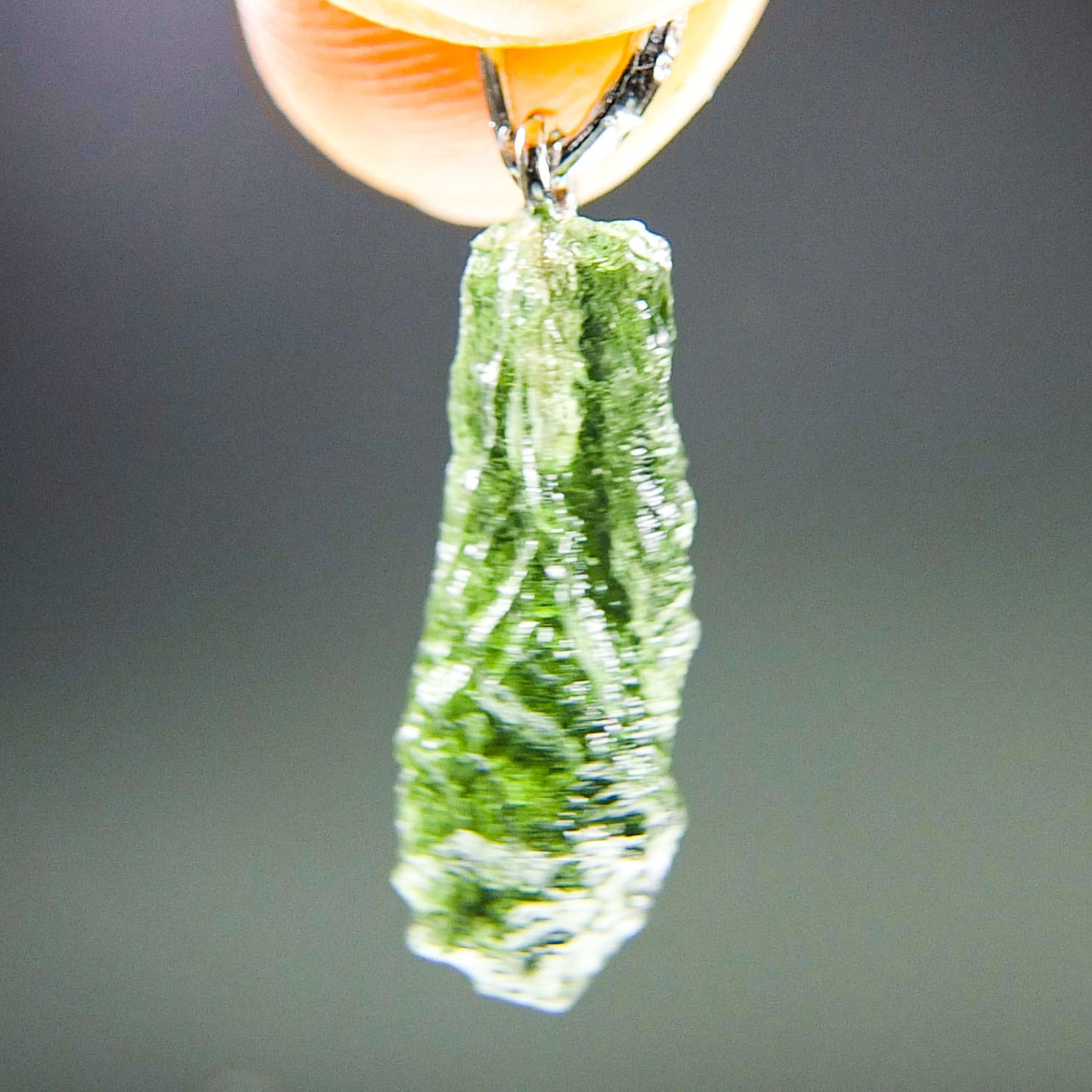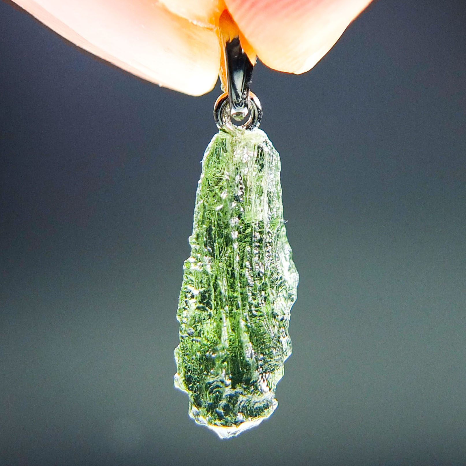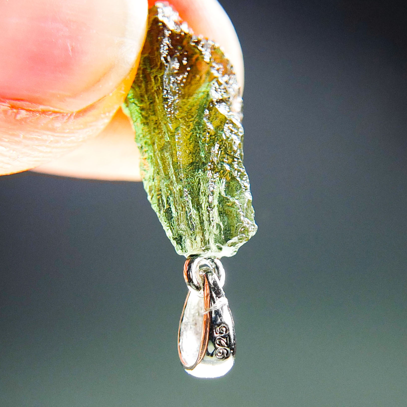 Certified Moldavite with A quality. From deposit Chlum. Shape: Drop.