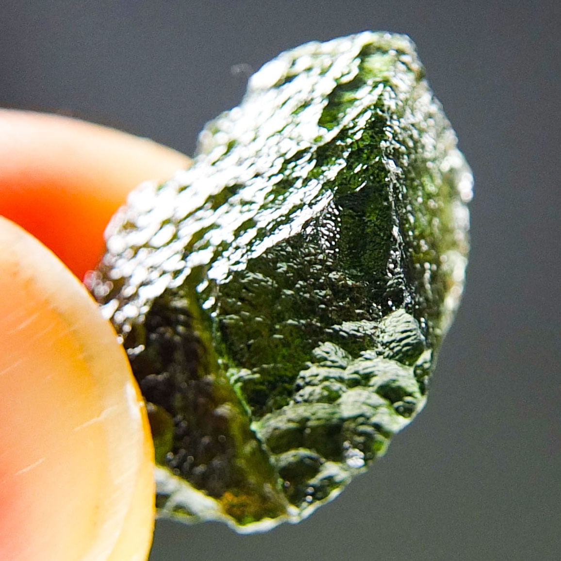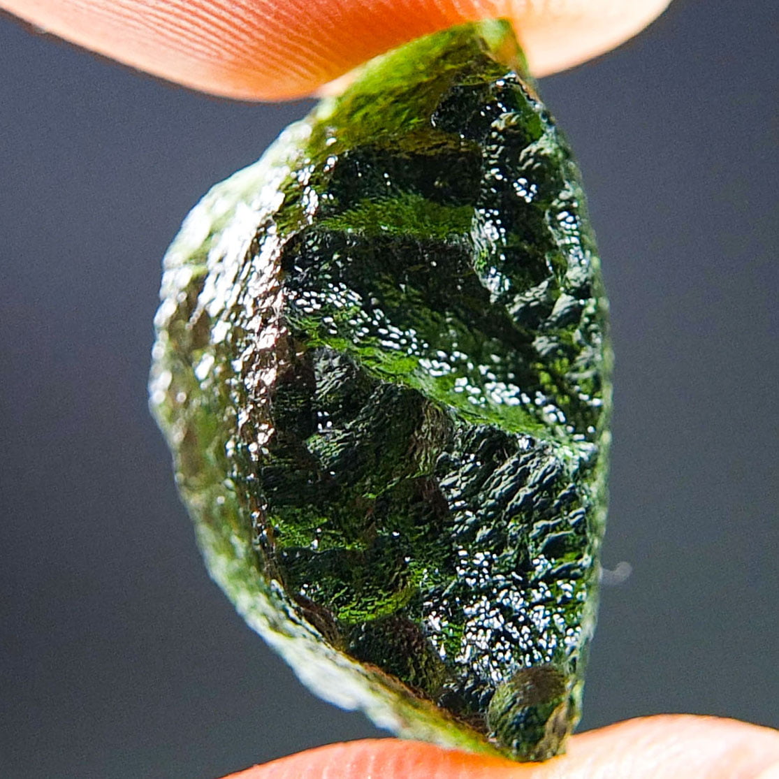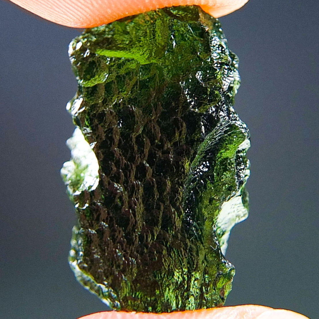 Certified Moldavite with A quality. From deposit Chlum. Shape: Uncommon.