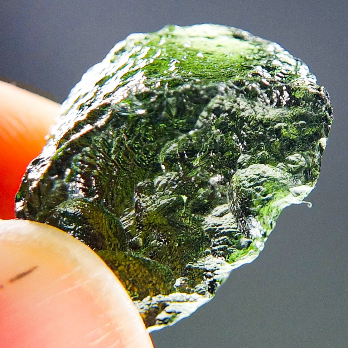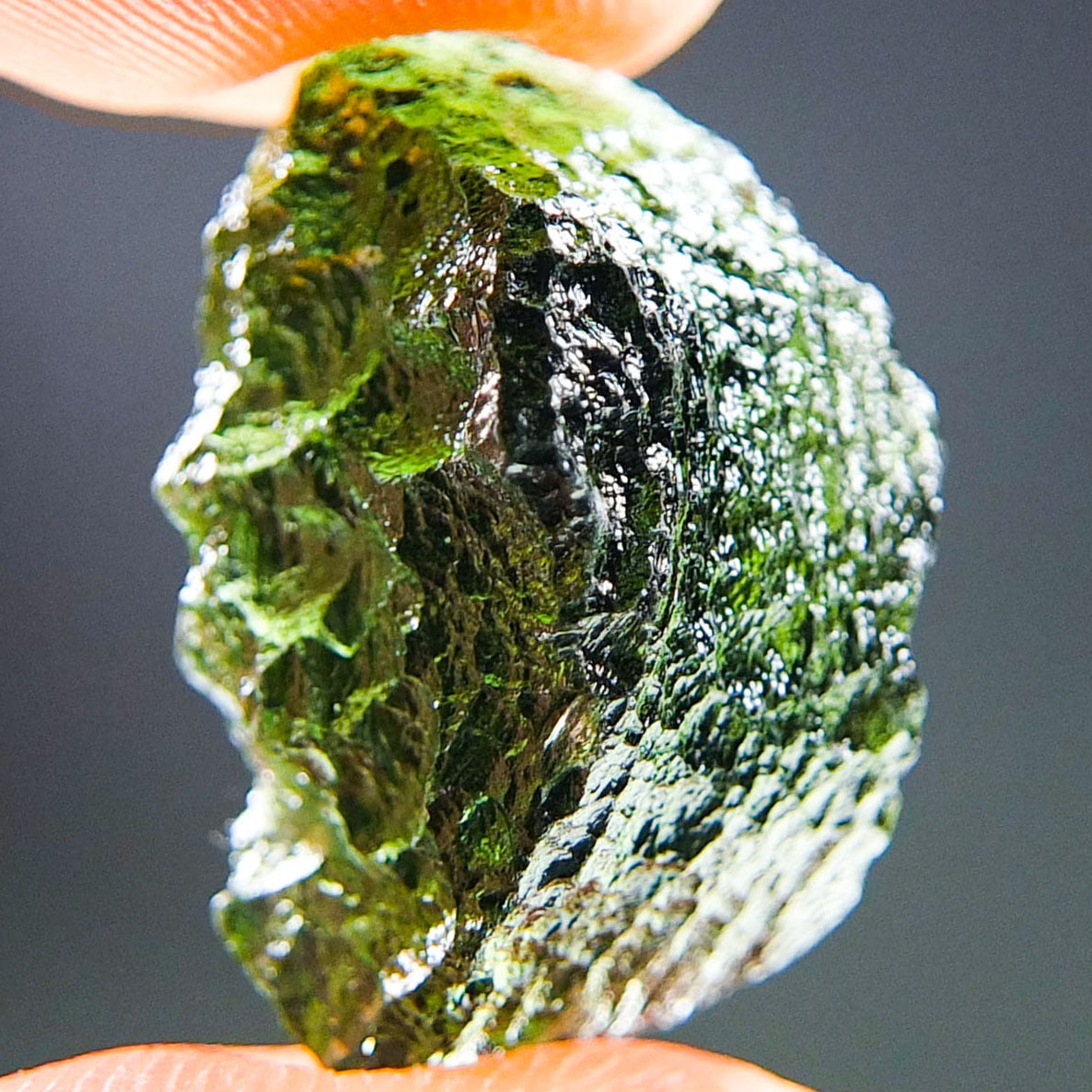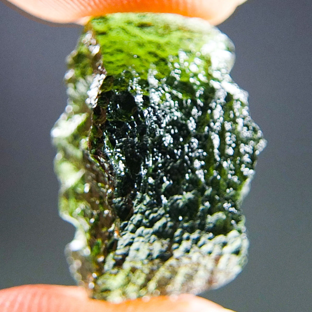 Certified Moldavite with A quality. From deposit Chlum. Shape: Uncommon.
