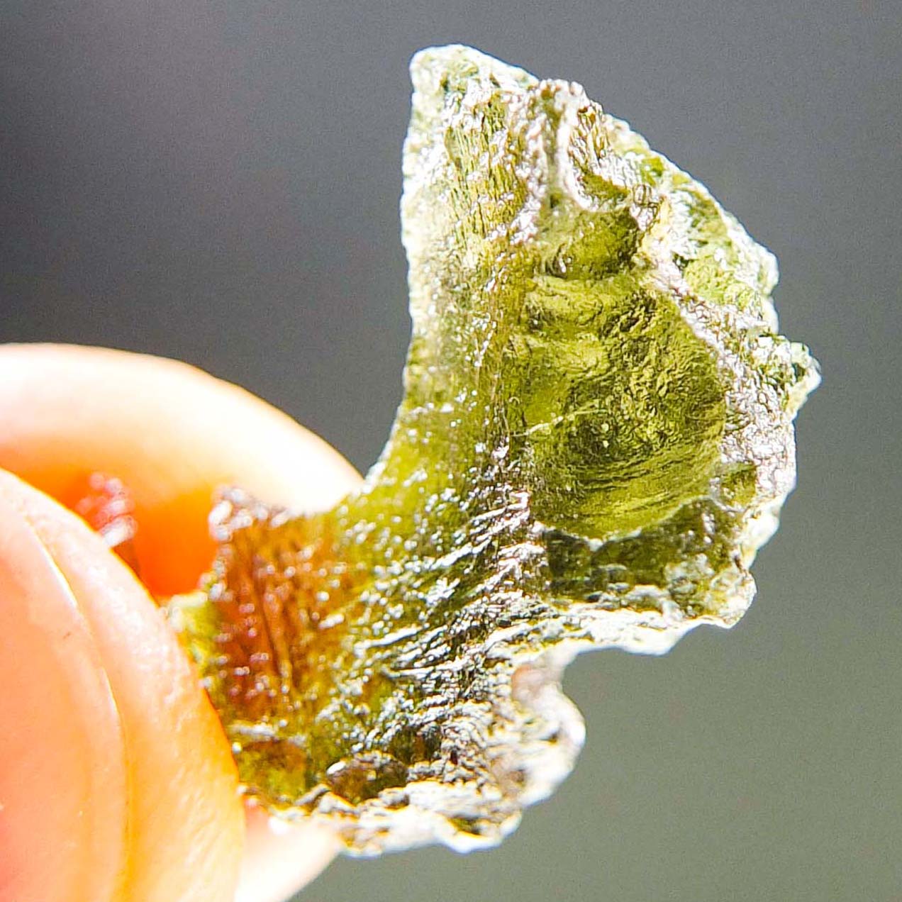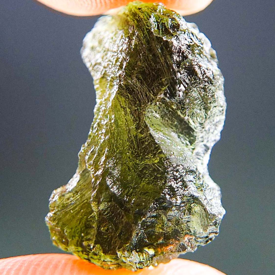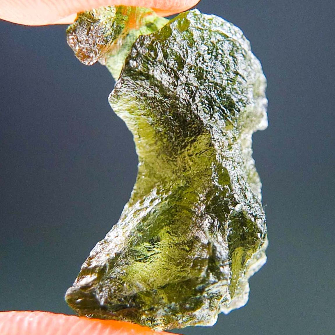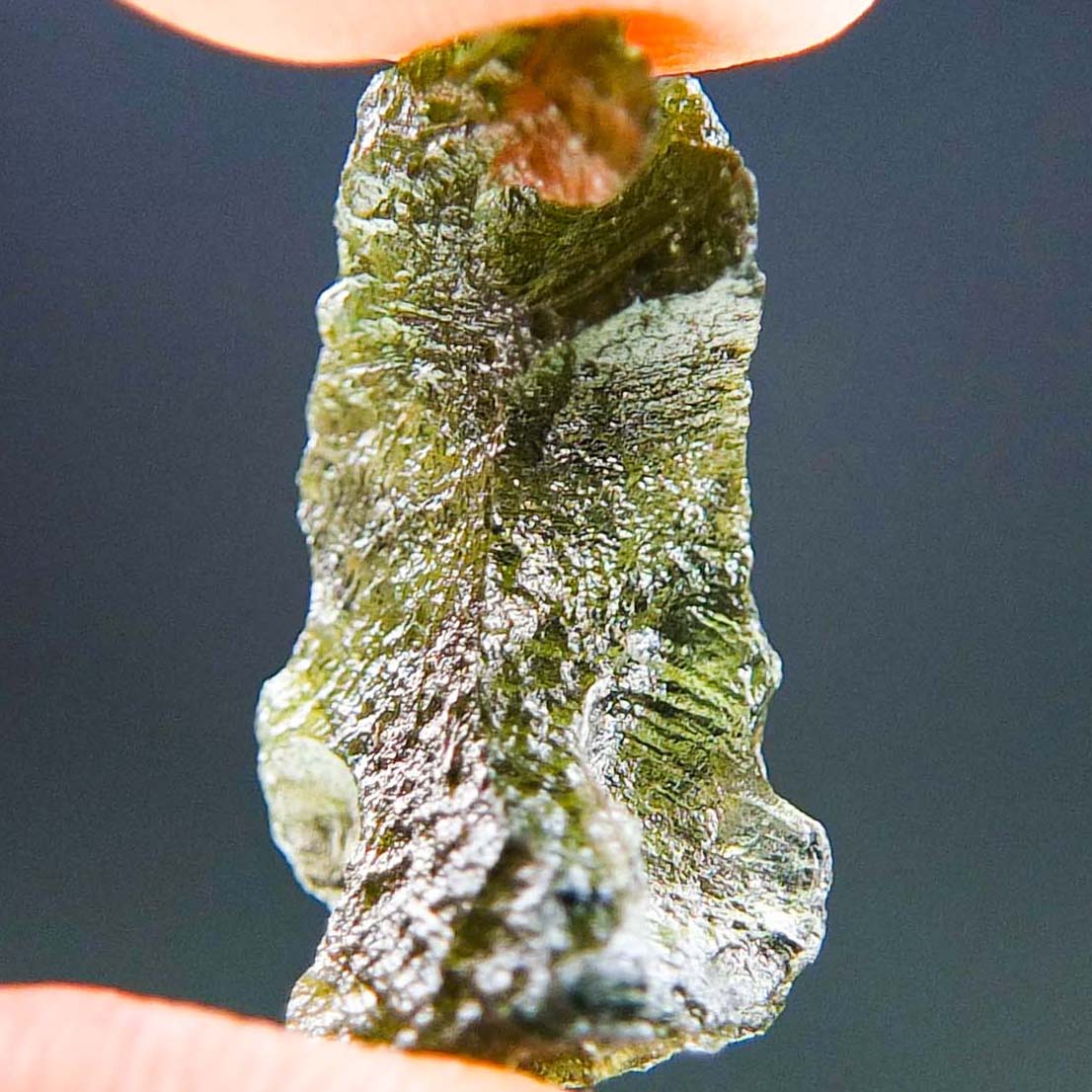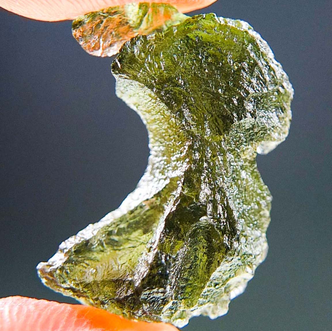 Certified Moldavite with A quality. From deposit Chlum. Shape: Uncommon.