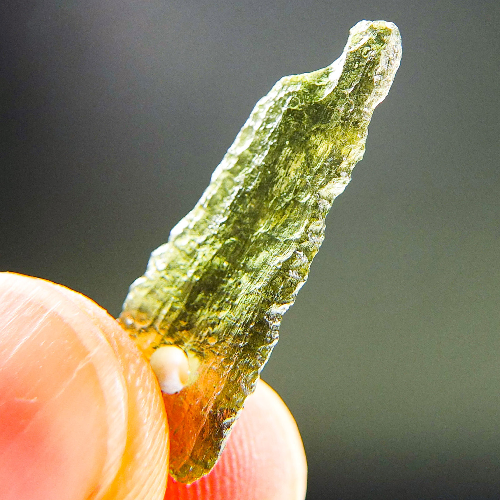 Certified Moldavite with A quality. From deposit Chlum. Shape: Drop – natural upper fragment.