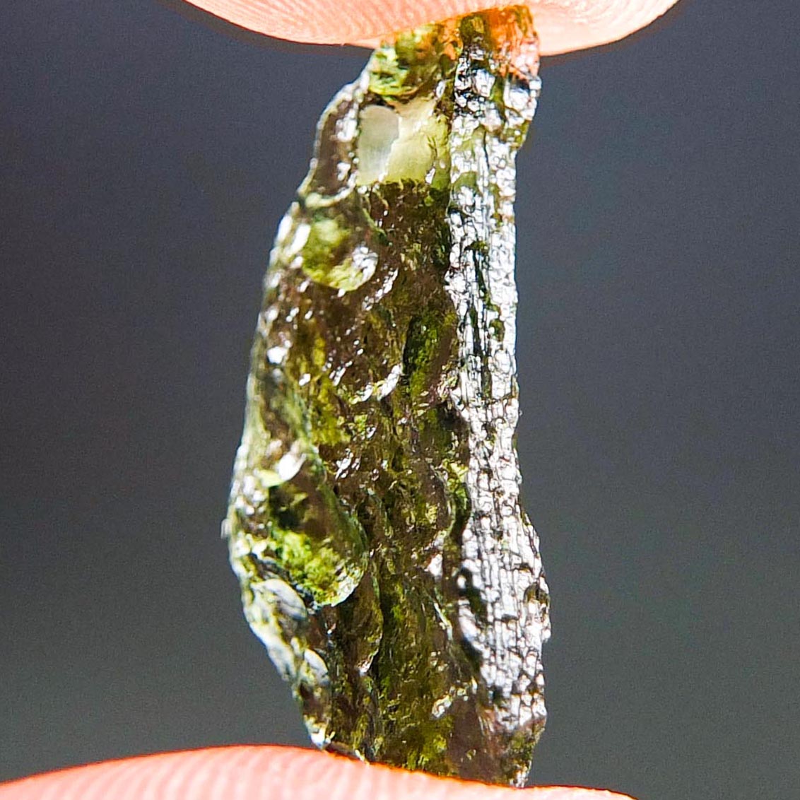 Certified Moldavite with A quality. From deposit Chlum. Shape: Natural piece.