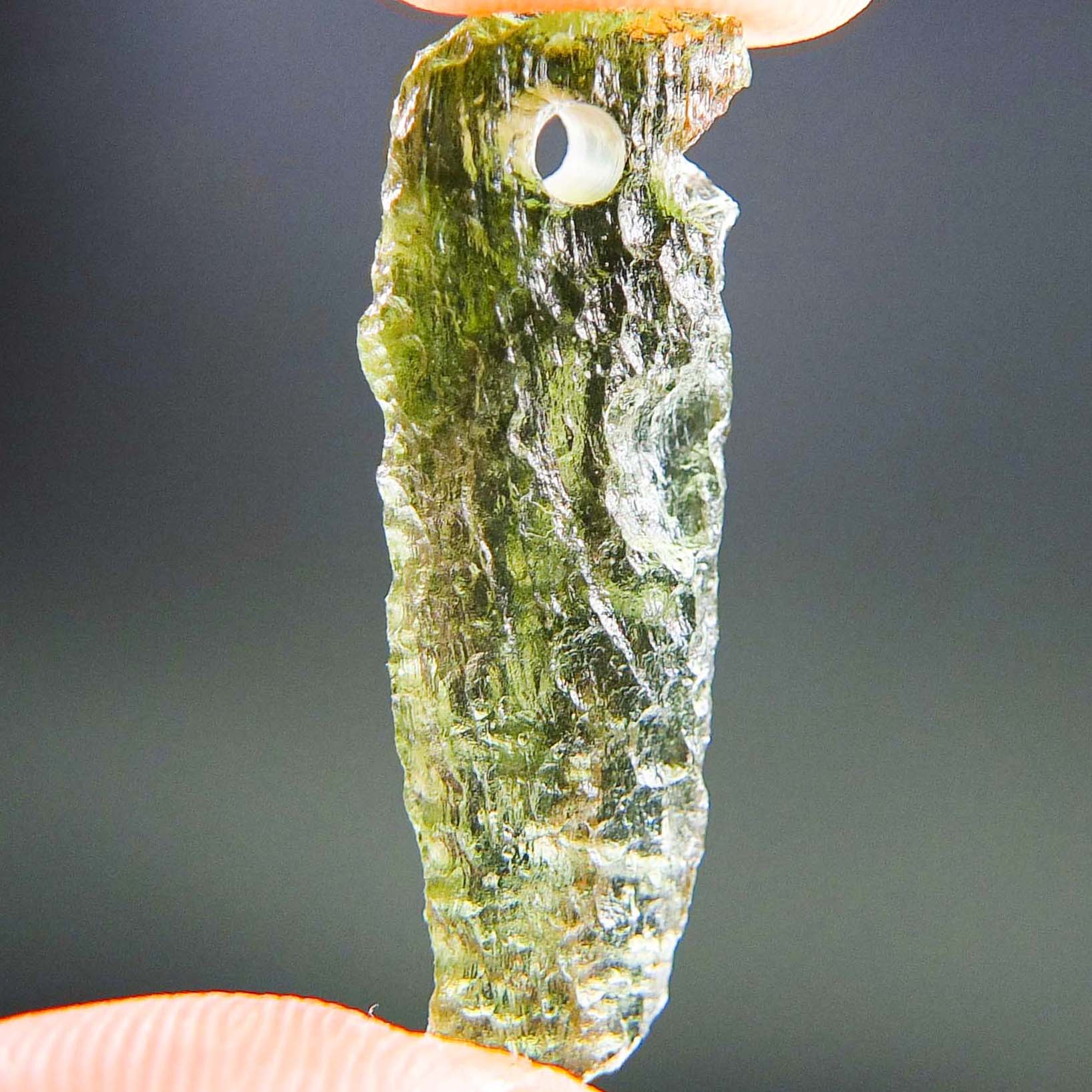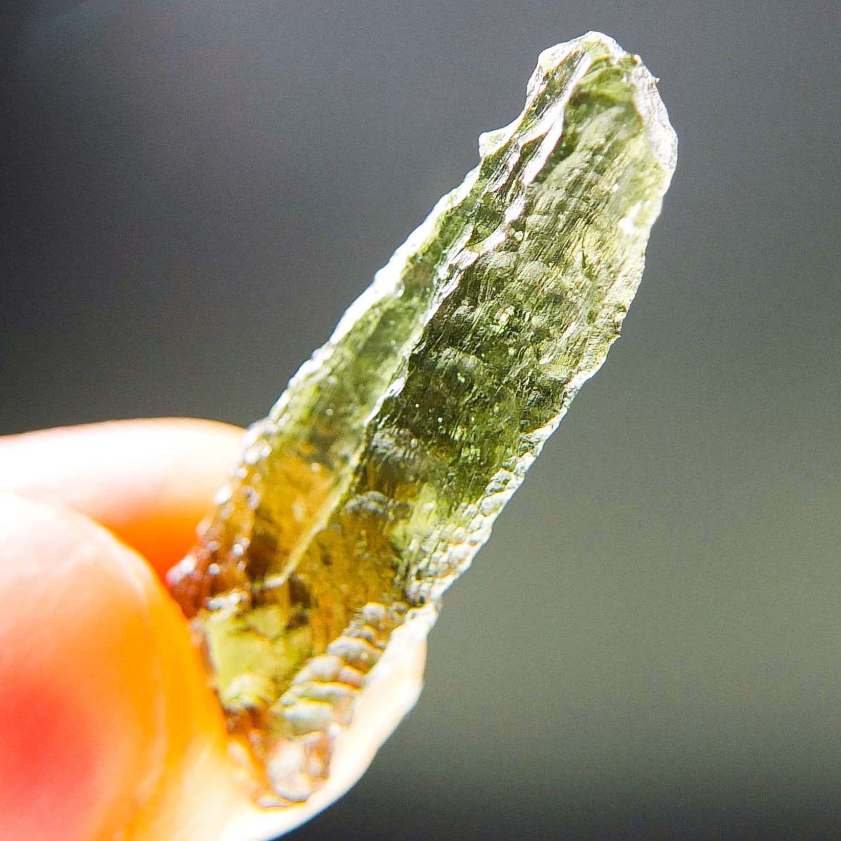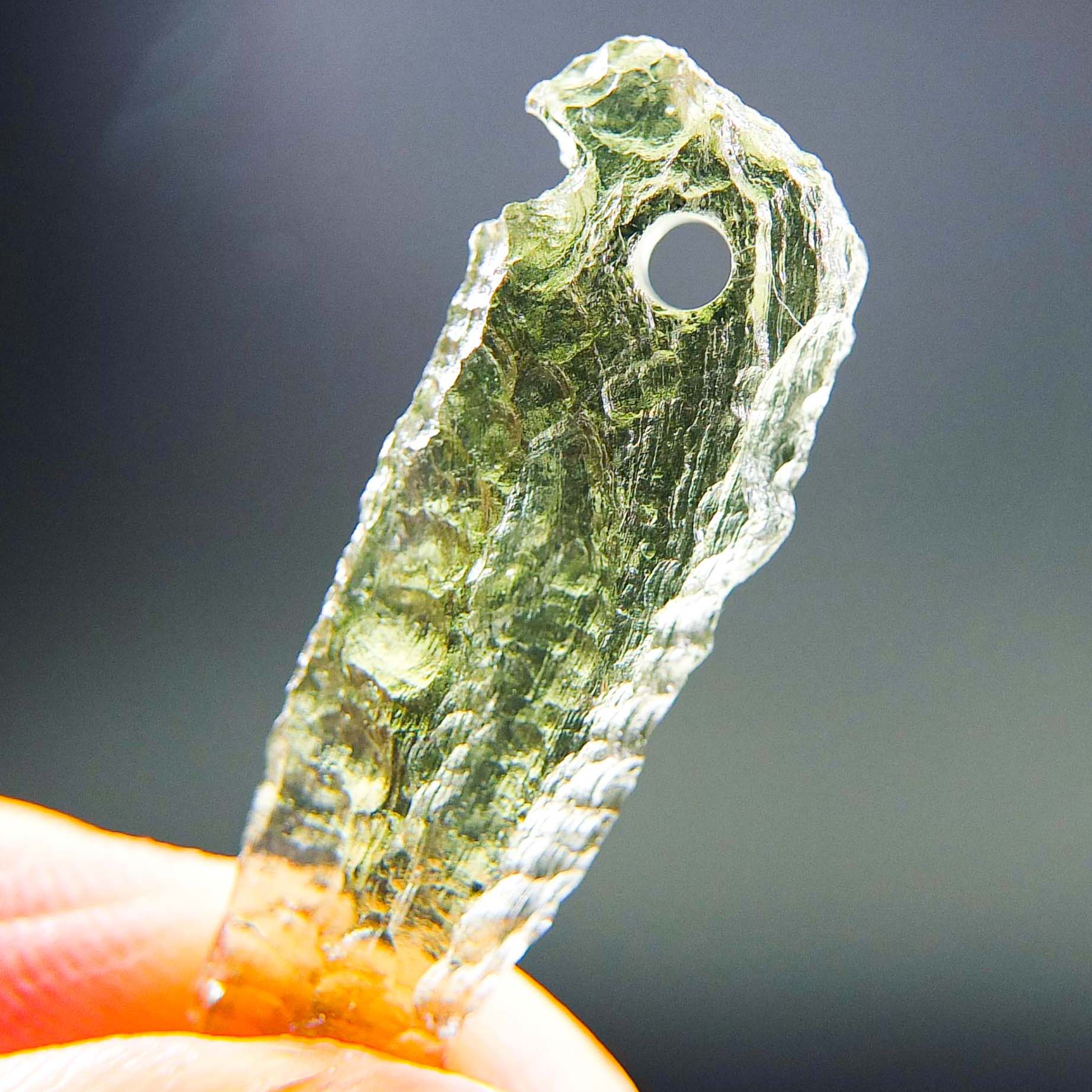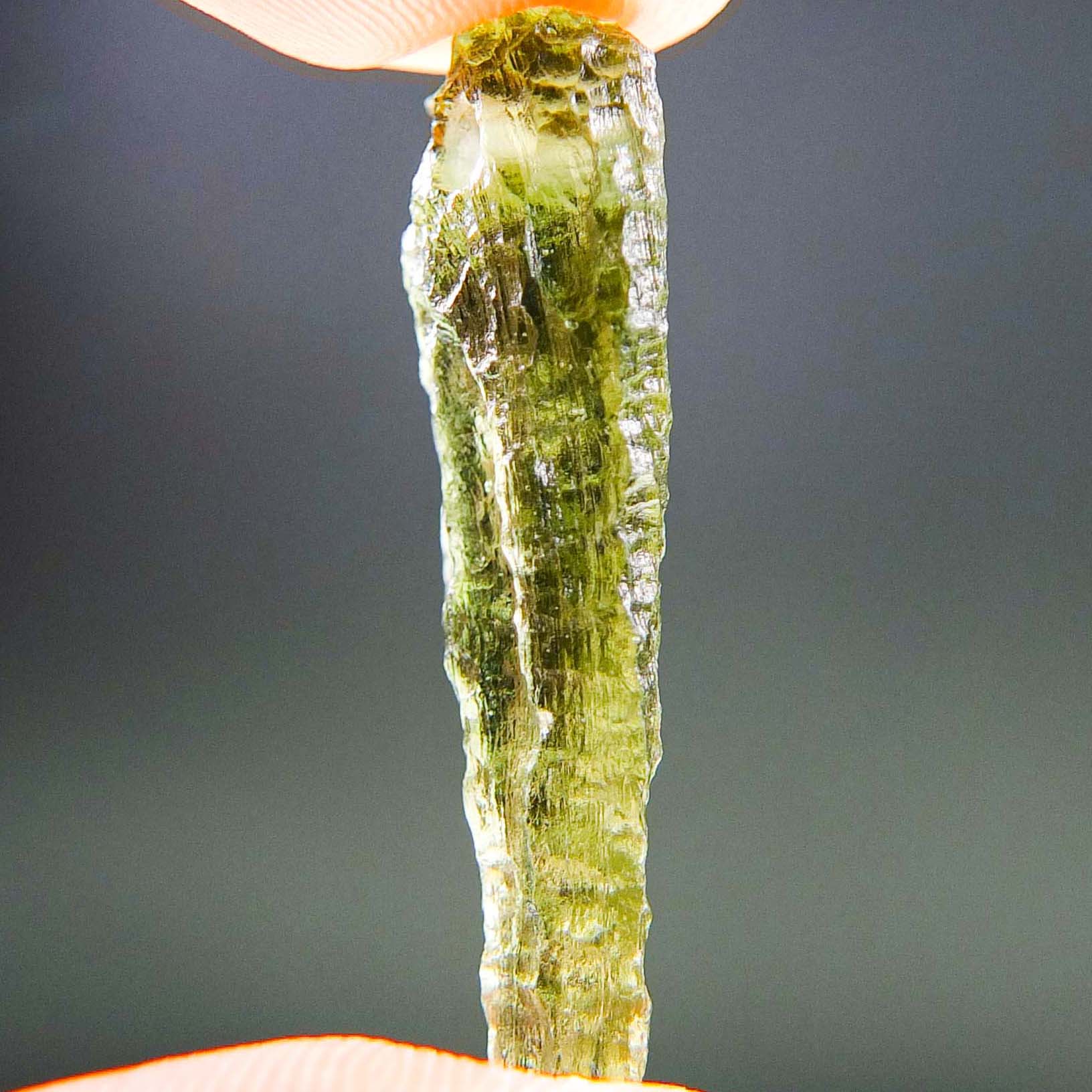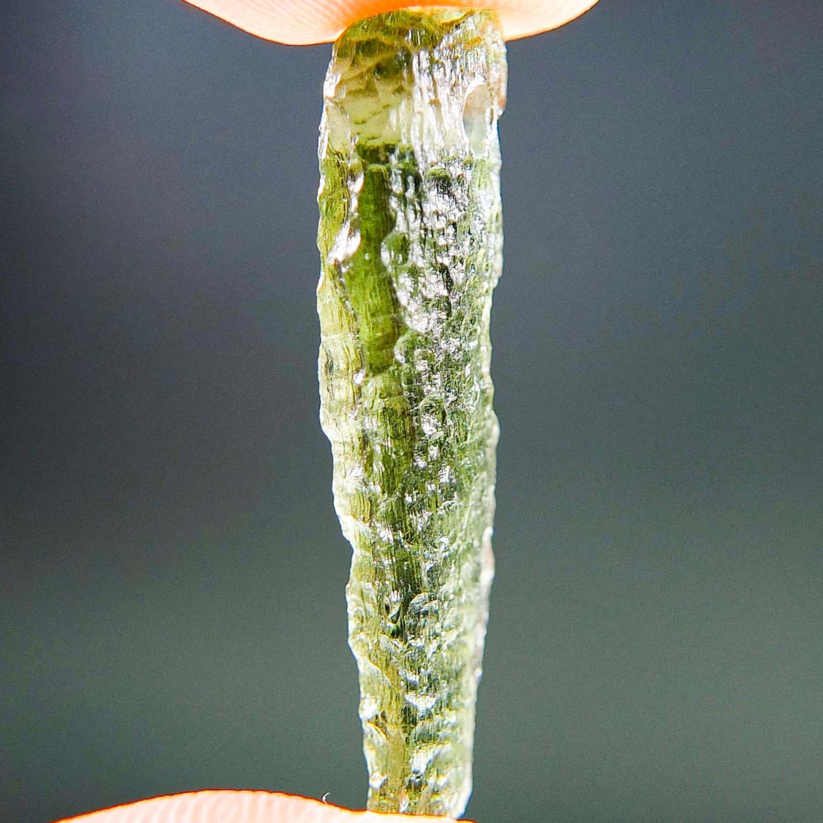 Certified Moldavite with A quality. From deposit Chlum. Shape: Drop – natural middle fragment.