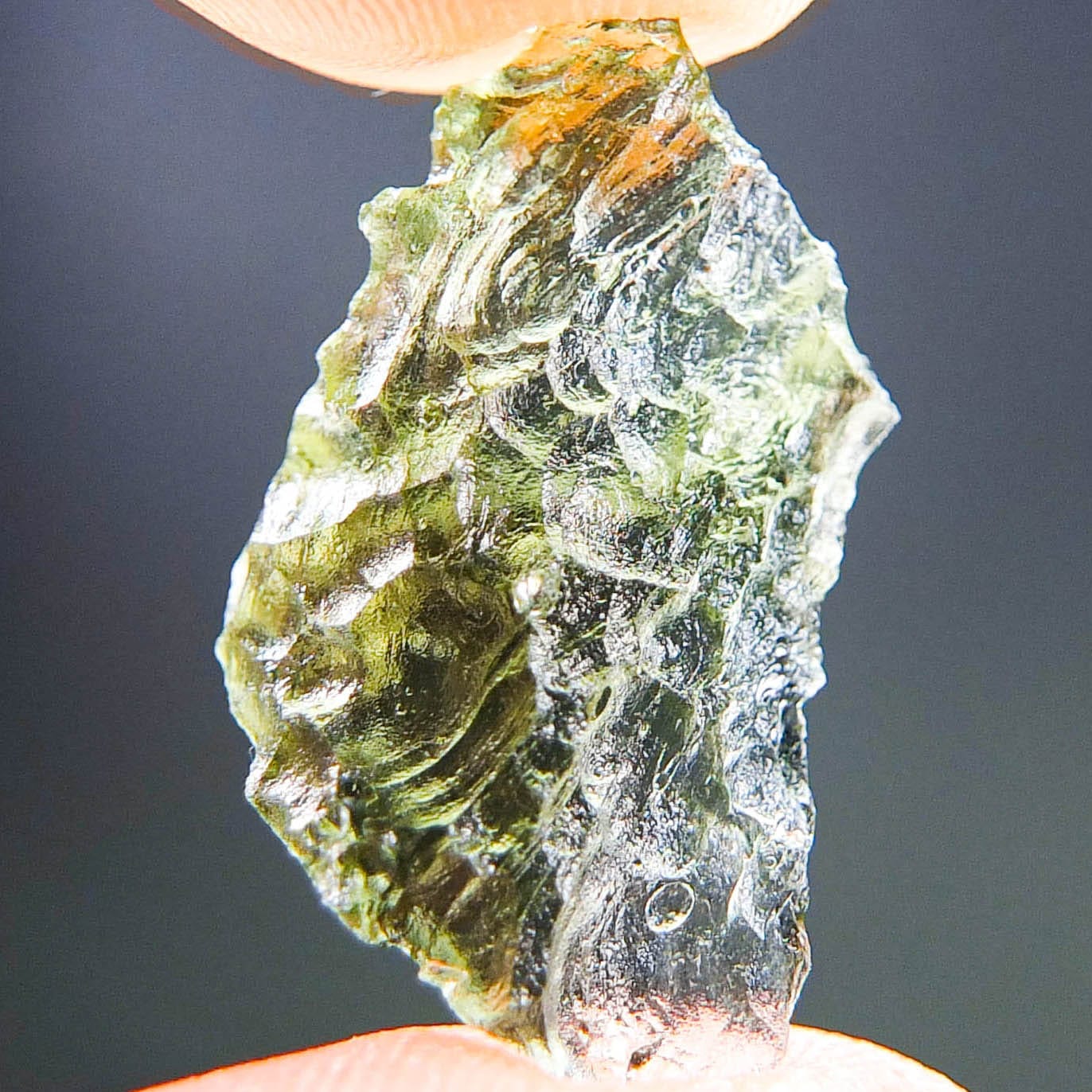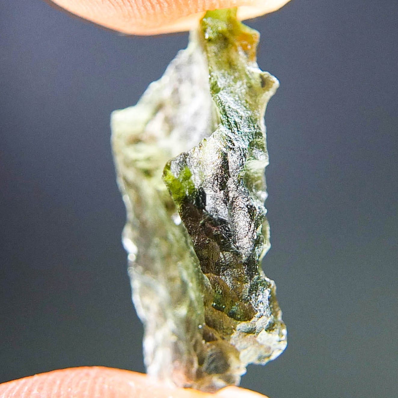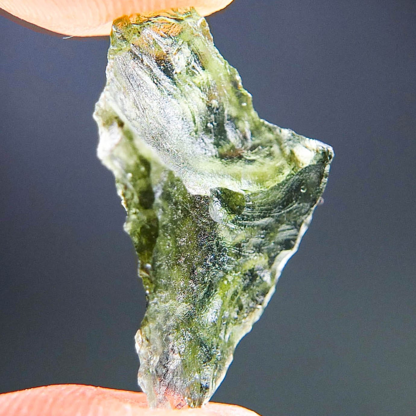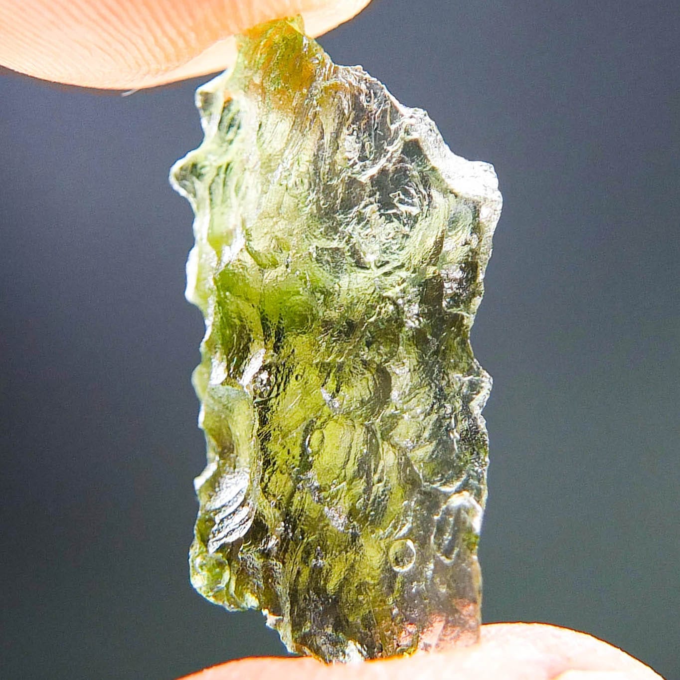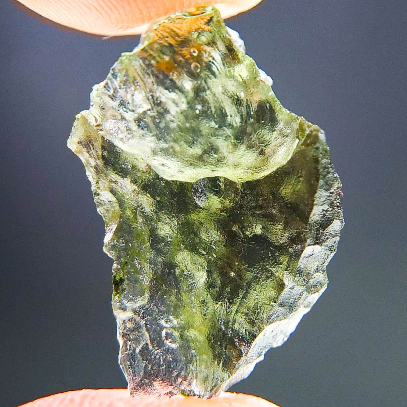 Certified Moldavite with A quality. From deposit Besednice. Shape: Natural piece.