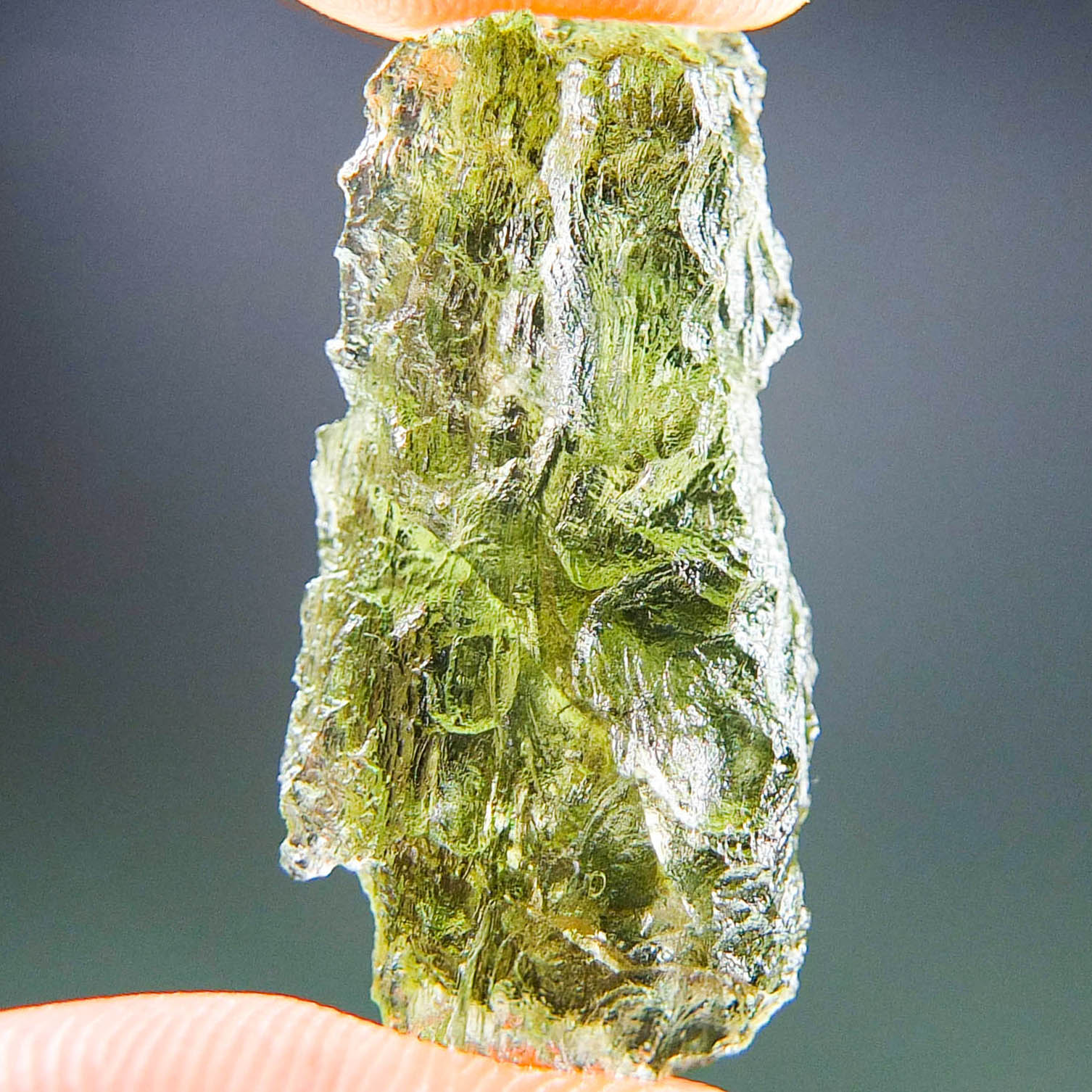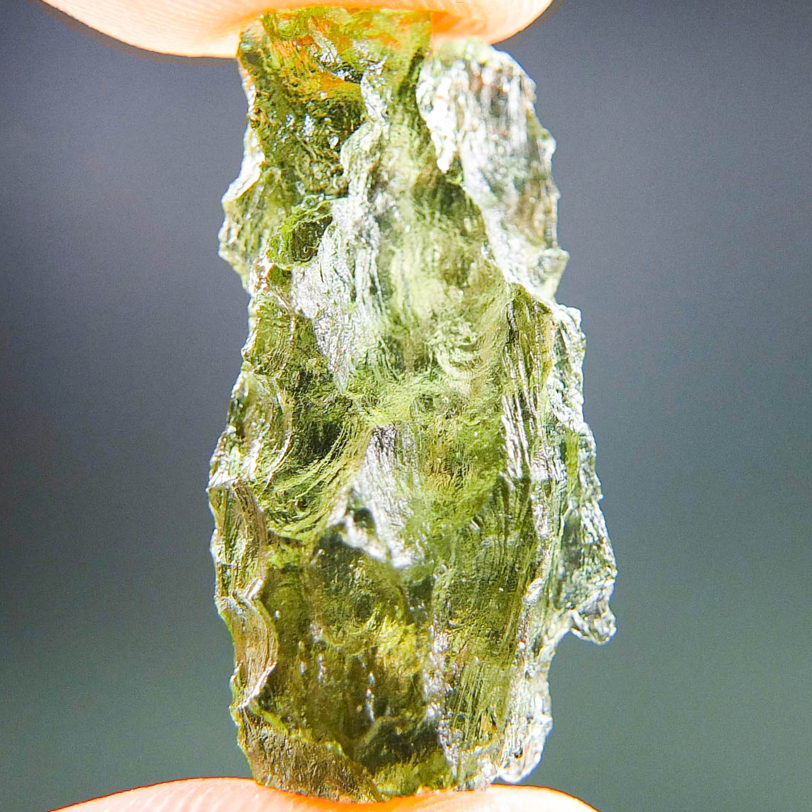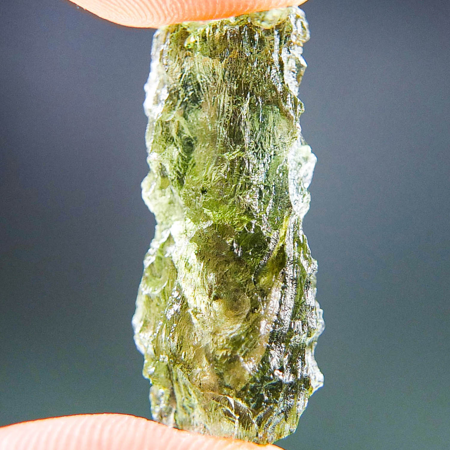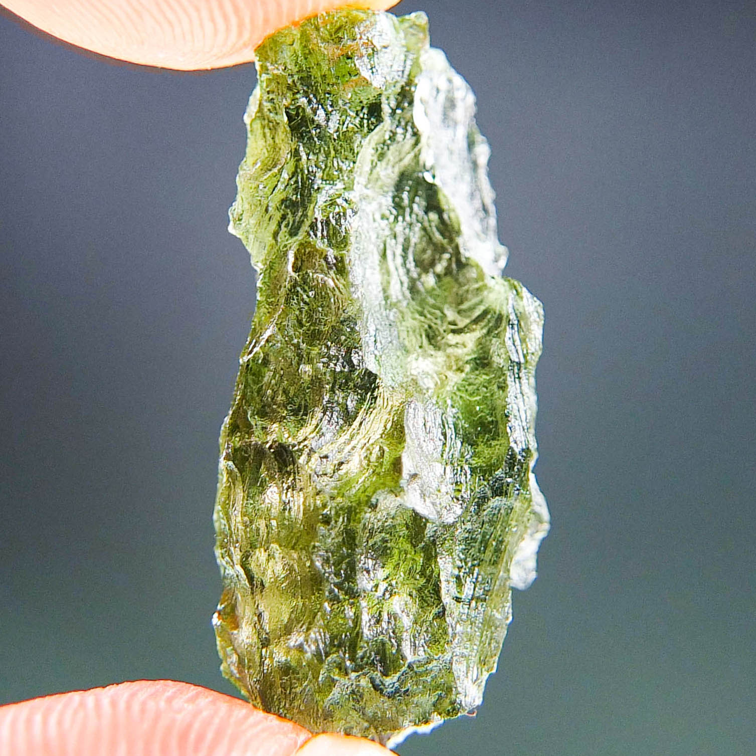 Certified Moldavite with A+/++ quality. From deposit Besednice. Shape: Natural piece.