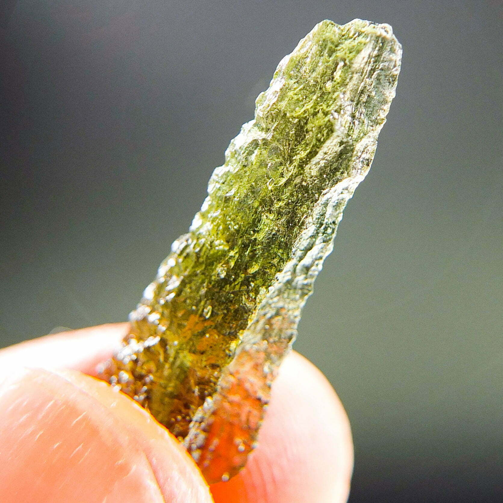 Certified Moldavite with A quality. From deposit Chlum. Shape: Drop – natural upper fragment.