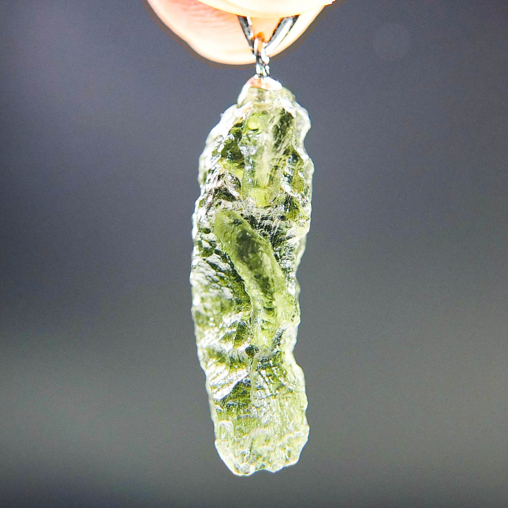 Certified Moldavite with A quality. From deposit Chlum. Shape: Natural piece.