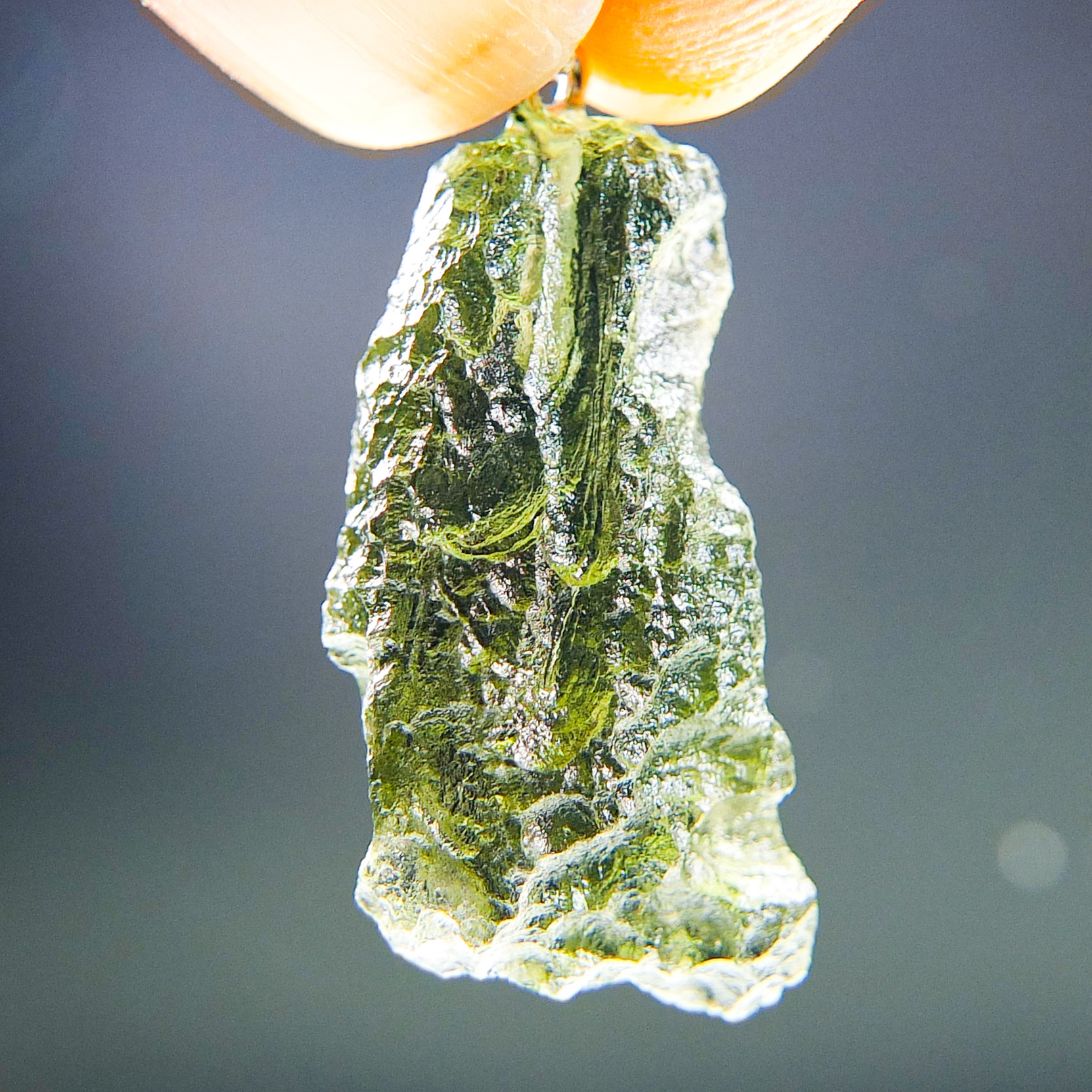 Certified Moldavite with A quality. From deposit Chlum. Shape: Natural piece.