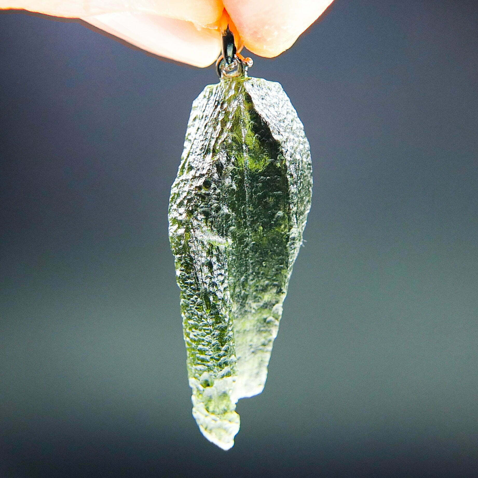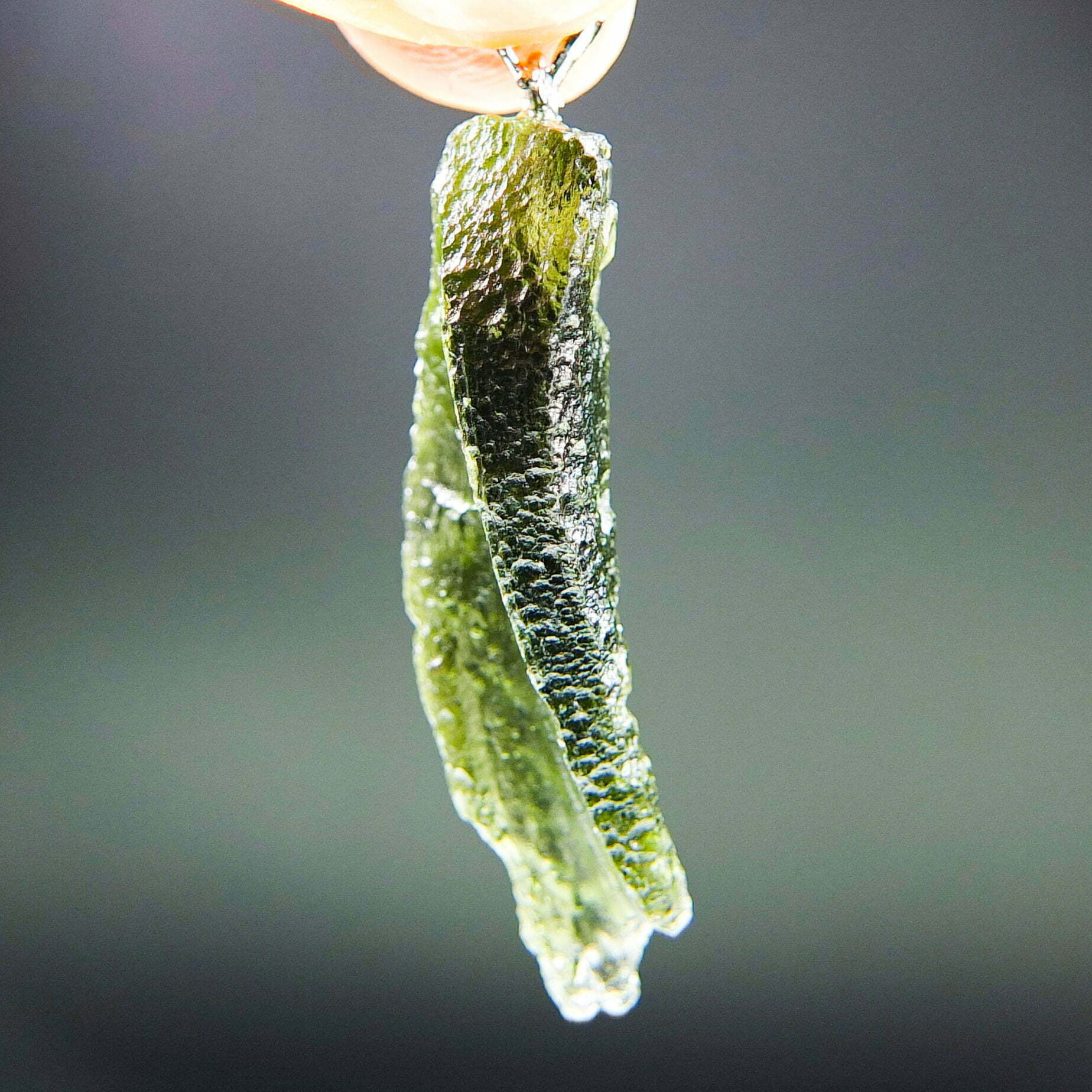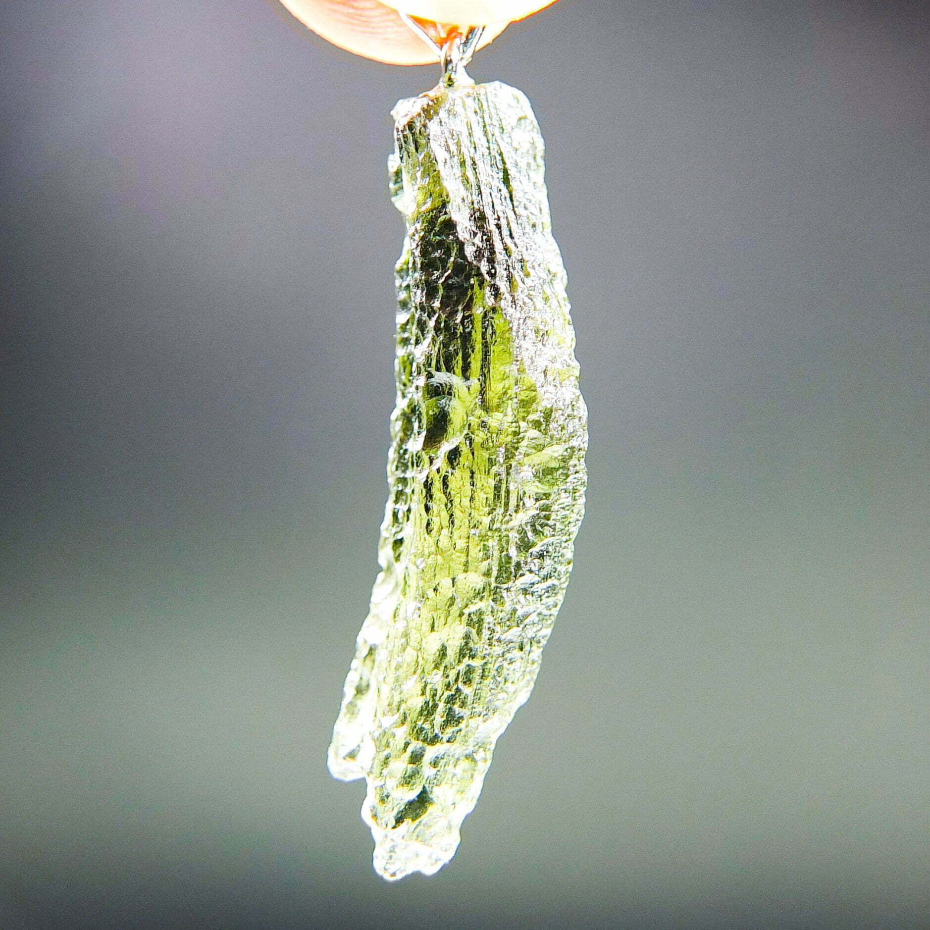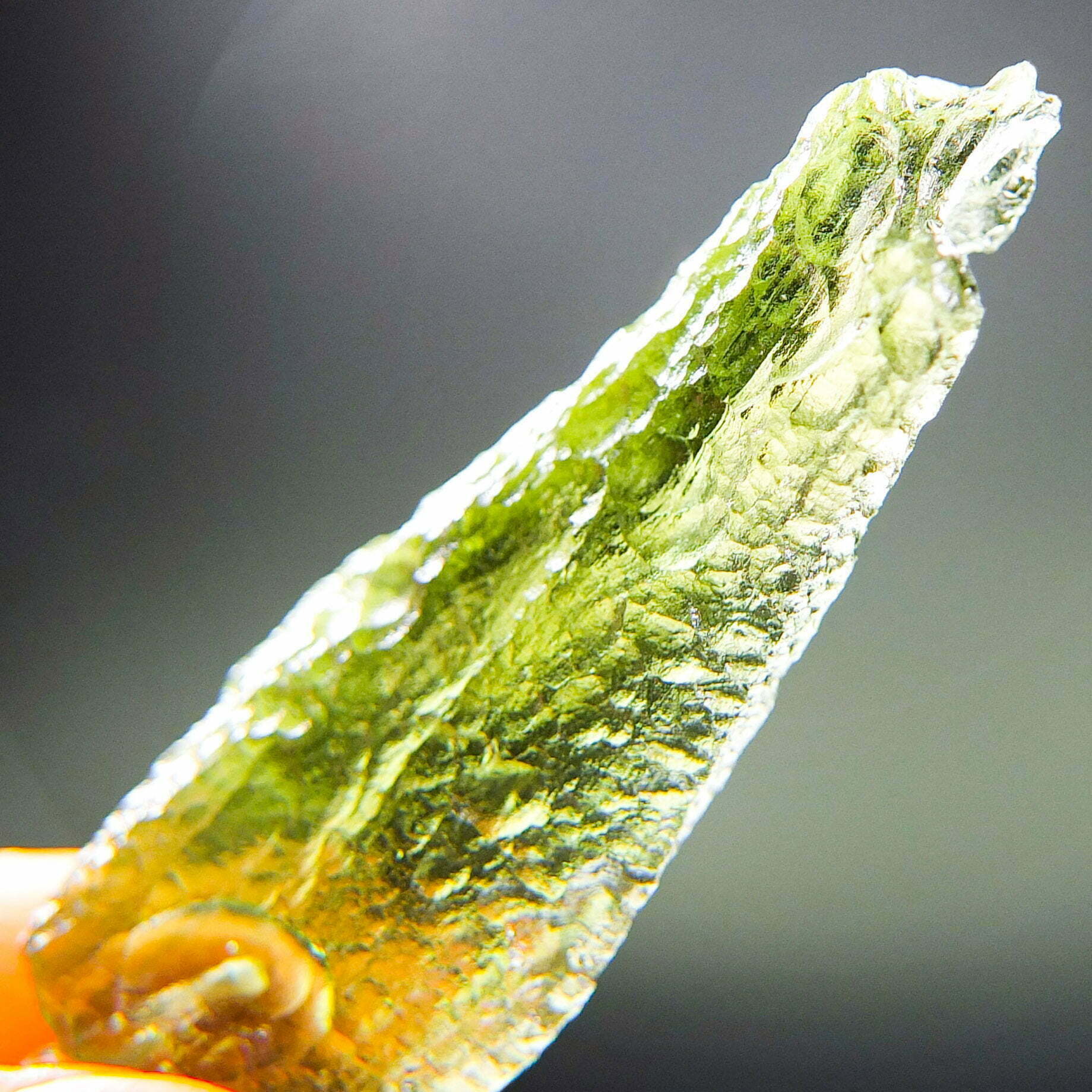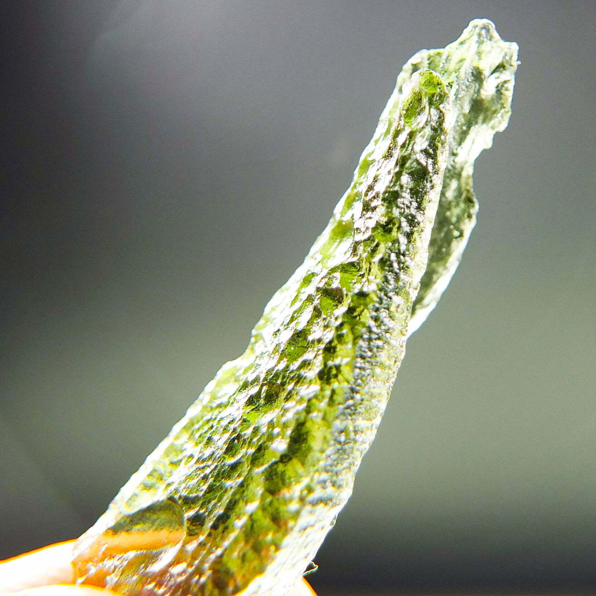 Certified Moldavite with A quality. From deposit Chlum. Shape: Uncommon.