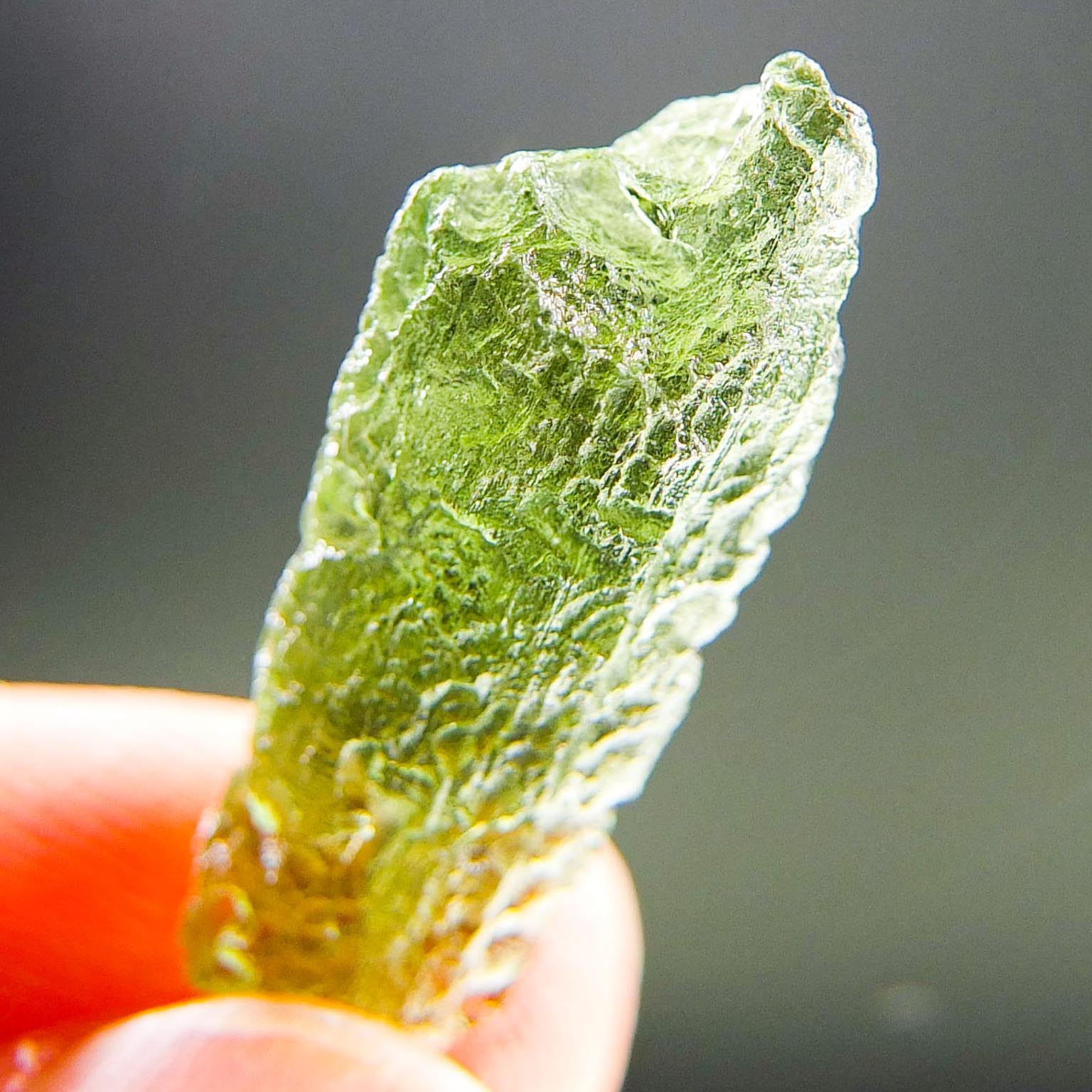 Certified Moldavite with A quality. From deposit Chlum. Shape: Drop – natural middle fragment.