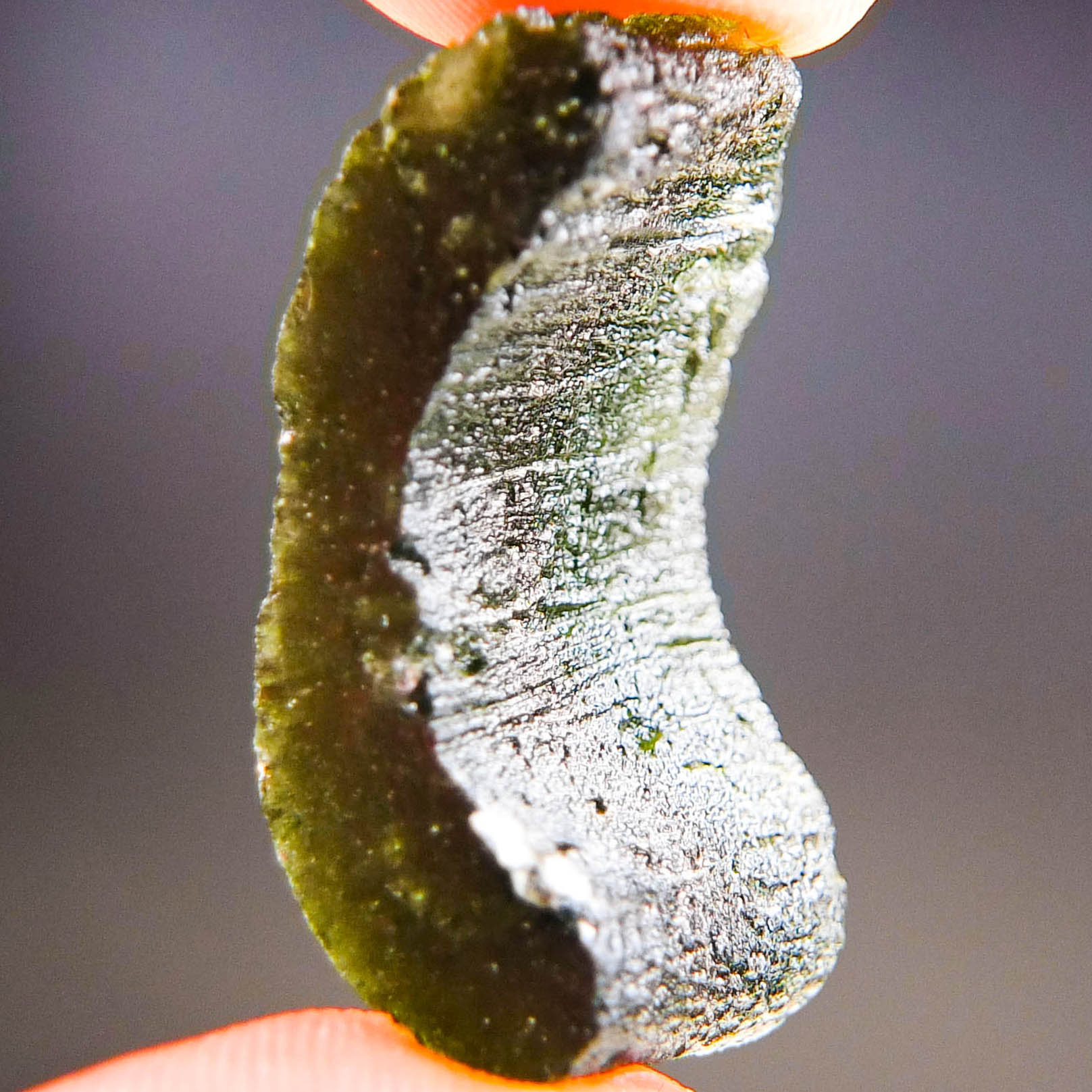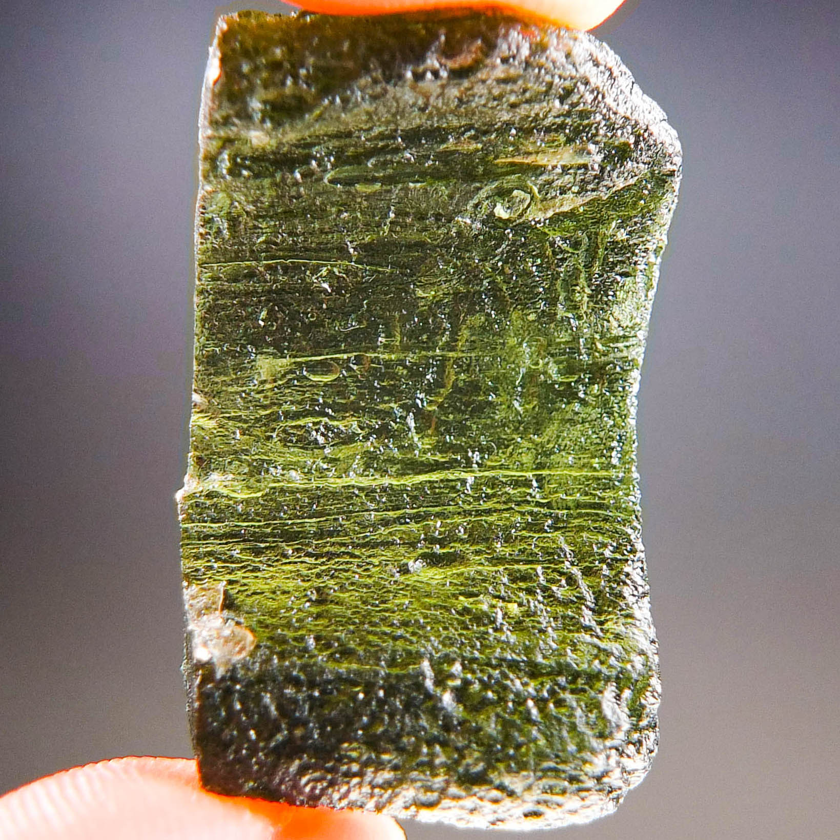 Certified Moldavite with A quality. From deposit Dobrkovska Lhotka – Zatacka. Shape: Natural piece.