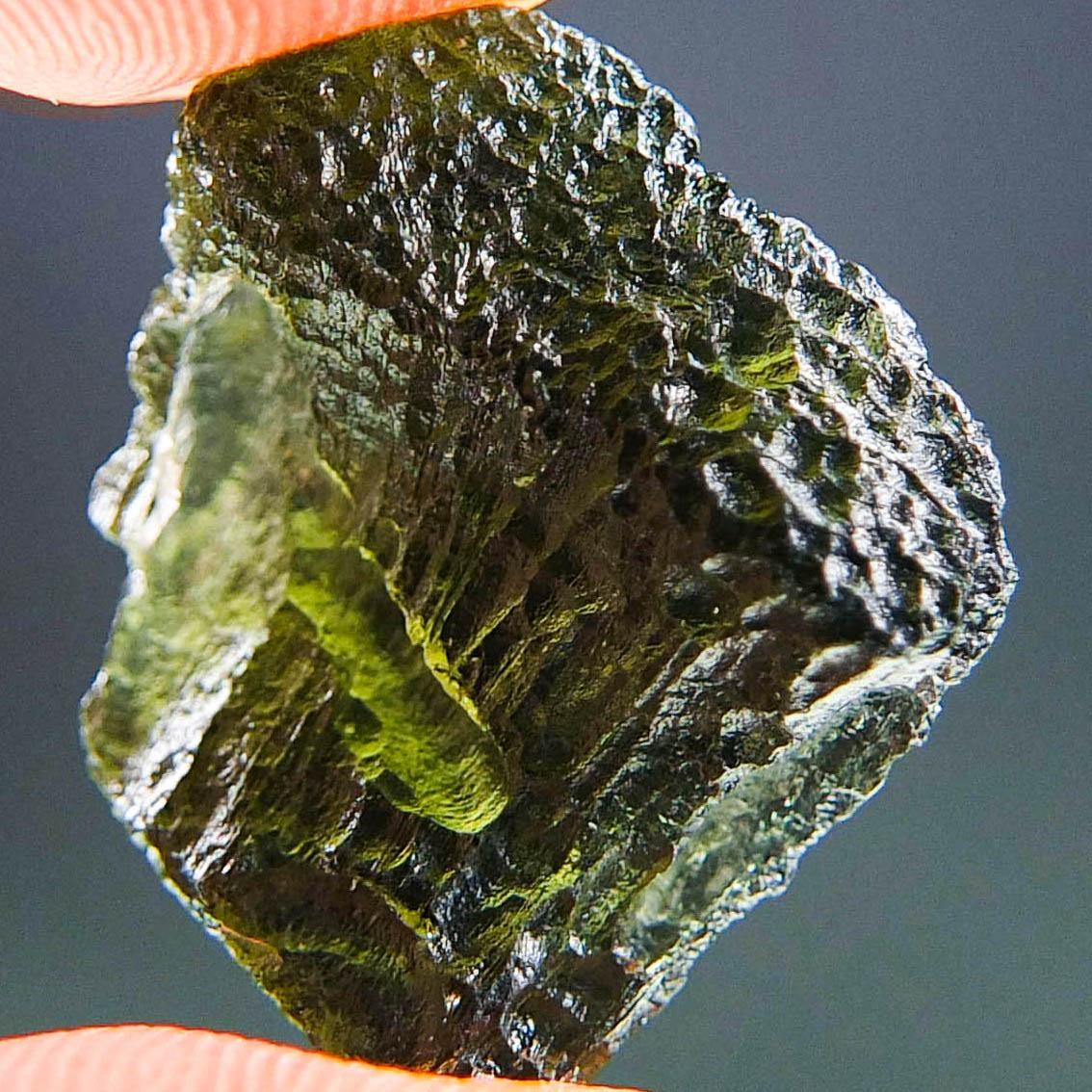 Certified Moldavite with A quality. From deposit Chlum. Shape: Natural piece.