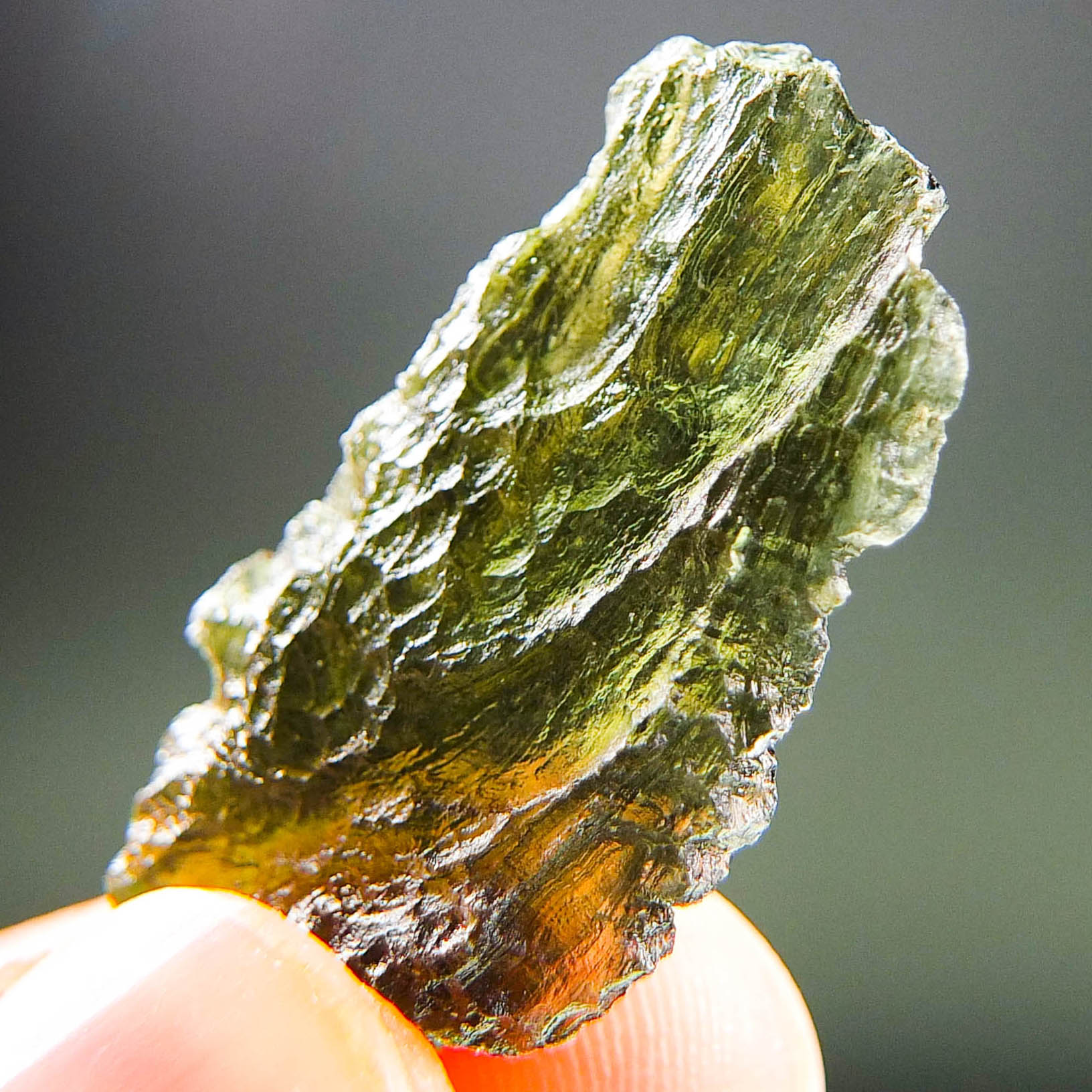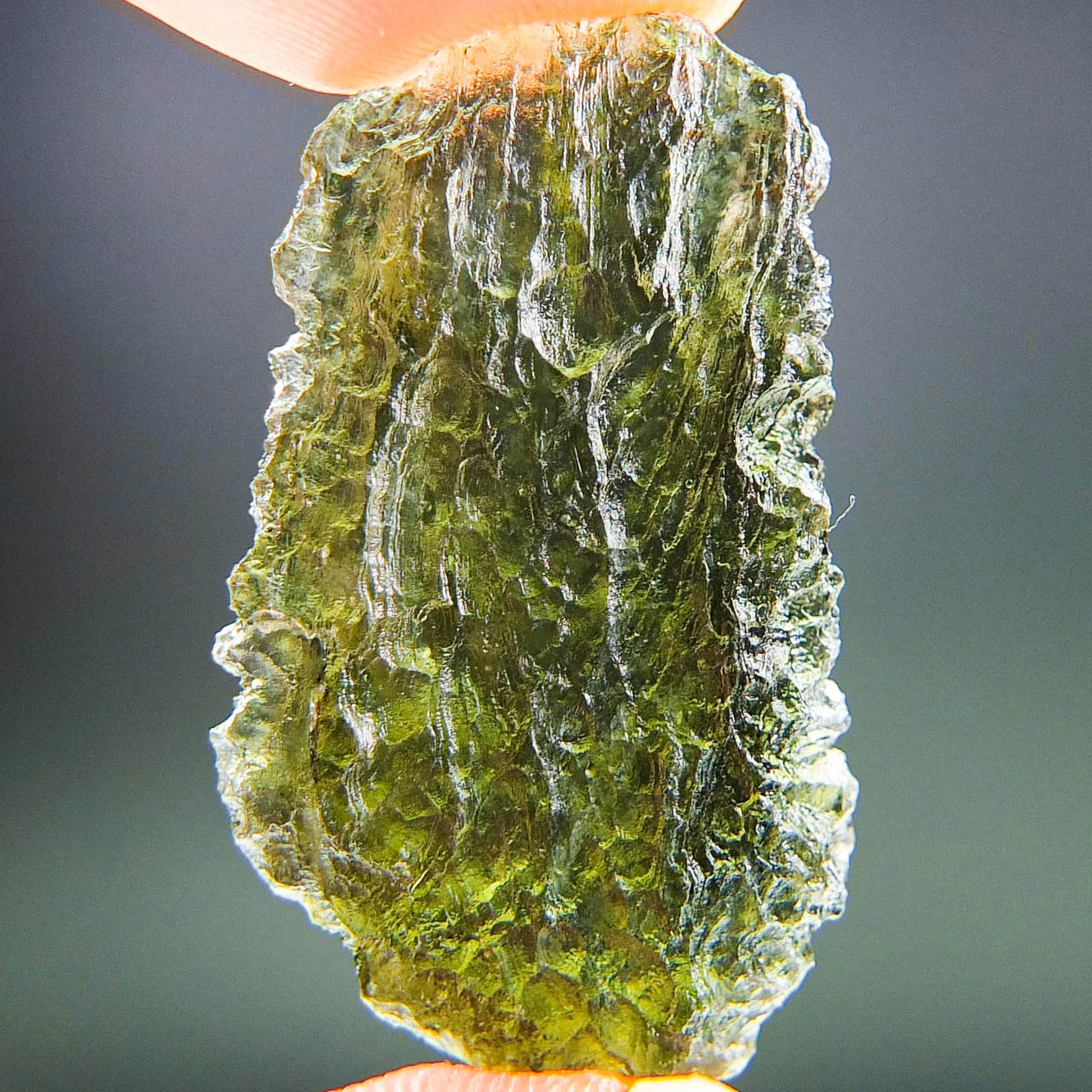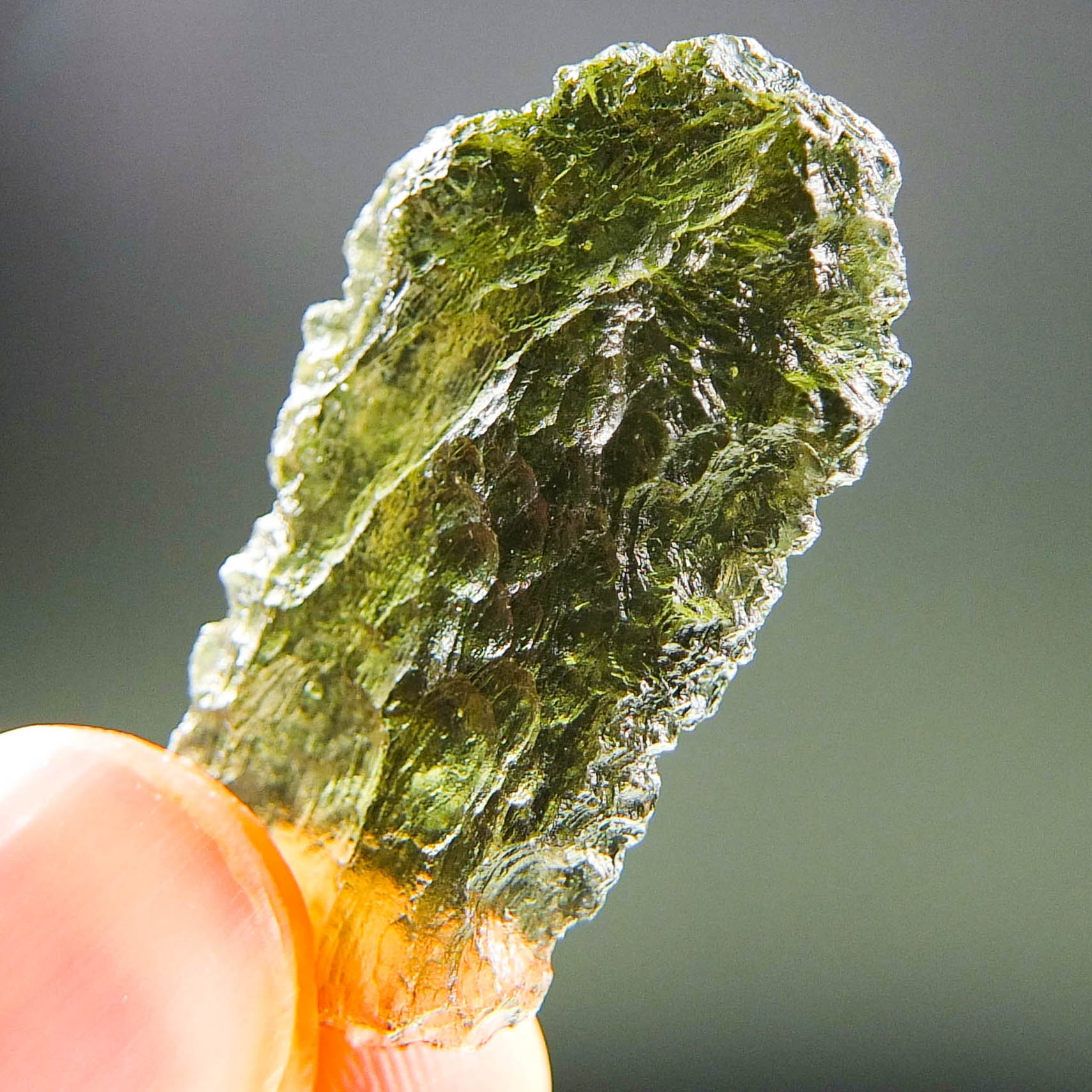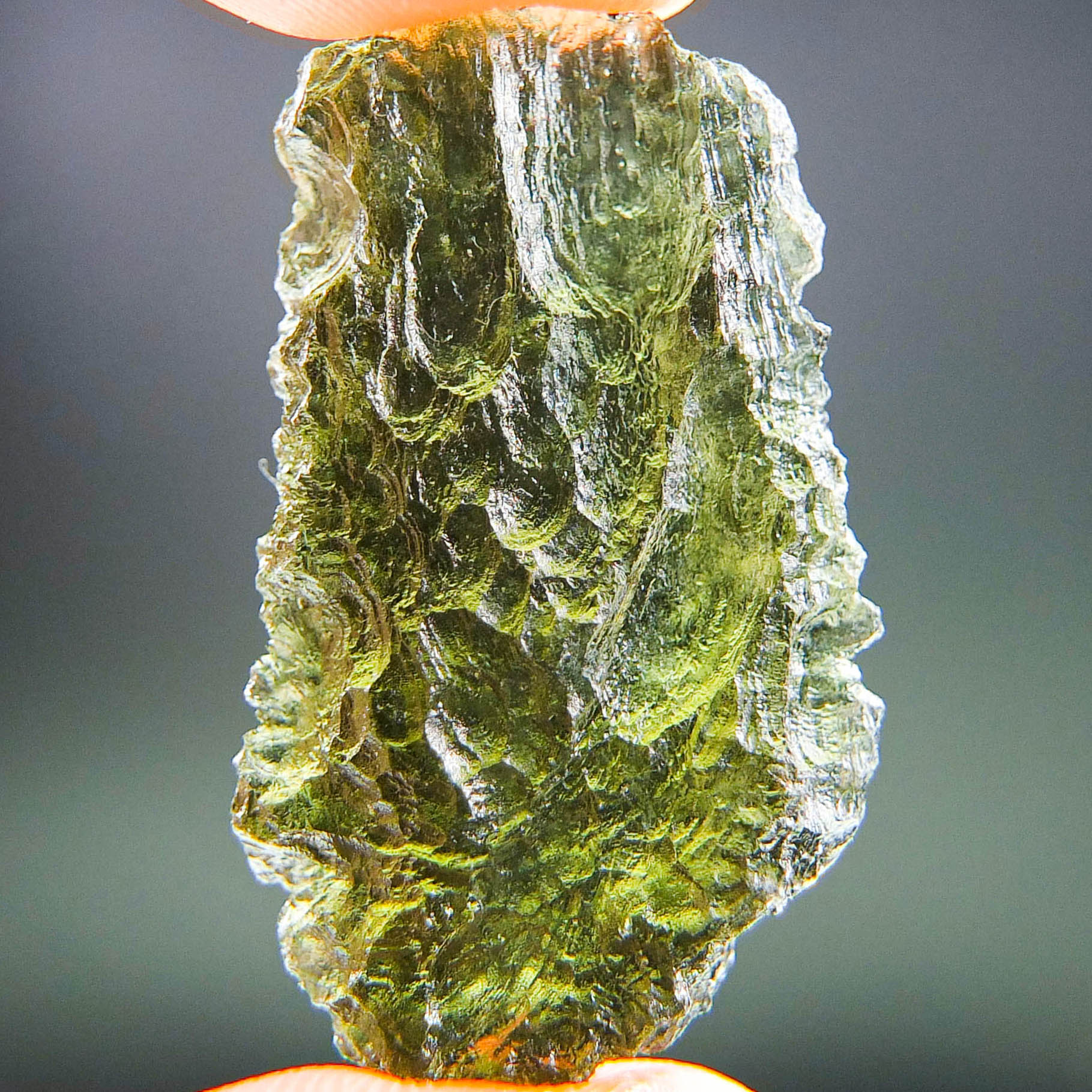 Certified Moldavite with A quality. From deposit Chlum. Shape: Natural piece.
