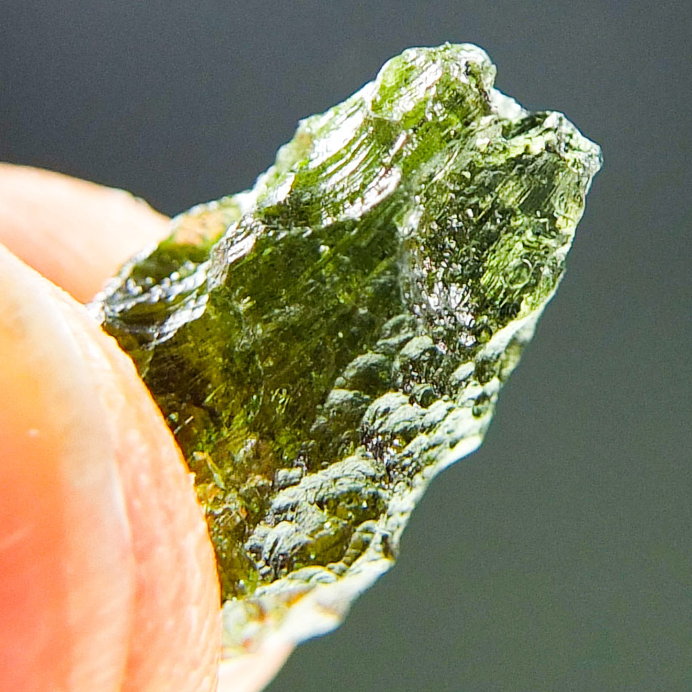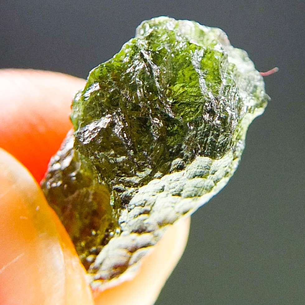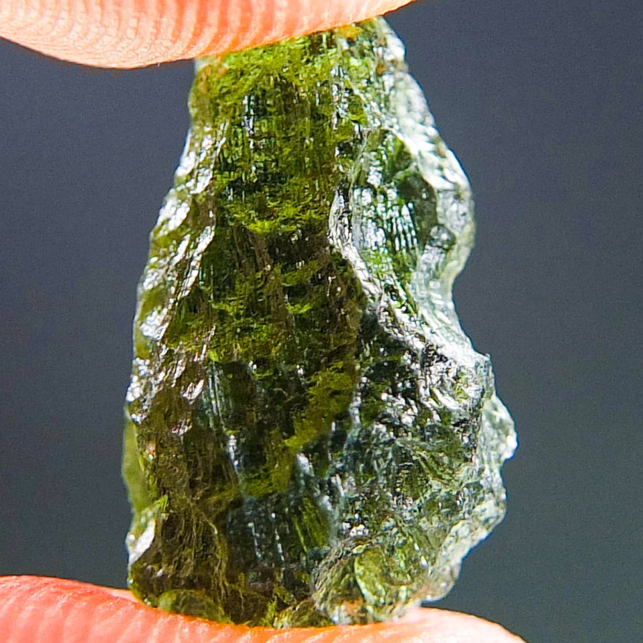 Certified Moldavite with A quality. From deposit Chlum. Shape: Drop – natural middle fragment.