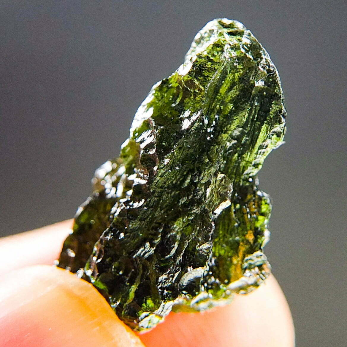 Certified Moldavite with A+ quality. From deposit Chlum. Shape: Drop – natural upper fragment.