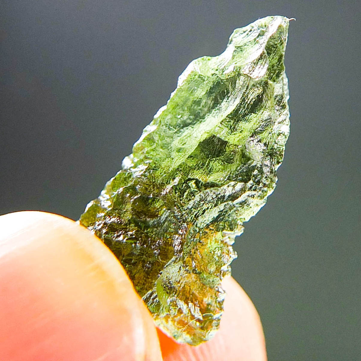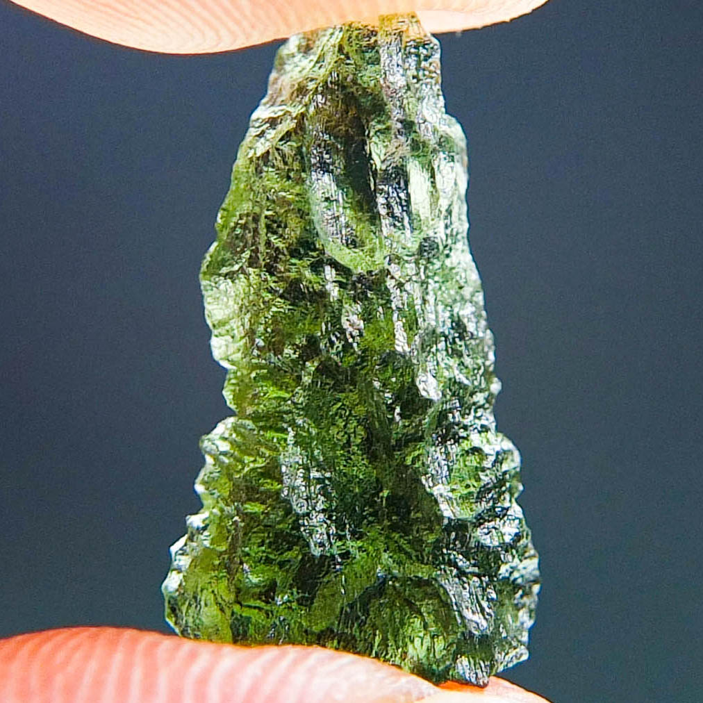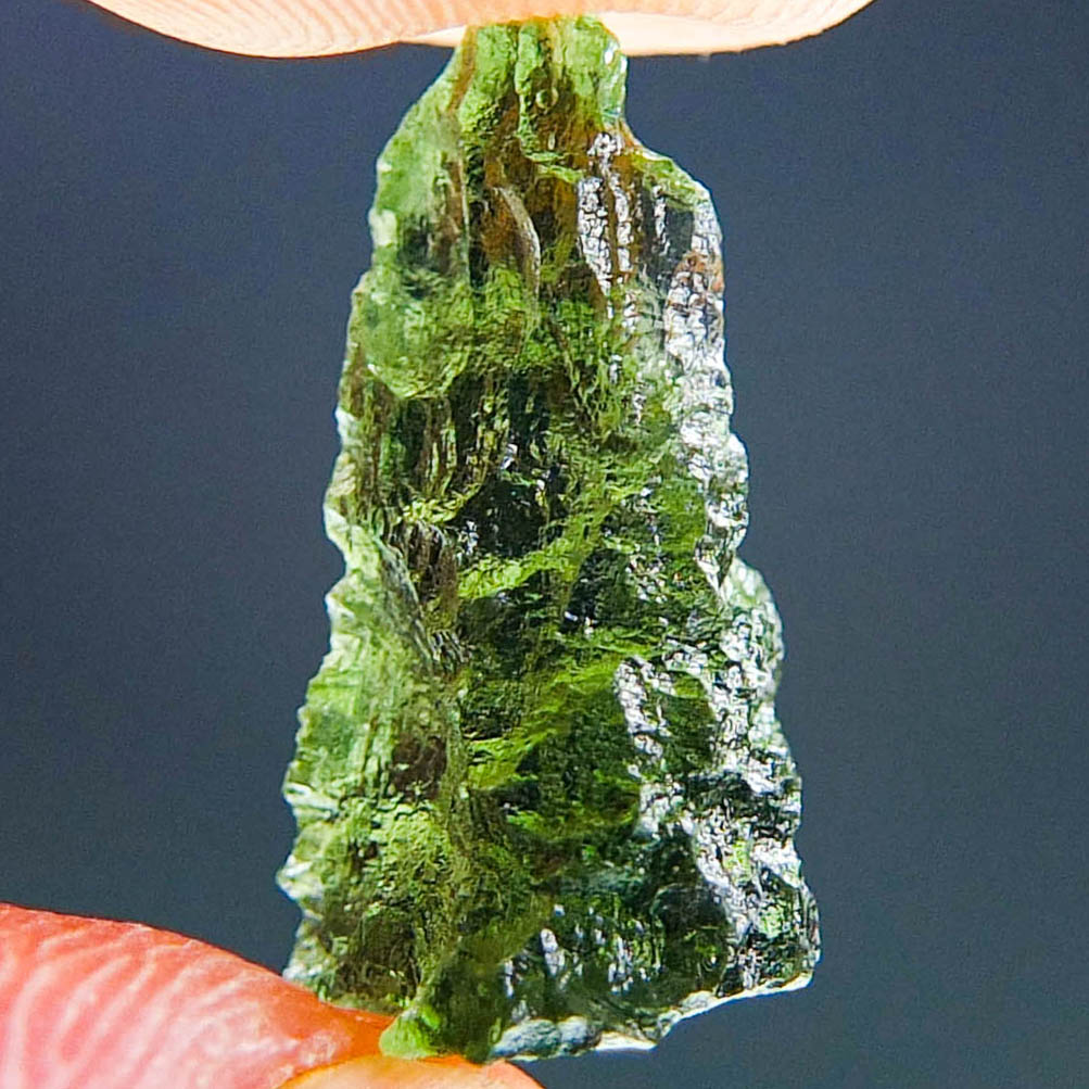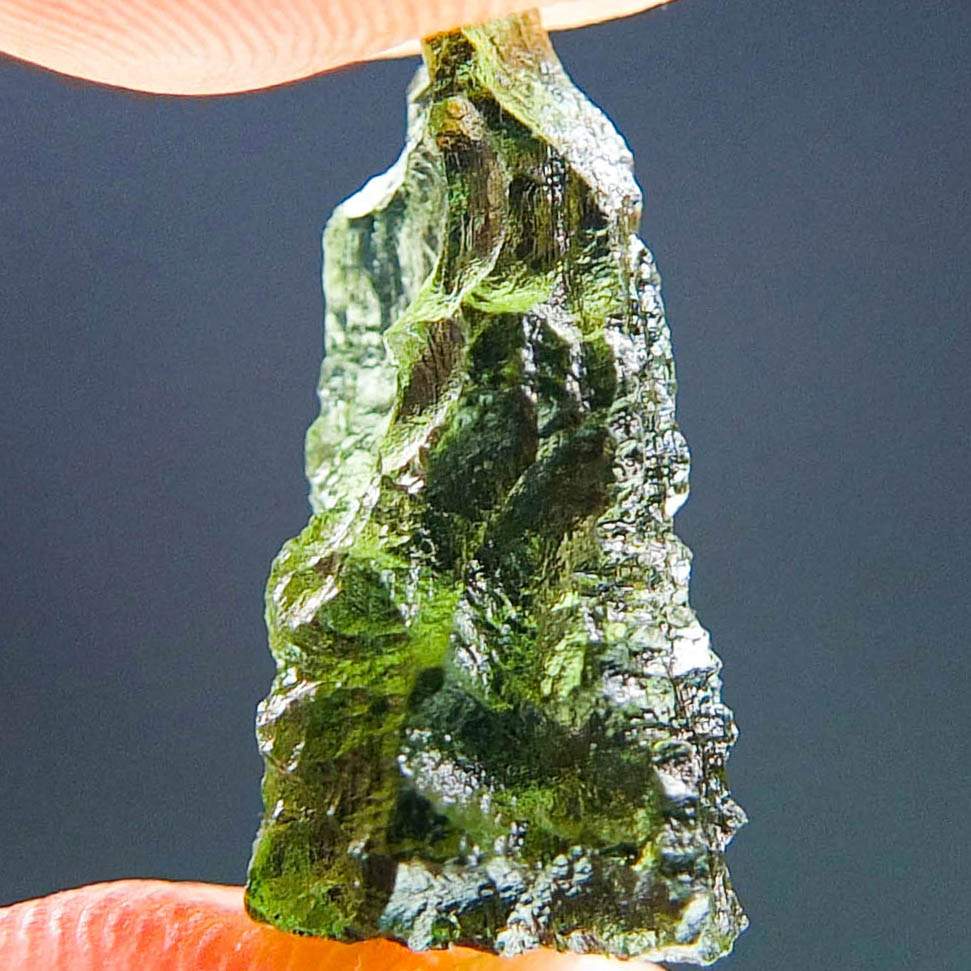 Certified Moldavite with A+/++ quality. From deposit Chlum. Shape: Drop – natural upper fragment.