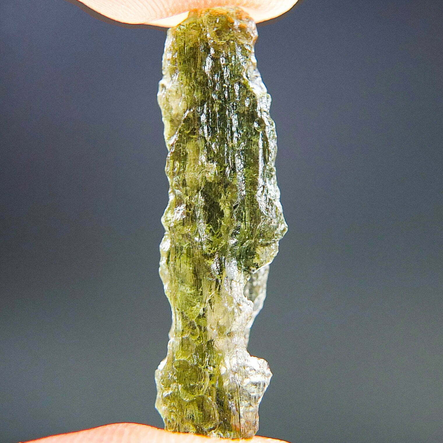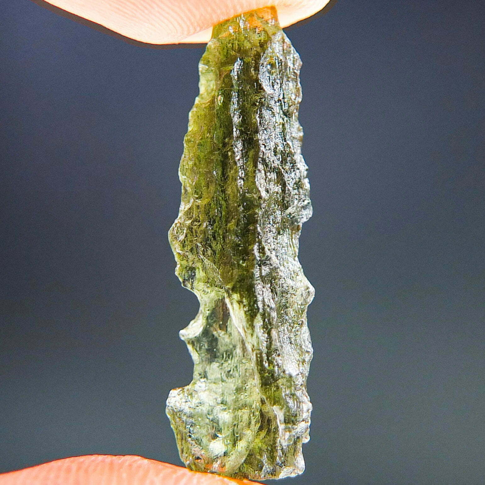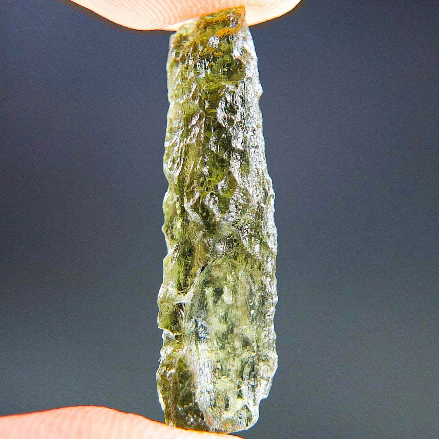 Certified Moldavite with A+ quality. From deposit Chlum. Shape: Drop – natural upper fragment.