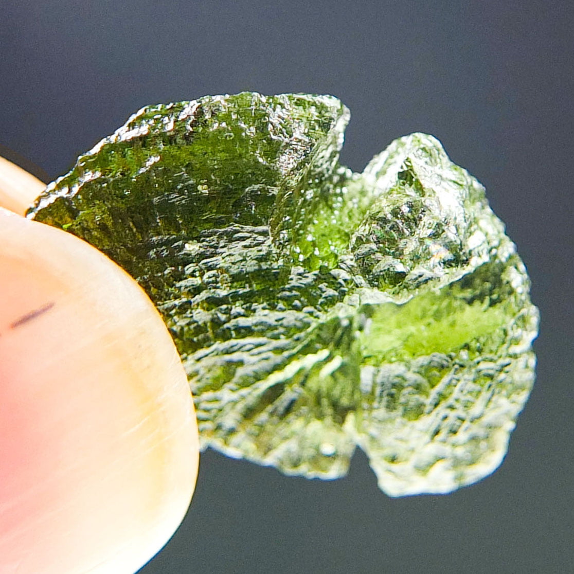 Certified Moldavite with A quality. From deposit Chlum. Shape: Natural piece.