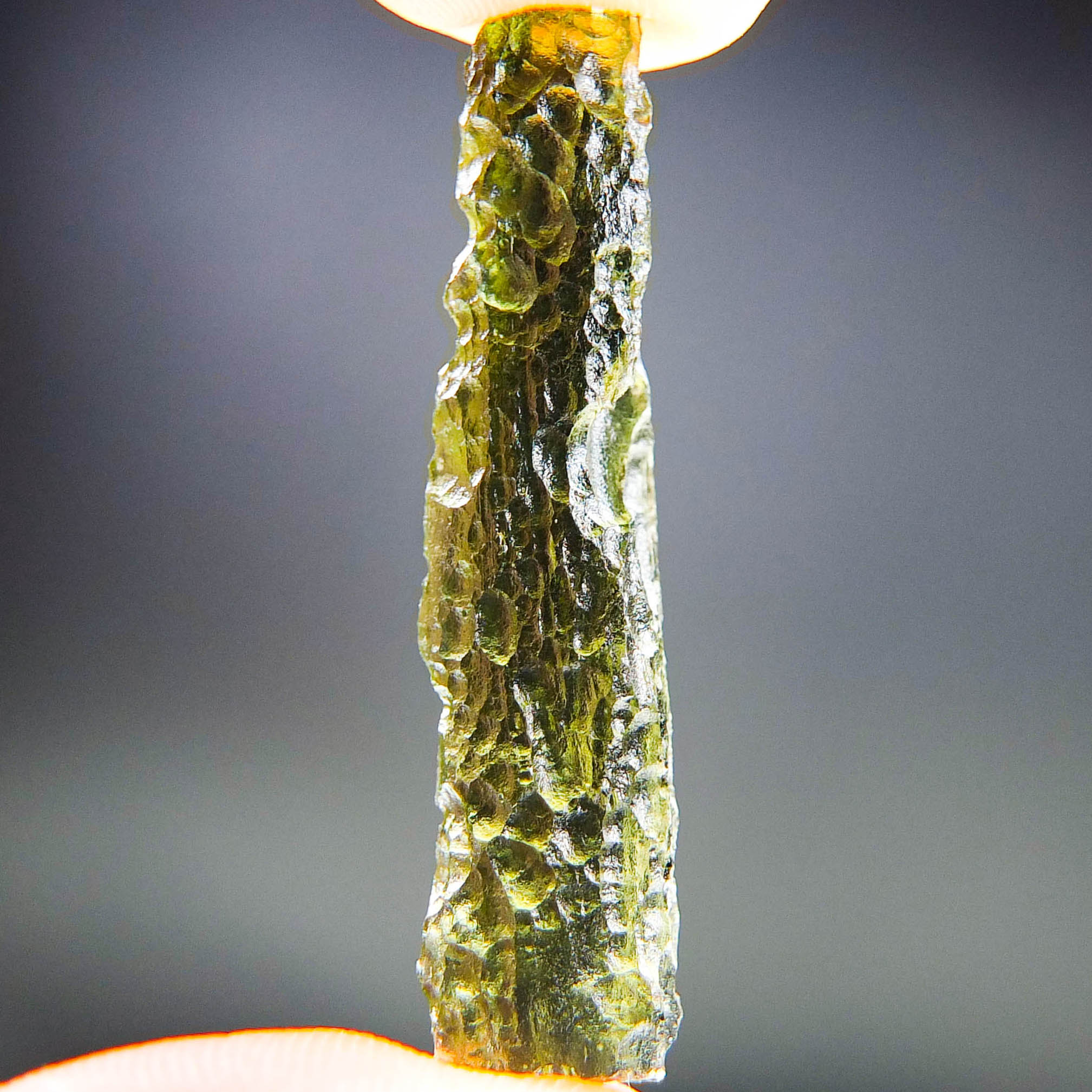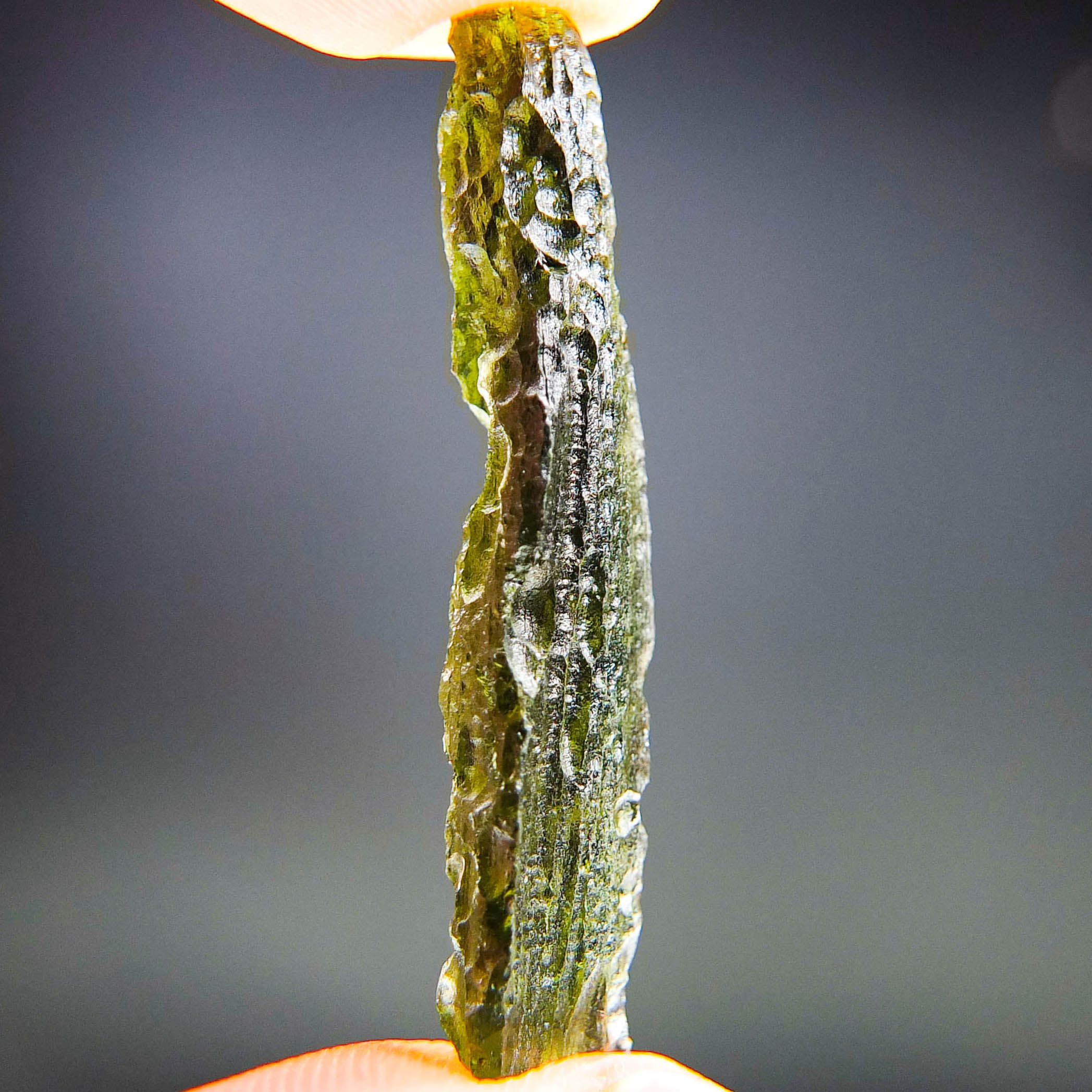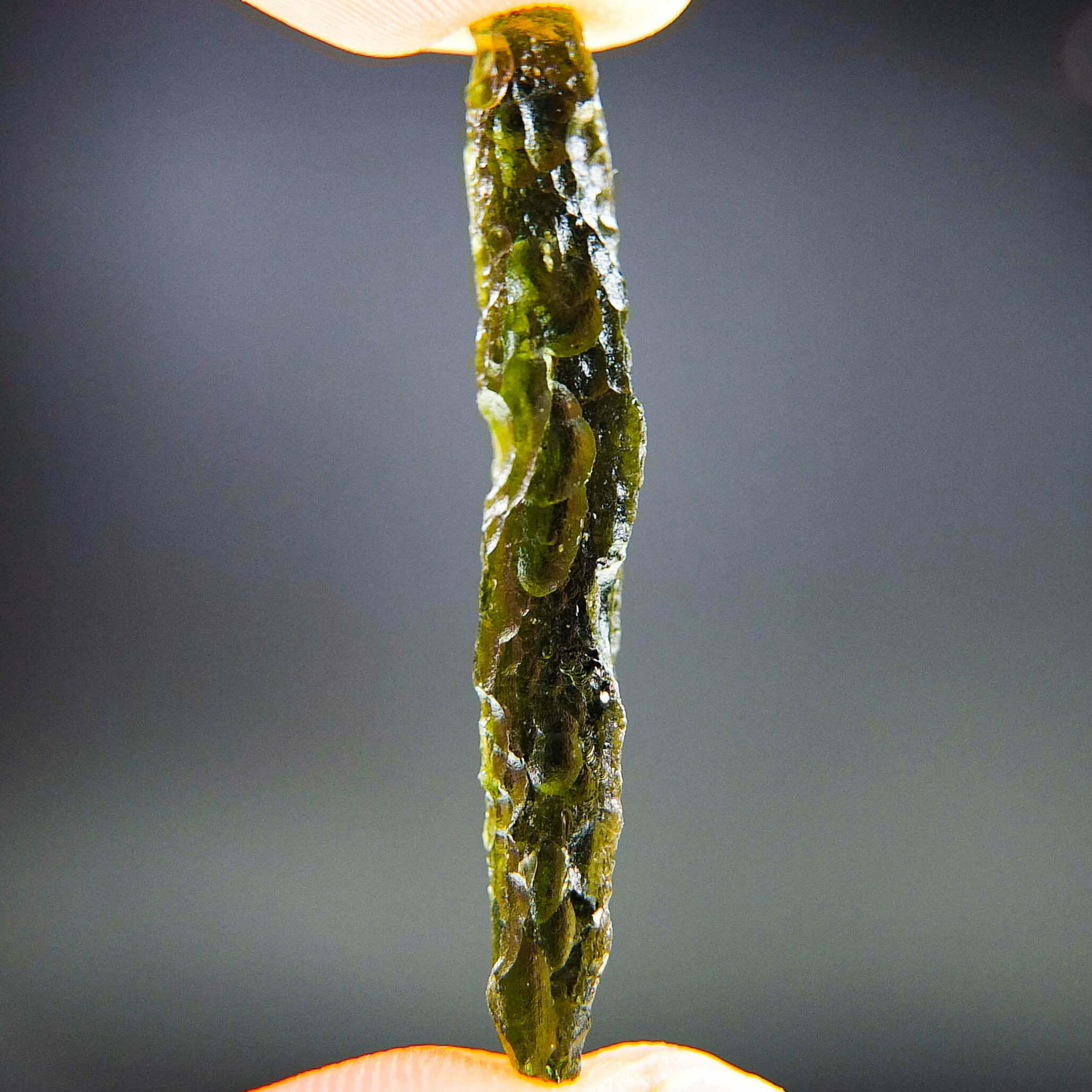 Certified Moldavite with A quality. From deposit Chlum. Shape: Stick.