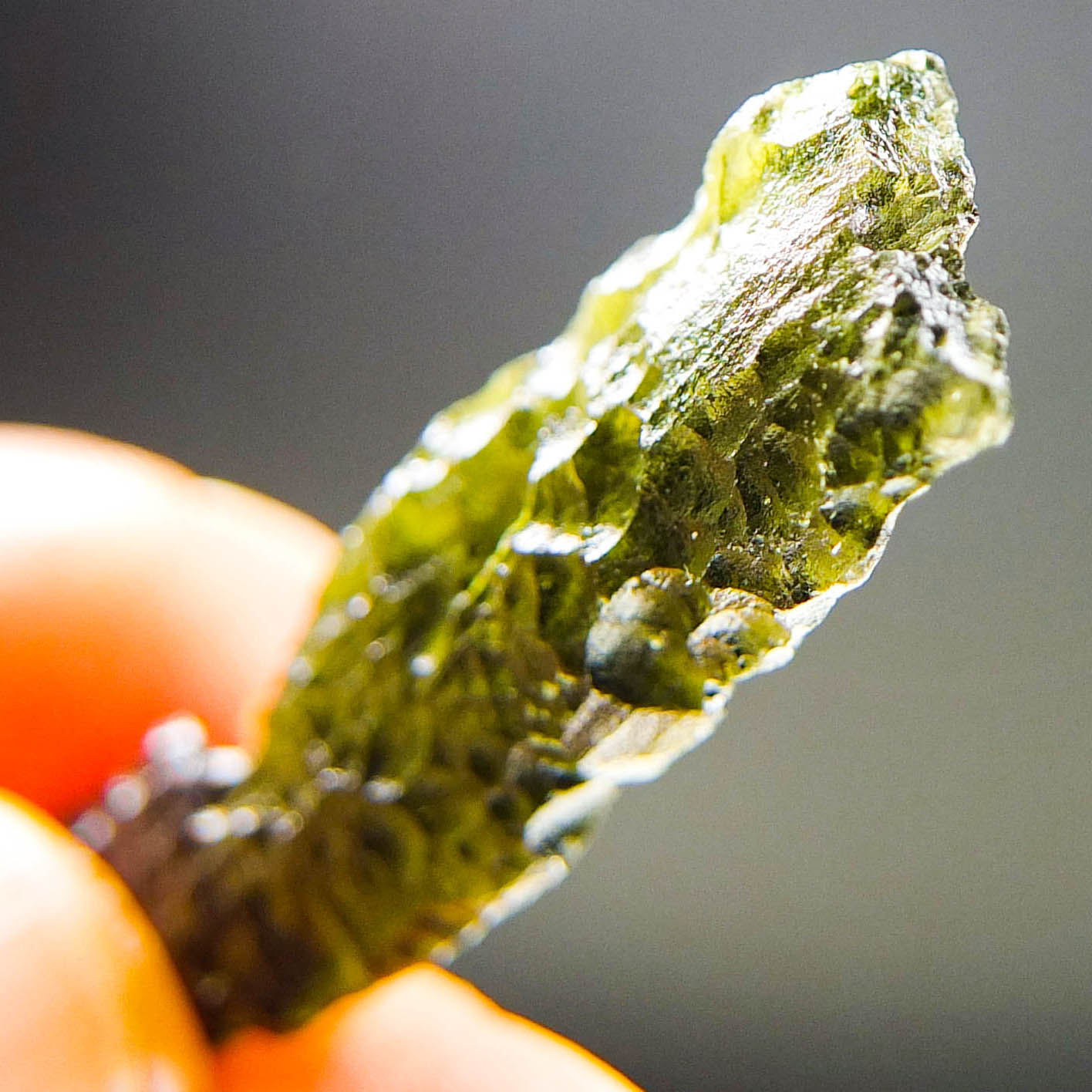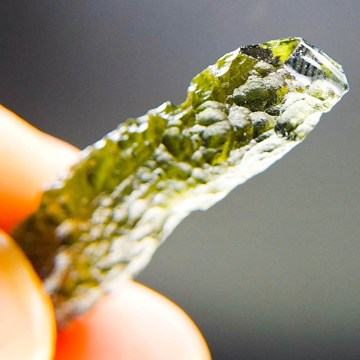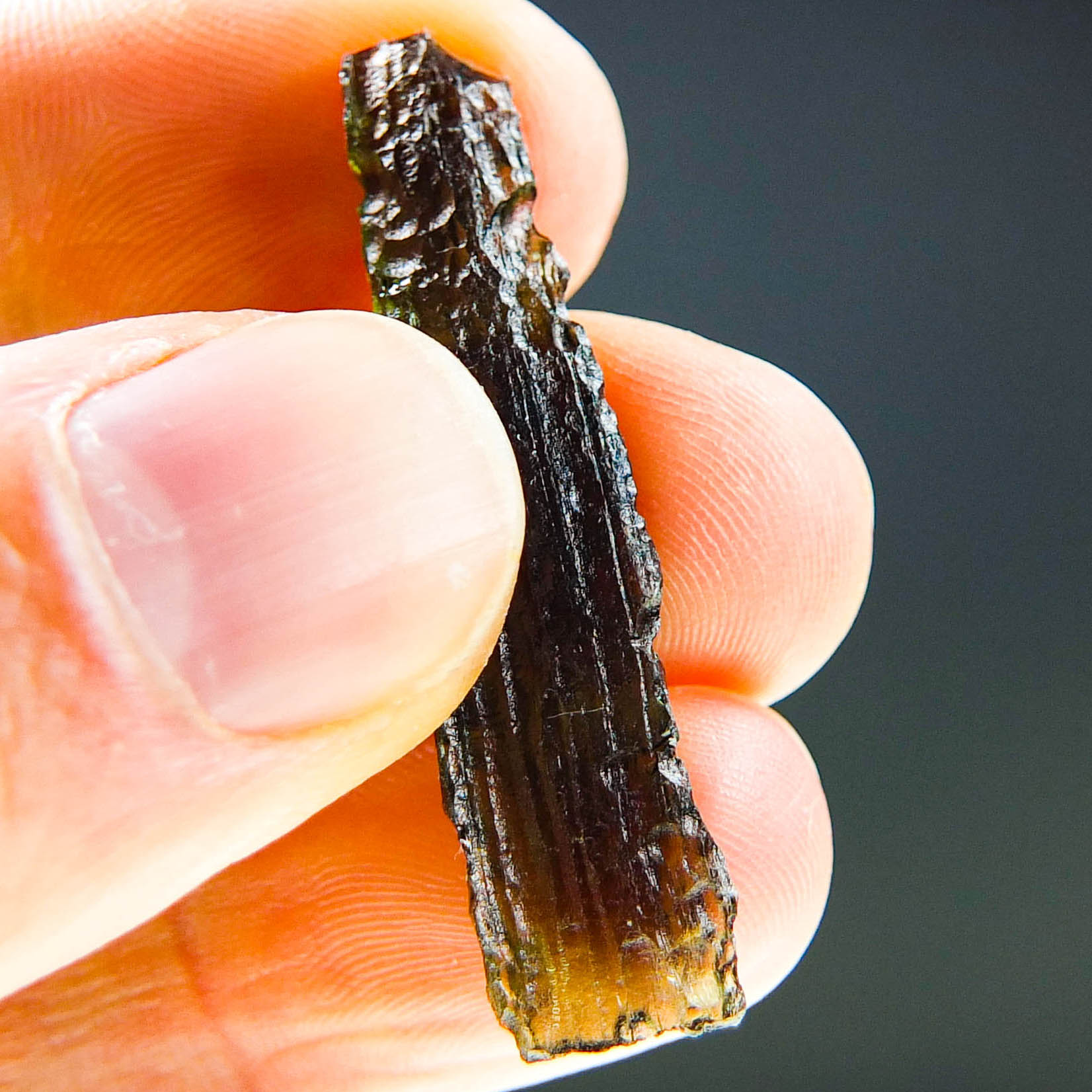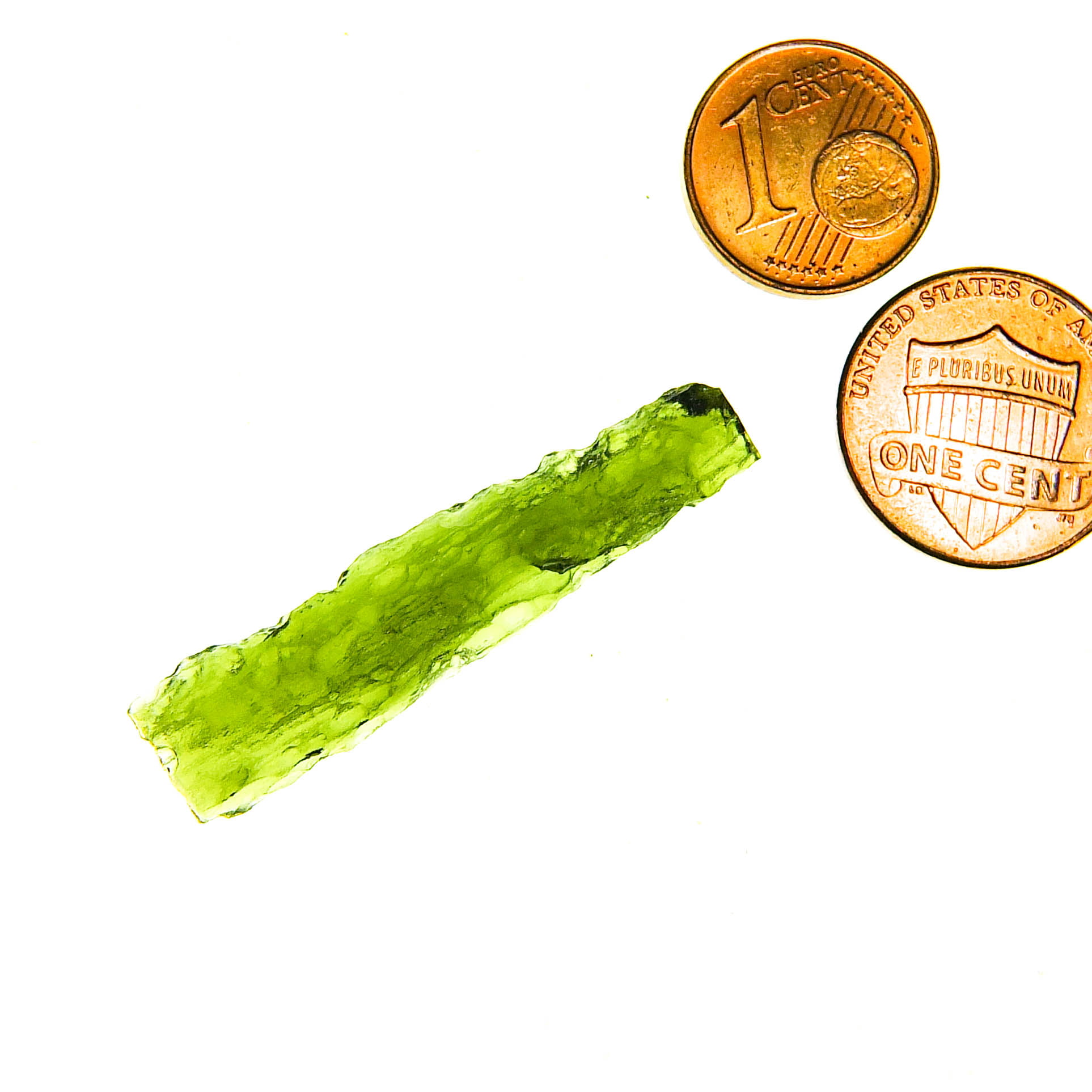 Certified Moldavite with A quality. From deposit Chlum. Shape: Stick.