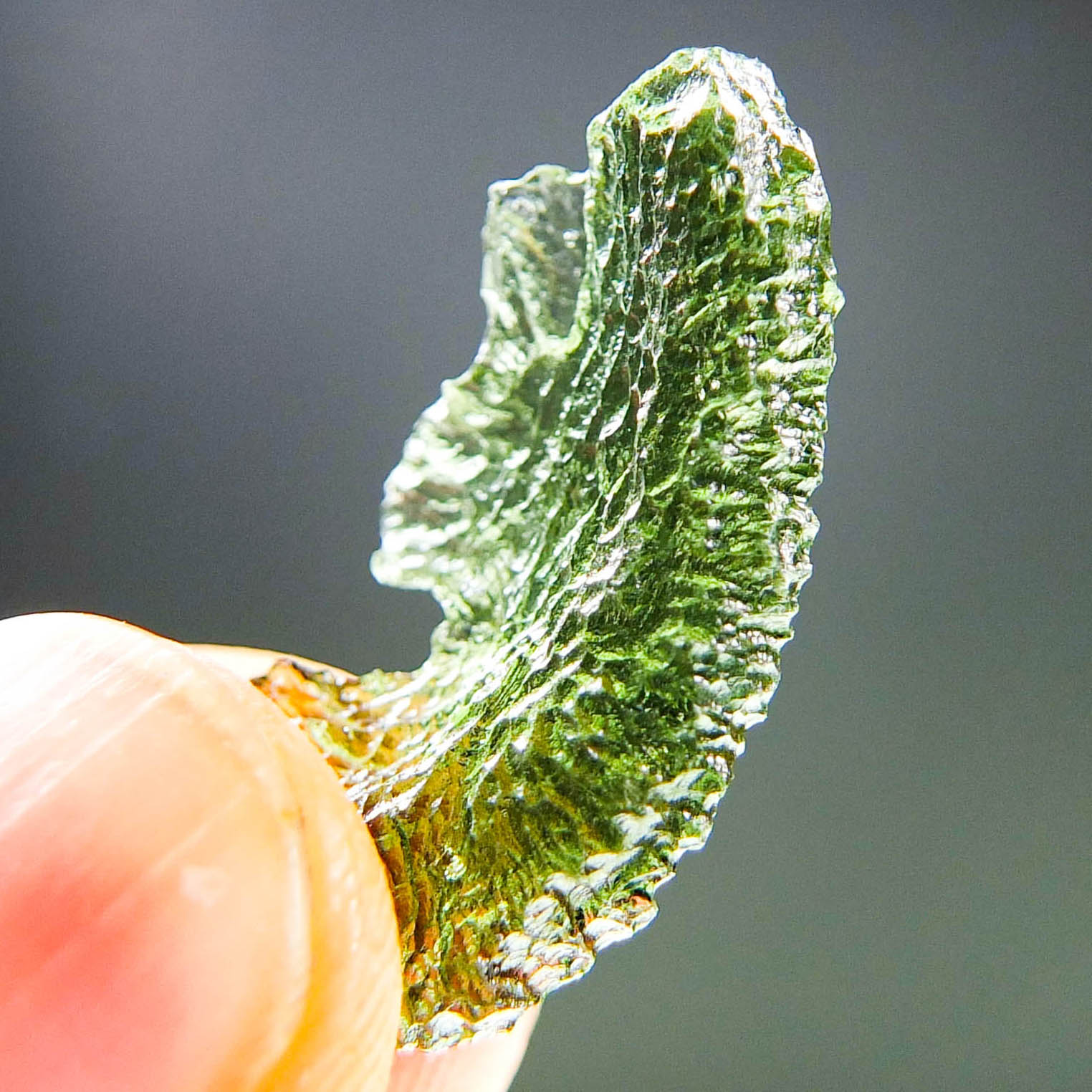 Certified Moldavite with A+ quality. From deposit Chlum. Shape: Natural piece.