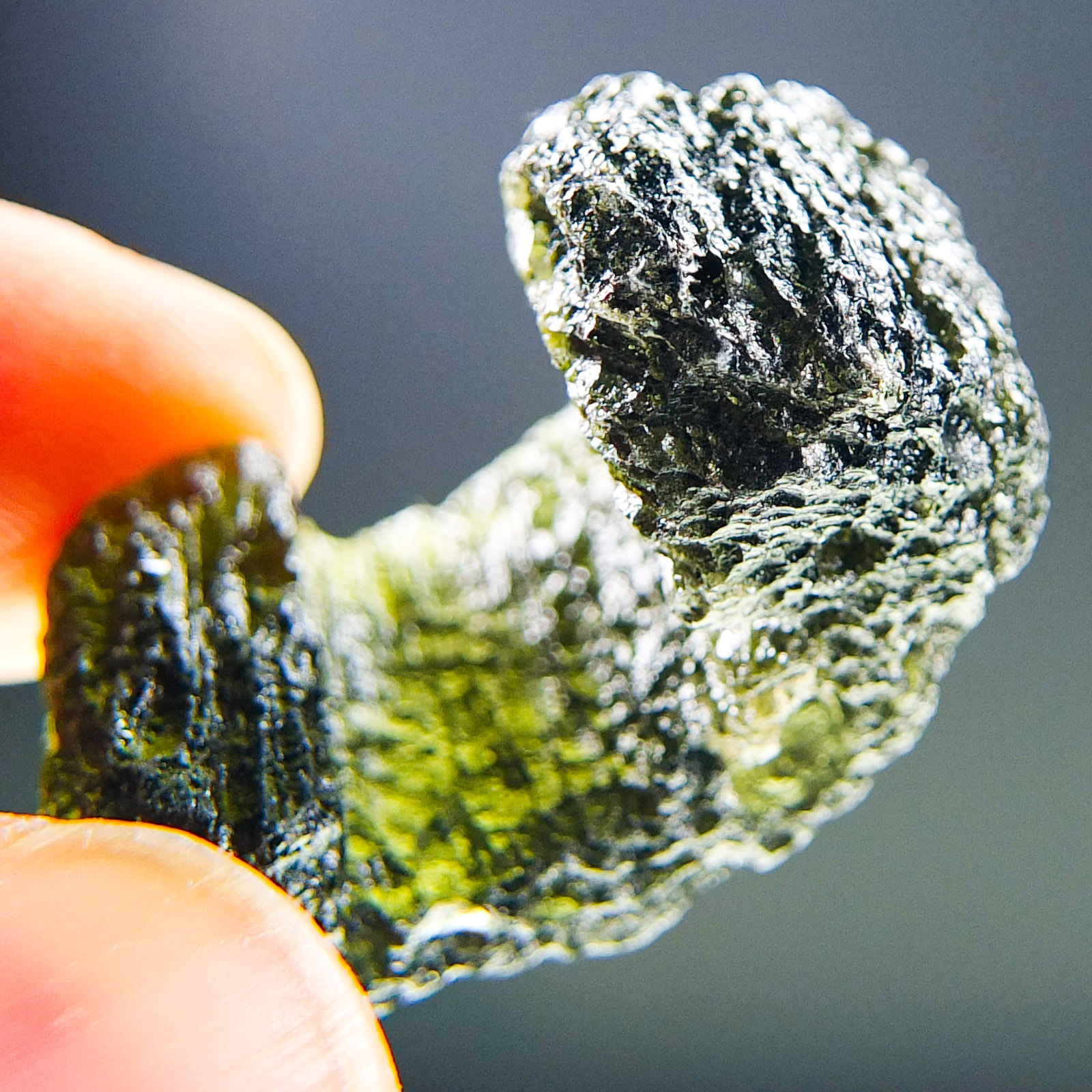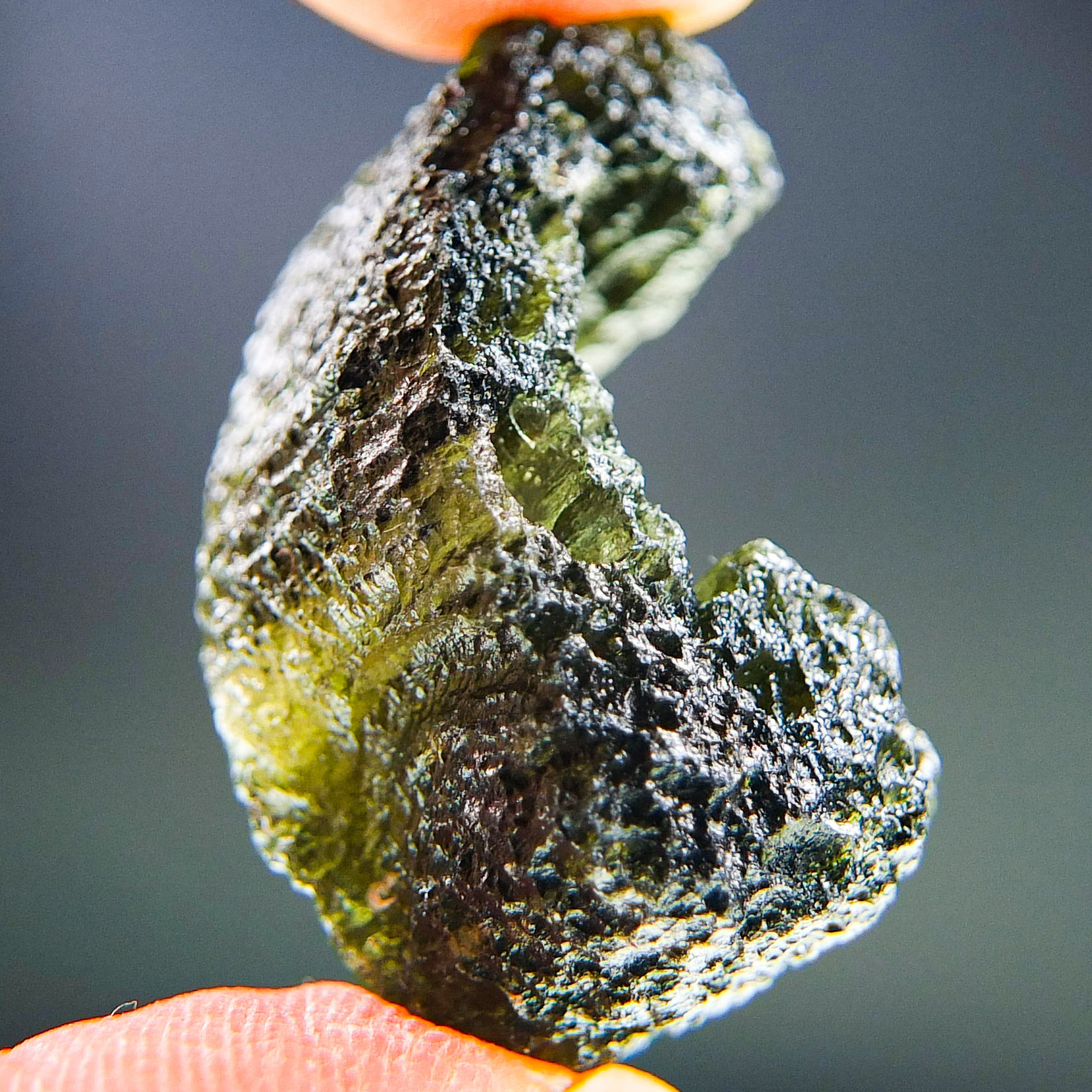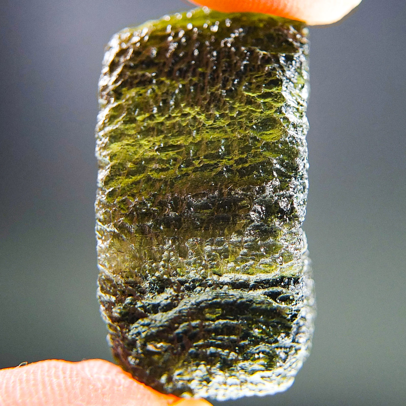 Certified Moldavite with A quality. From deposit Chlum. Shape: Uncommon.
