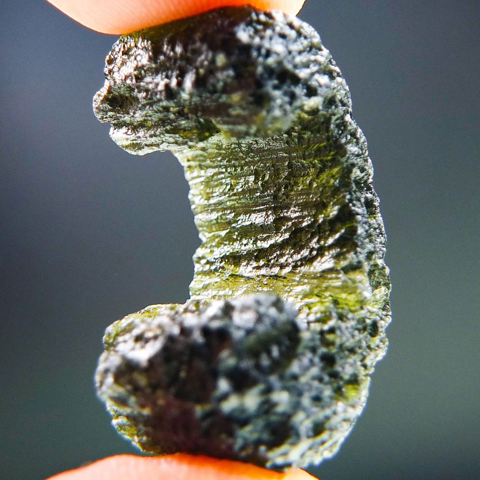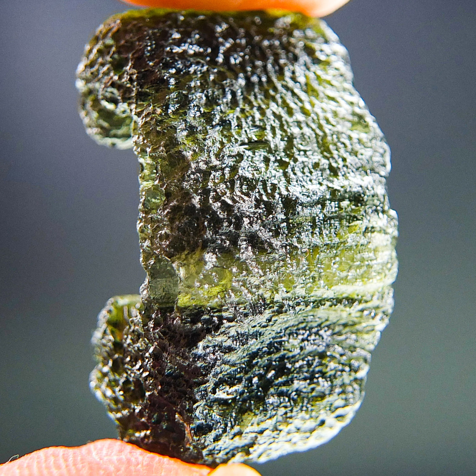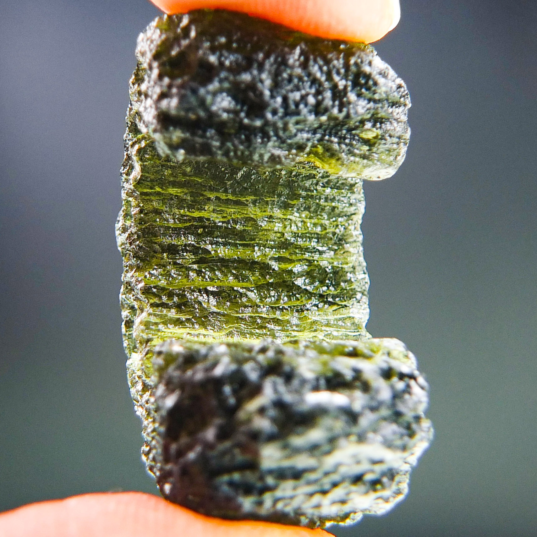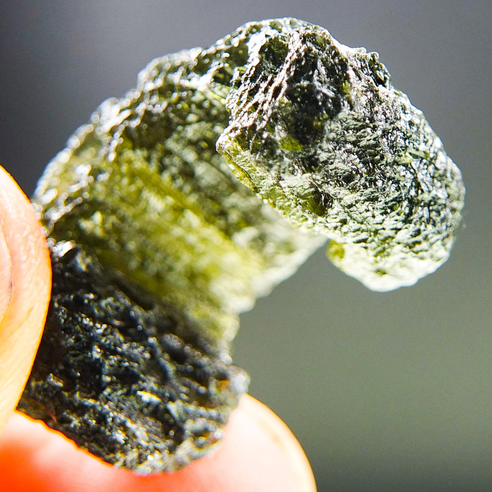 Certified Moldavite with A quality. From deposit Chlum. Shape: Uncommon.