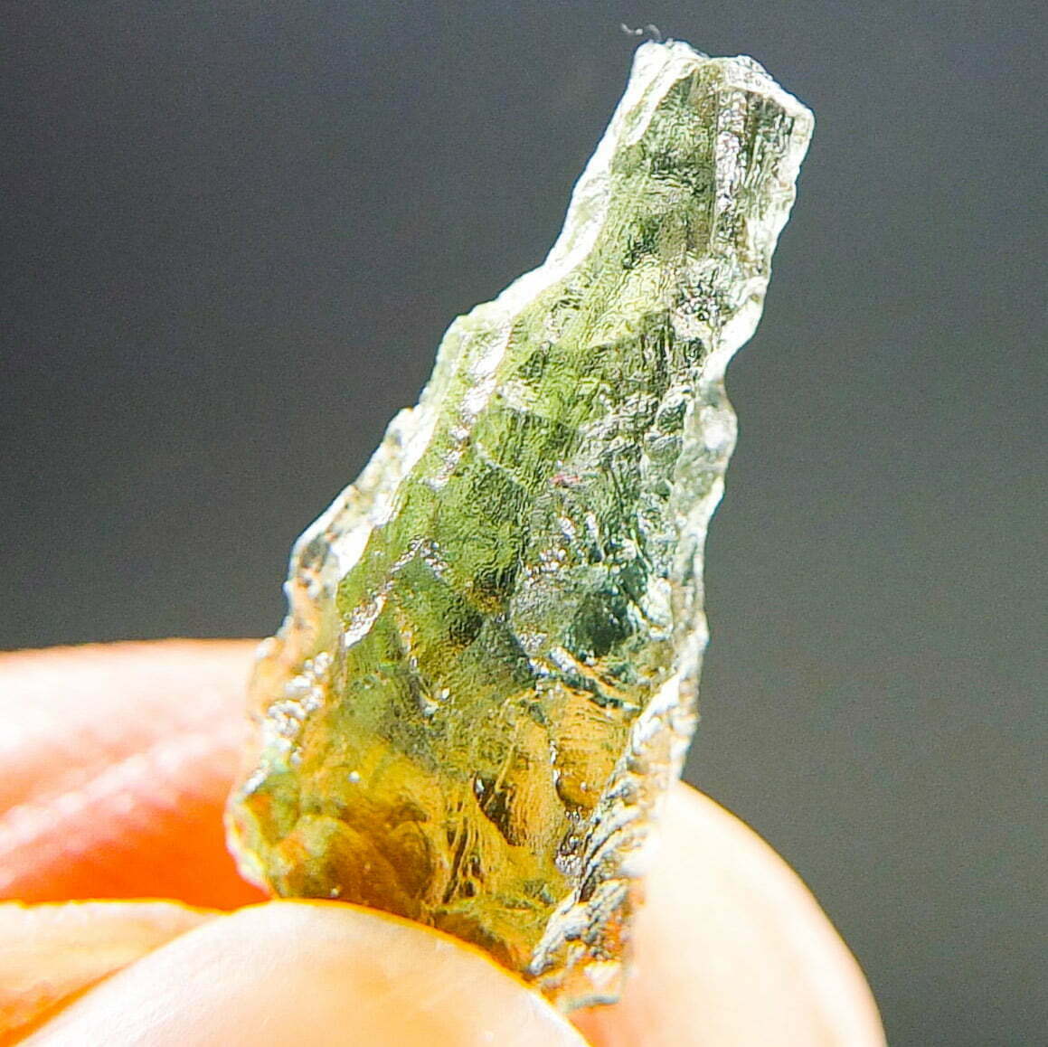 Certified Moldavite with A+ quality. From deposit Chlum. Shape: Drop.