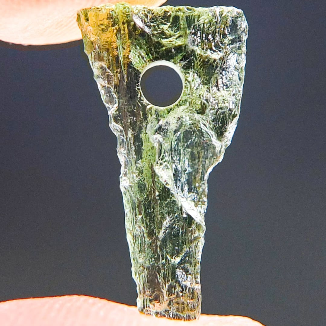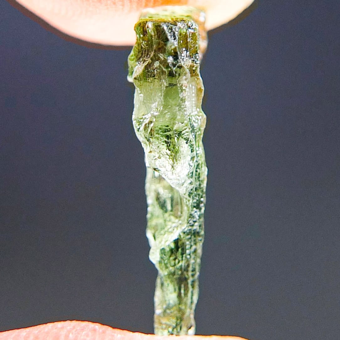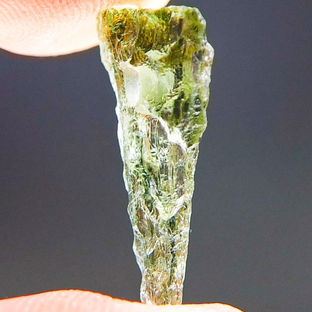Certified Moldavite with A quality. From deposit Chlum. Shape: Drop – natural upper fragment.